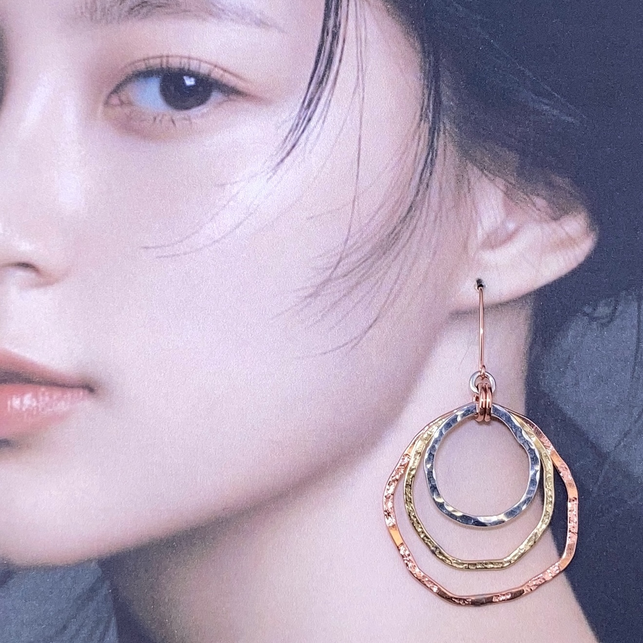 copper textured boulder earrings – stacked
