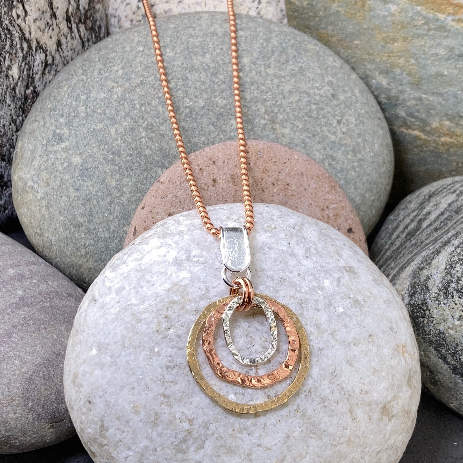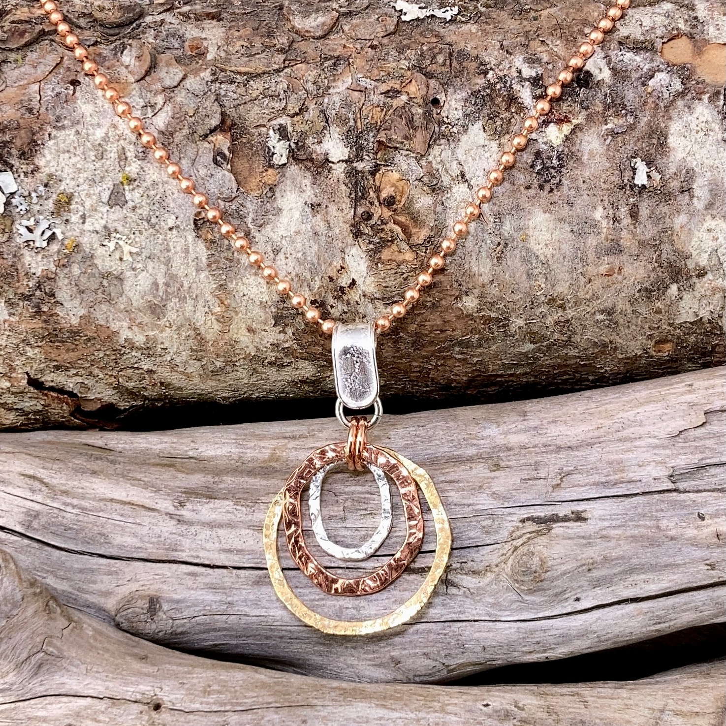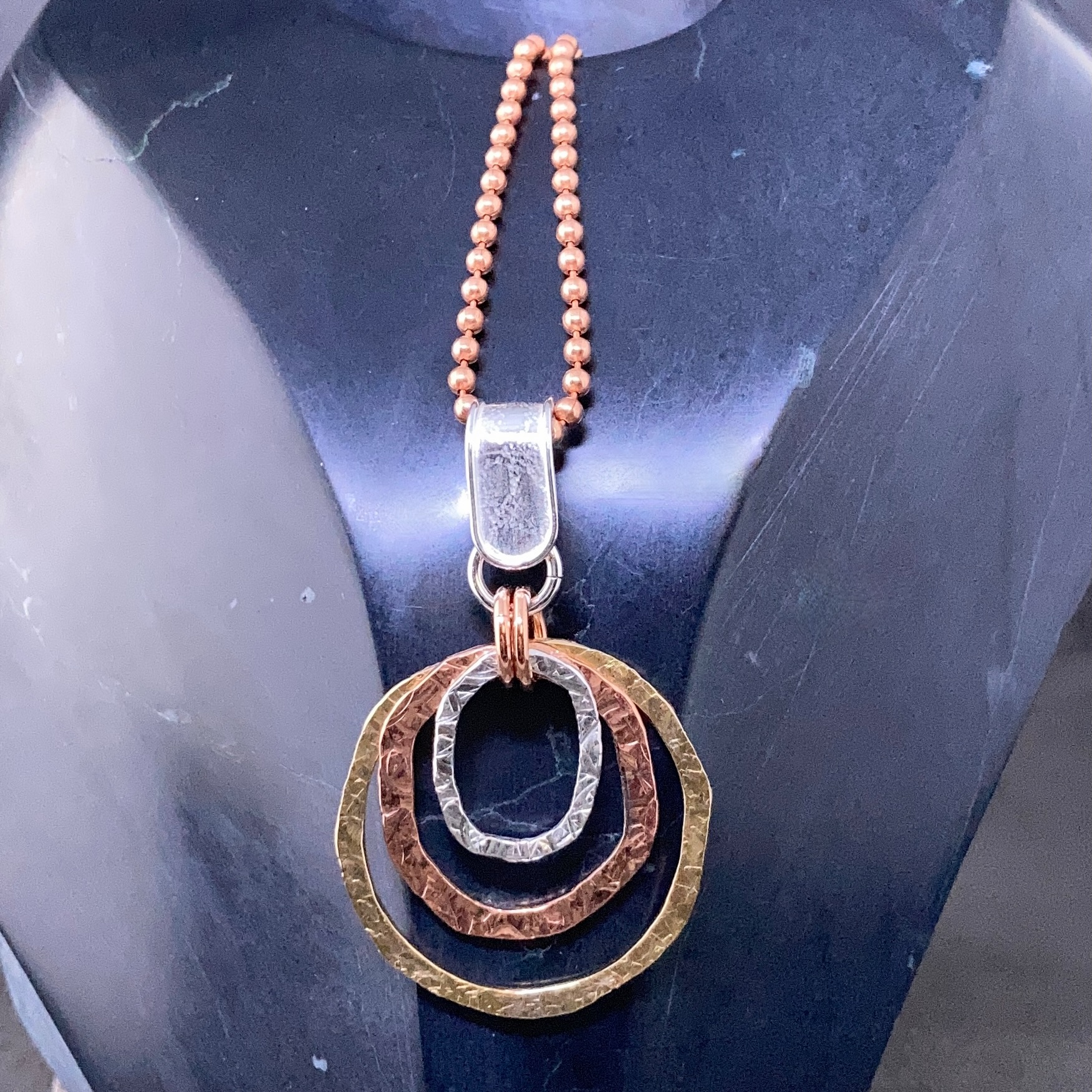 copper, brass, Argentium silver freeform circle pendant - Image 3