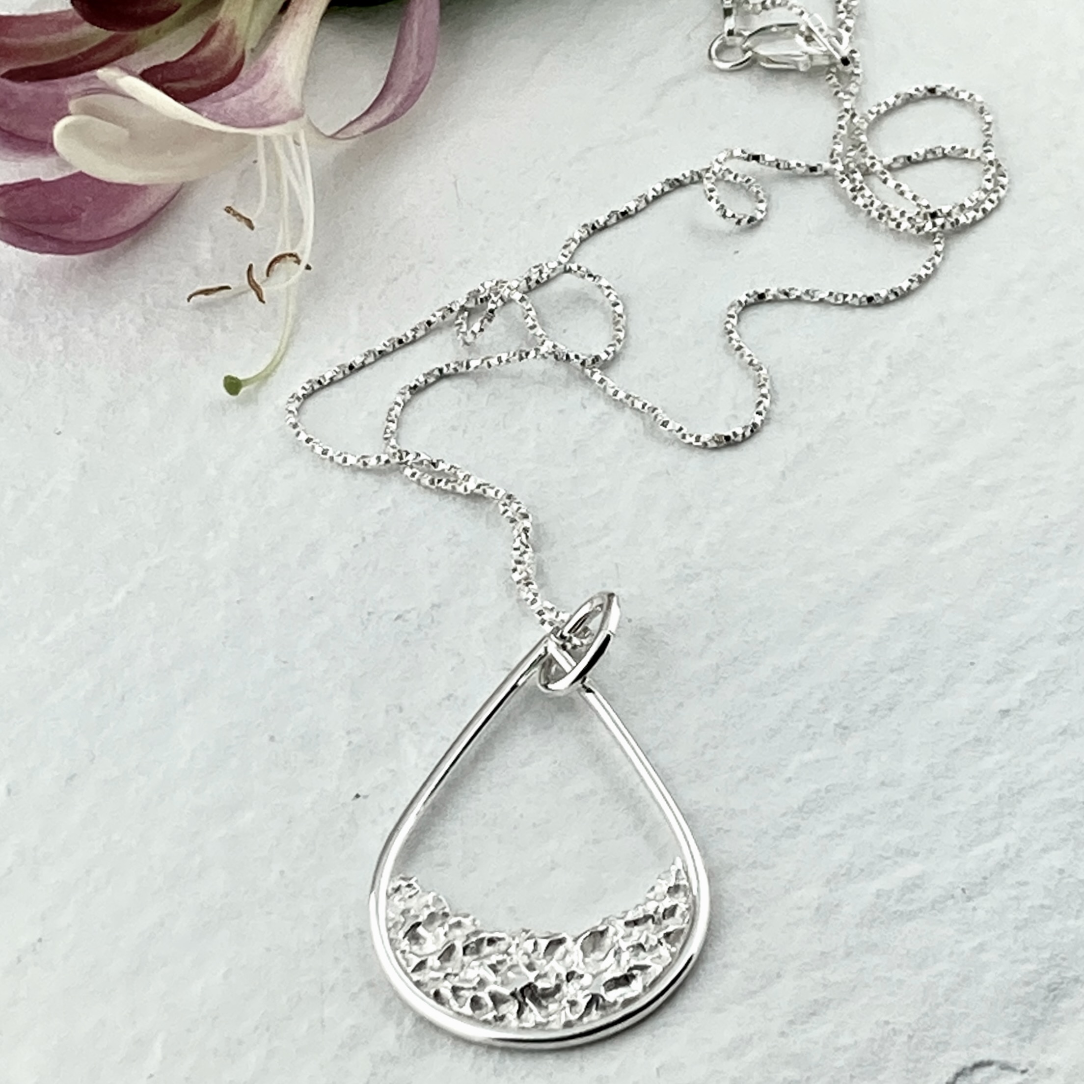 Crescent moon – made by the Lunar technique. I melt the silver and then move it around with my pik until it resembles the surface of the moon – then I remove the torch and let the silver cool.