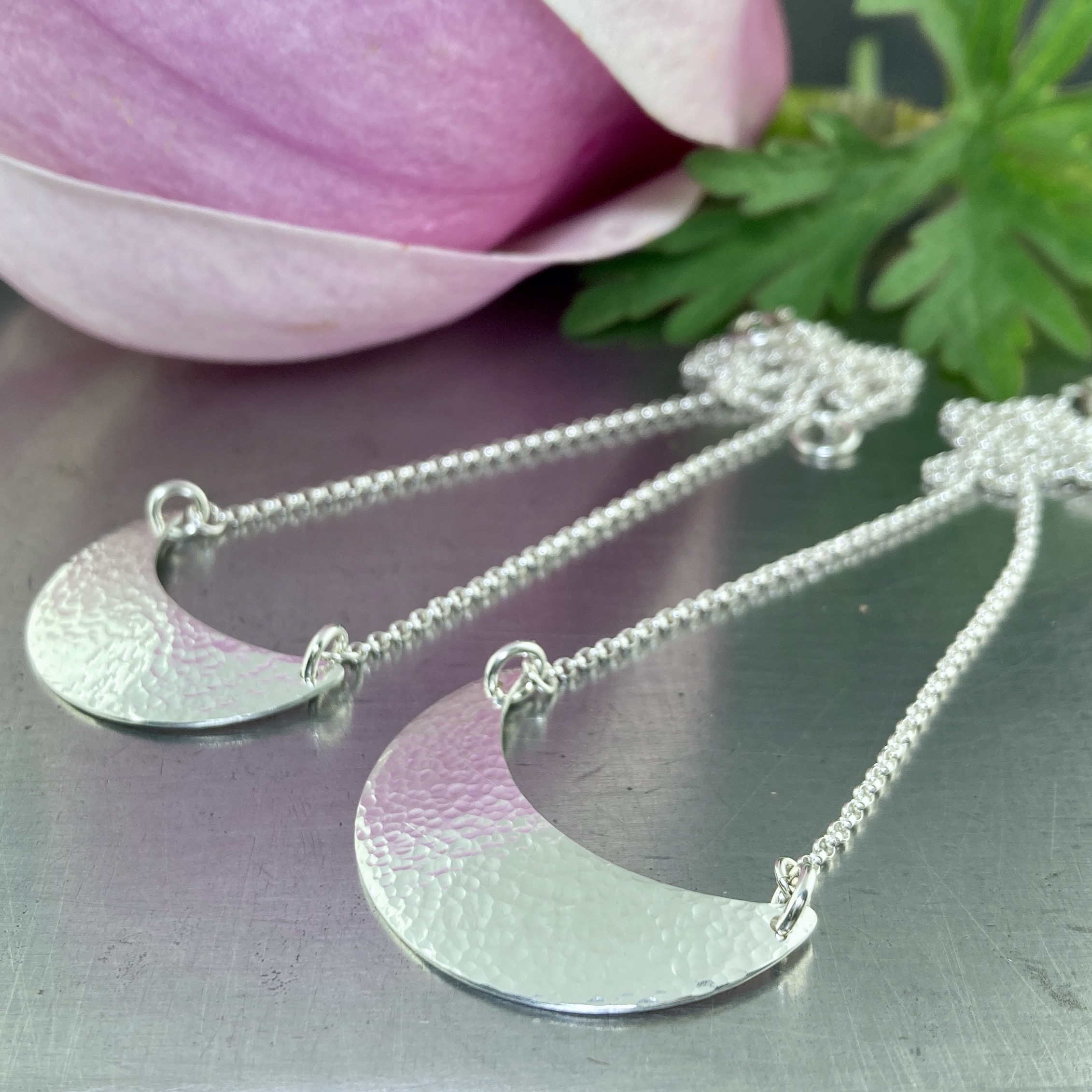 crescent moon necklace – Argentium silver – hammered – Rolo chain
