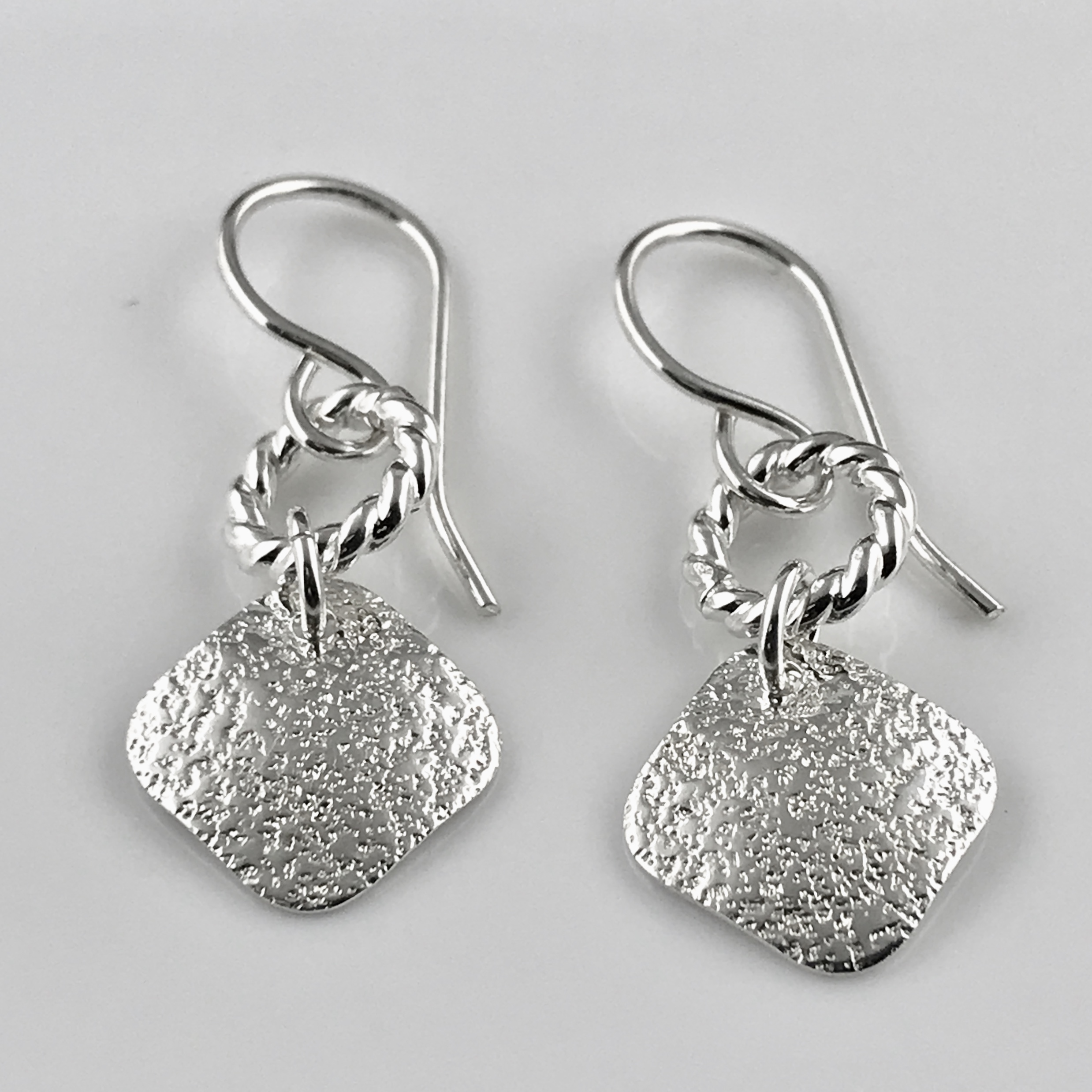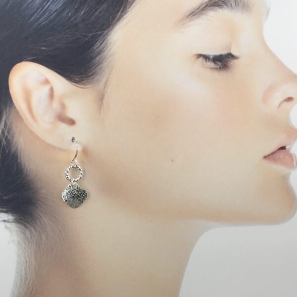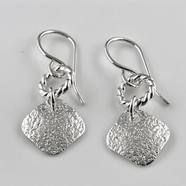 This earring is the longer of the two designs.  In this one I put the twist ring above the sand textured diamond.