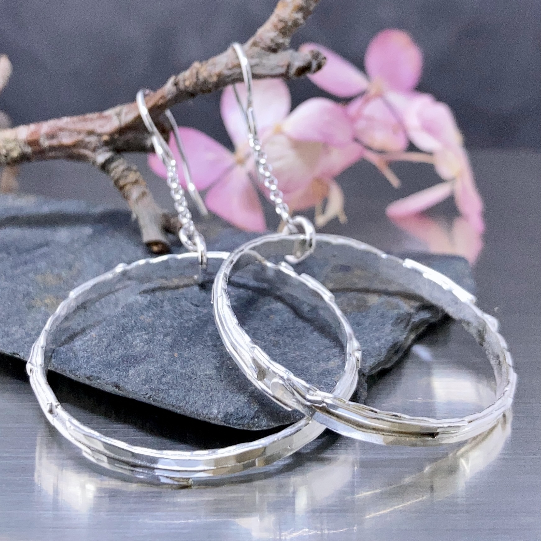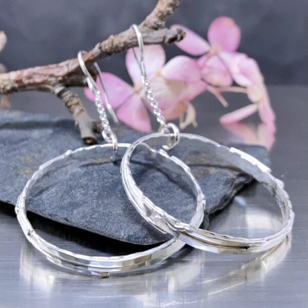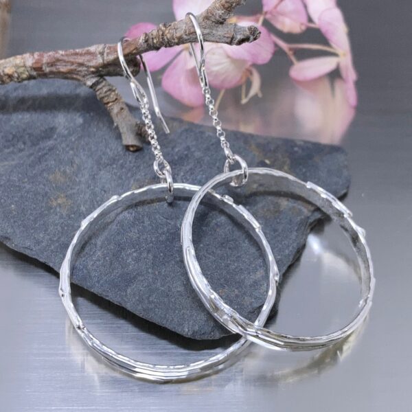 hoop earrings - floating bark - Argentium silver - medium - Image 3