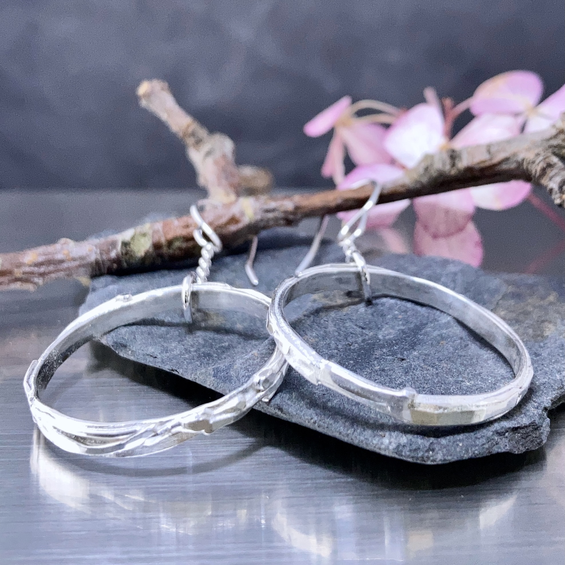 hoop earrings - floating bark - Argentium silver - small - Image 4