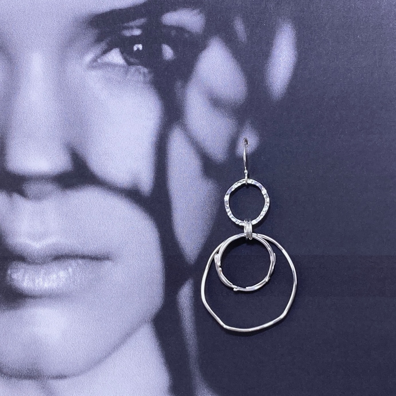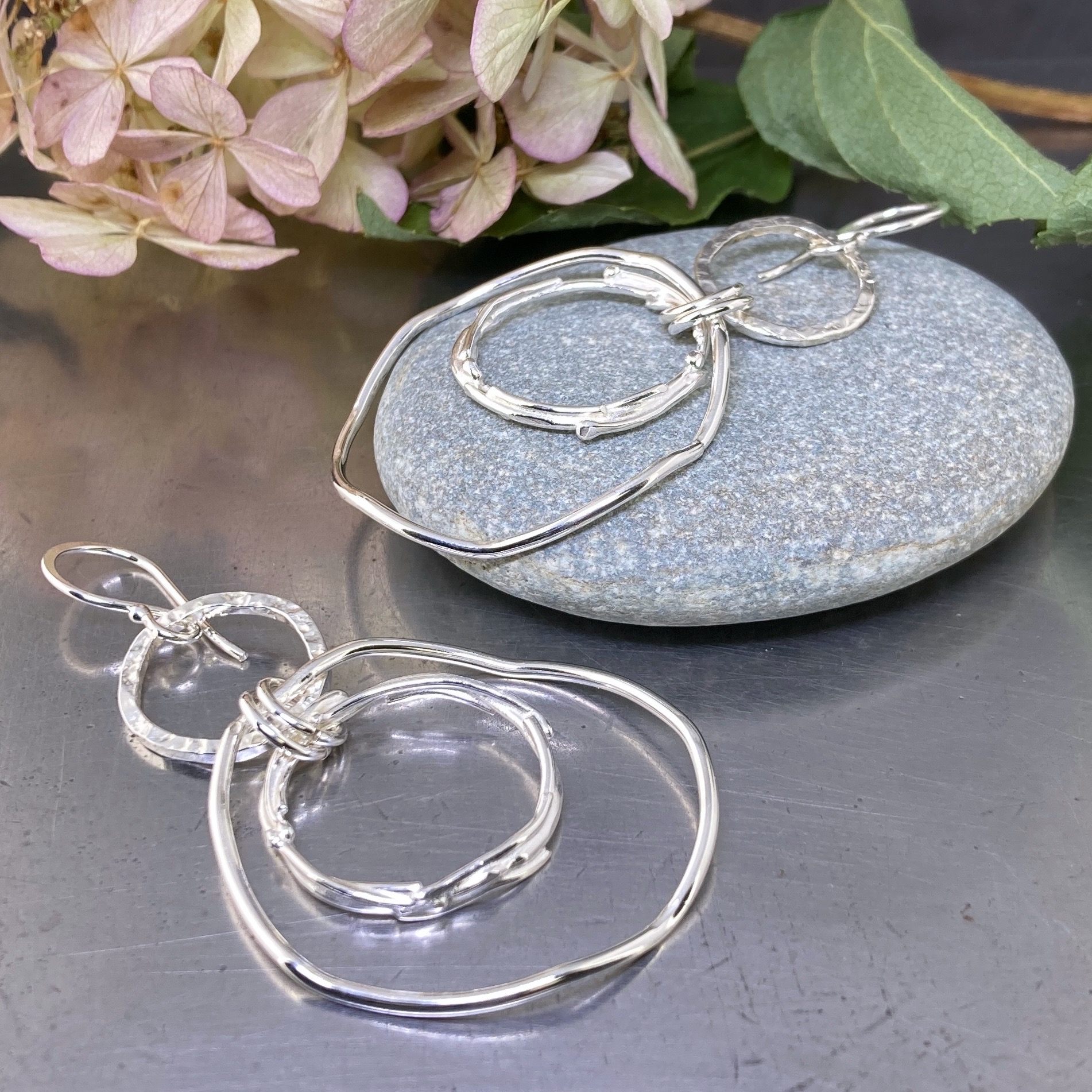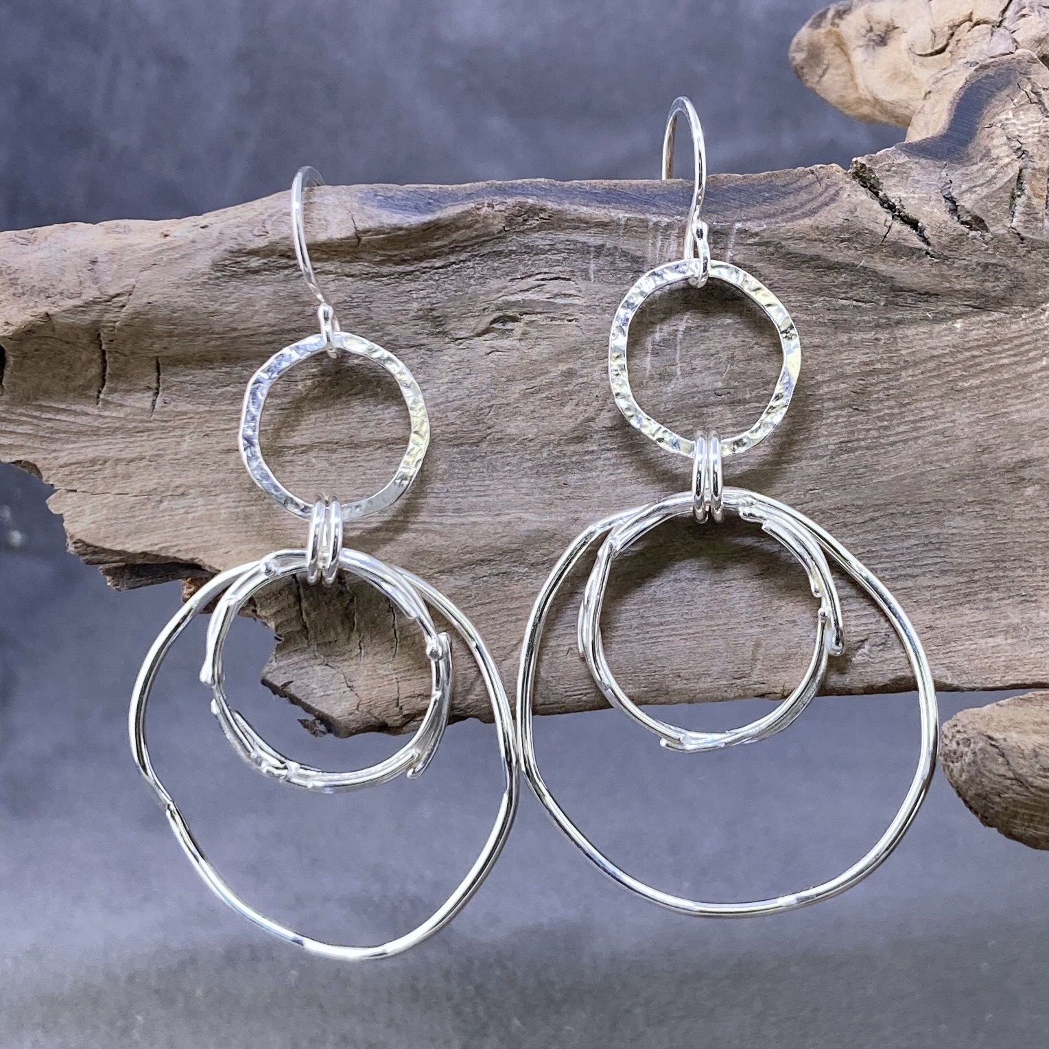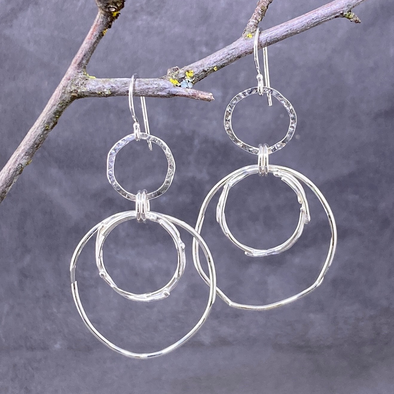 freeform circle earrings – Argentium silver – long triple boulder - Image 3