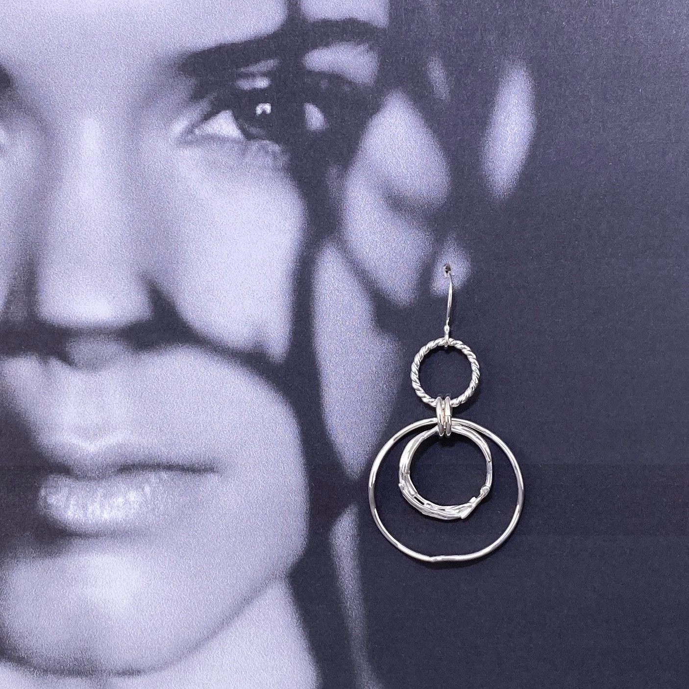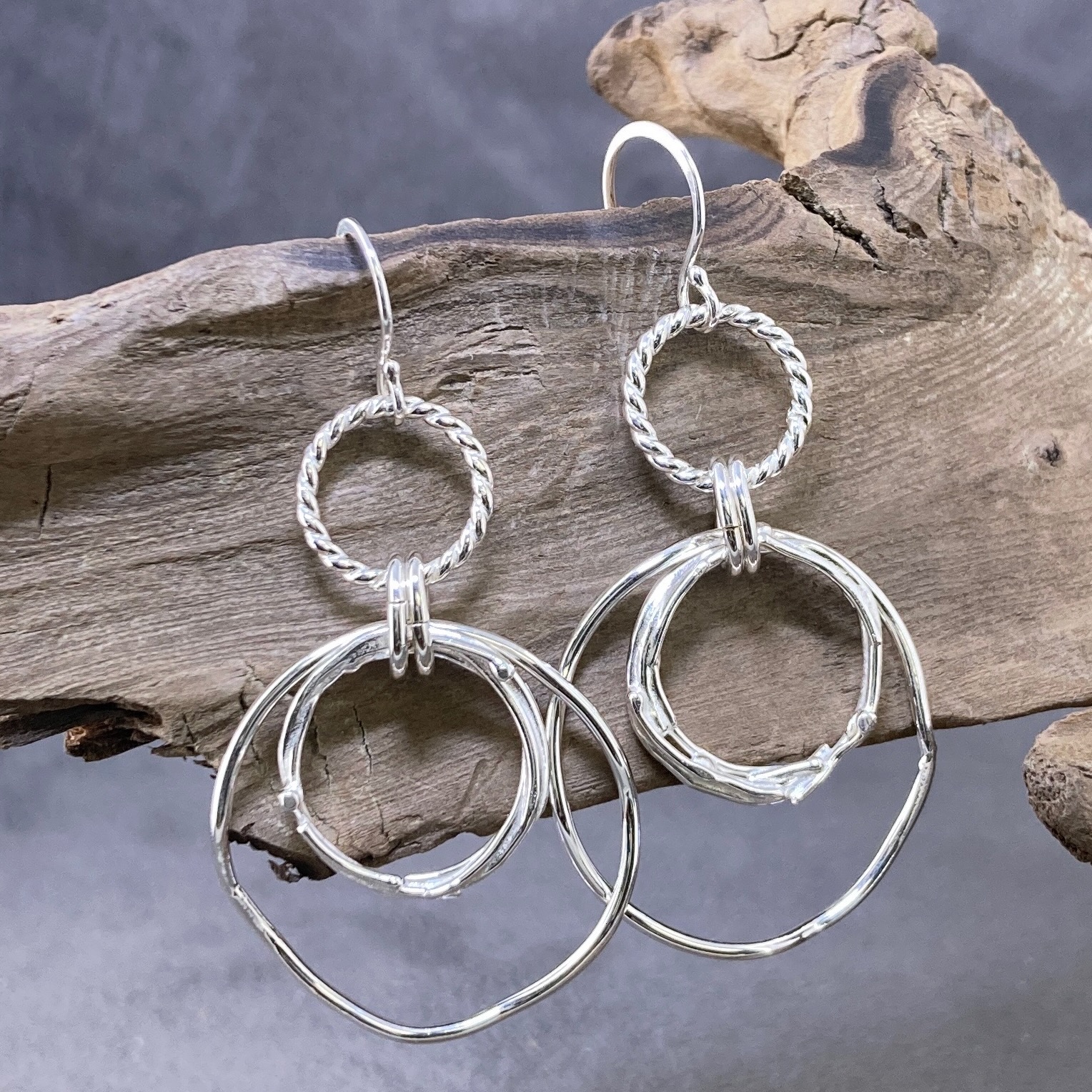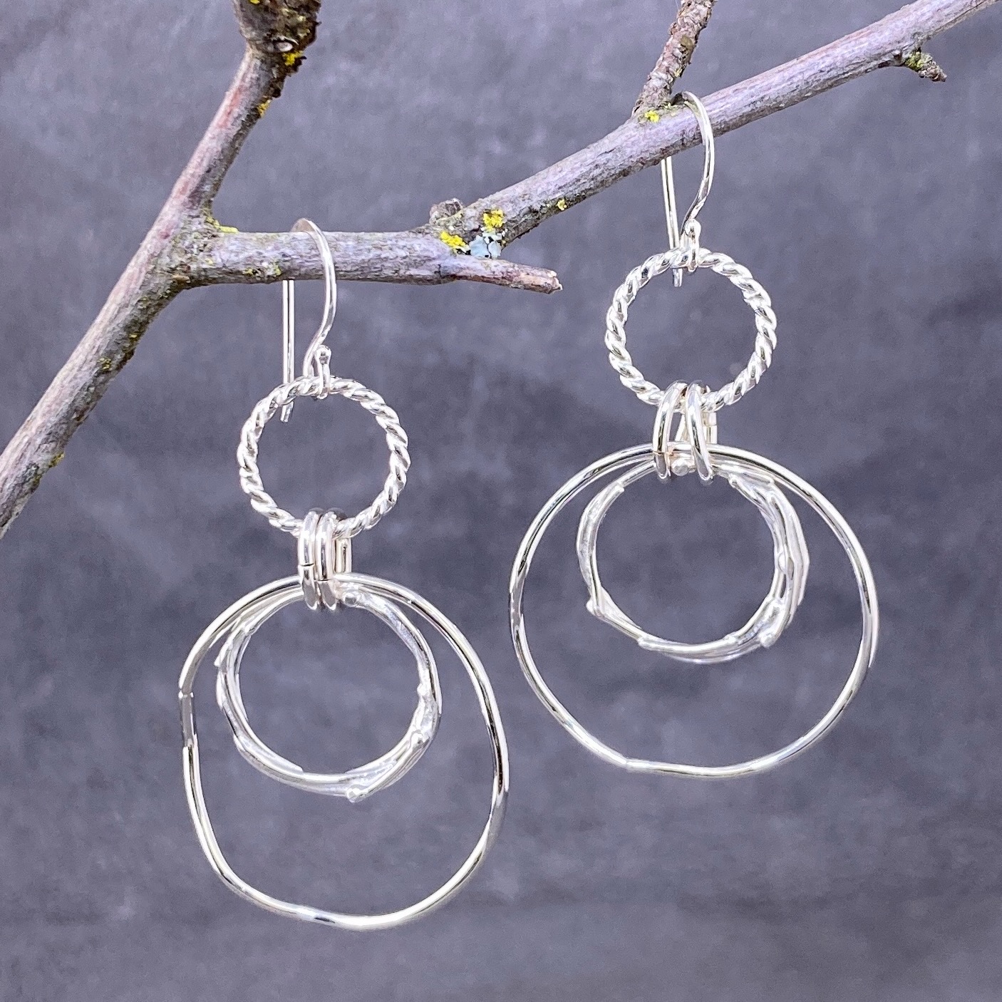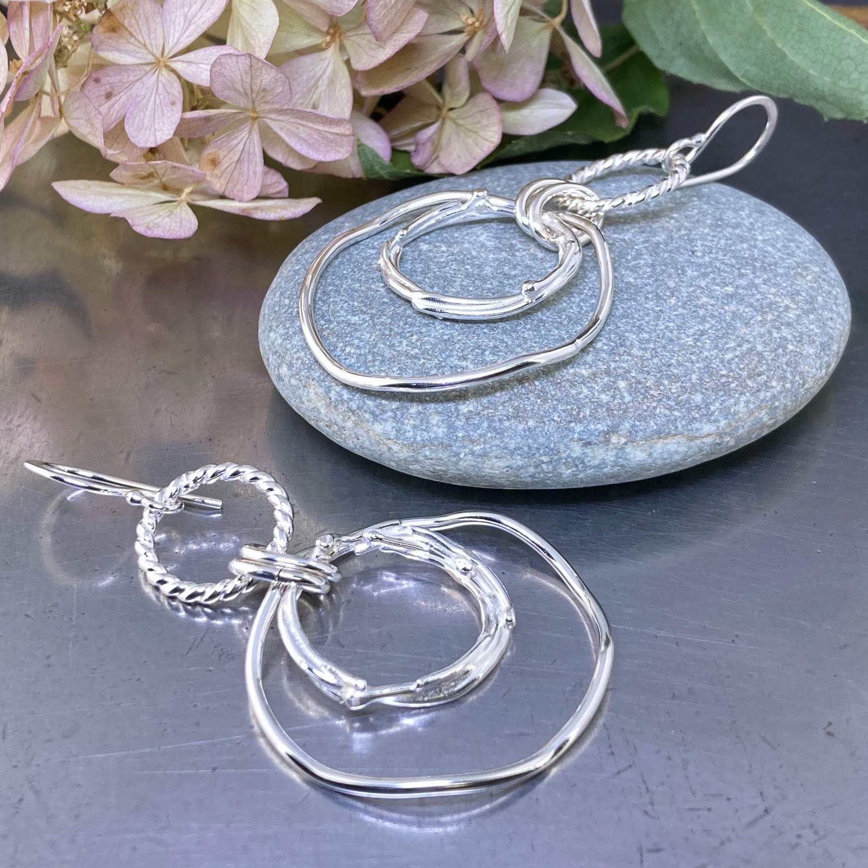 freeform circle earrings – Argentium silver – long triple boulder - Image 3