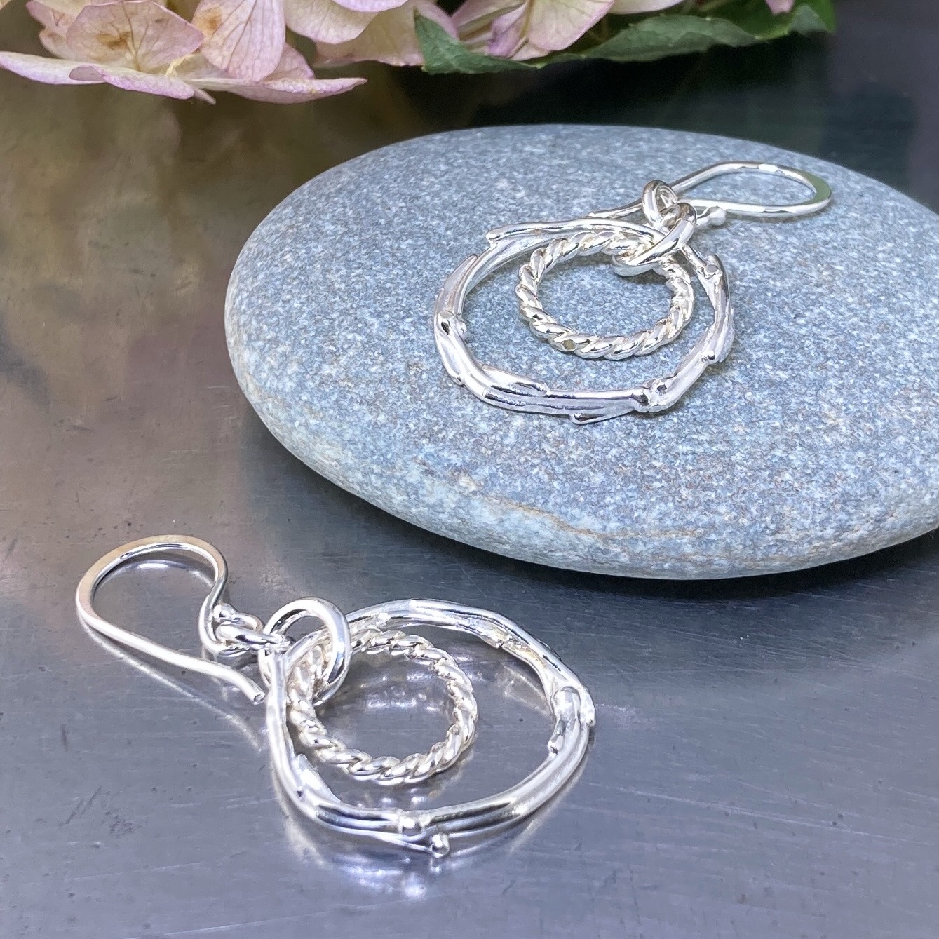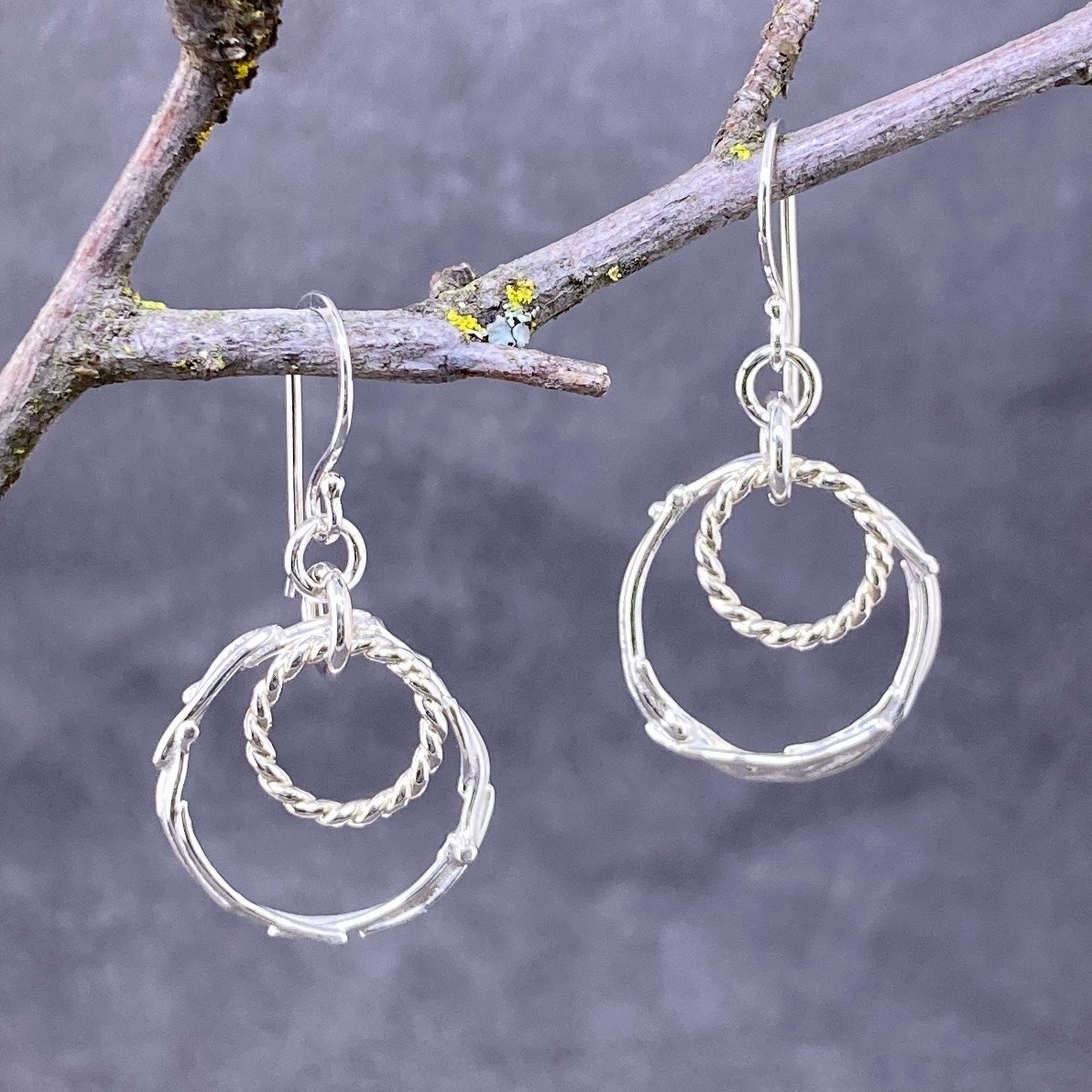 freeform circle earrings – Argentium silver – small double boulder