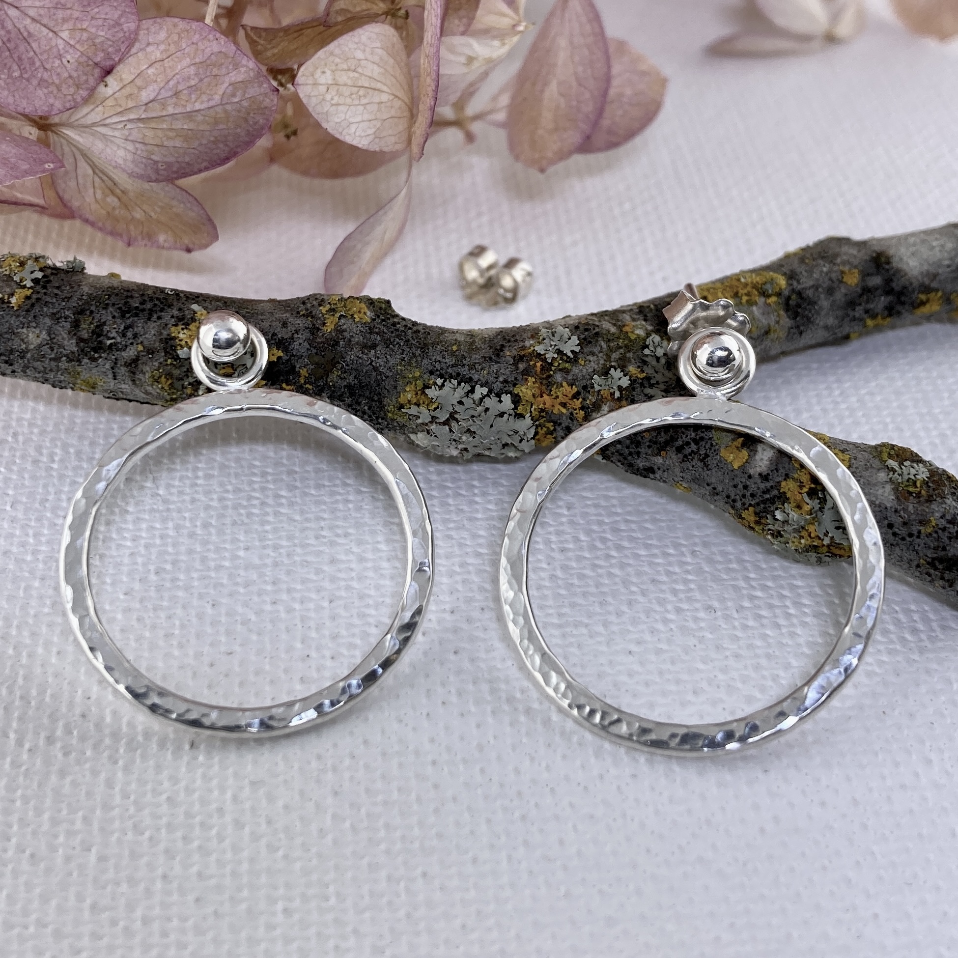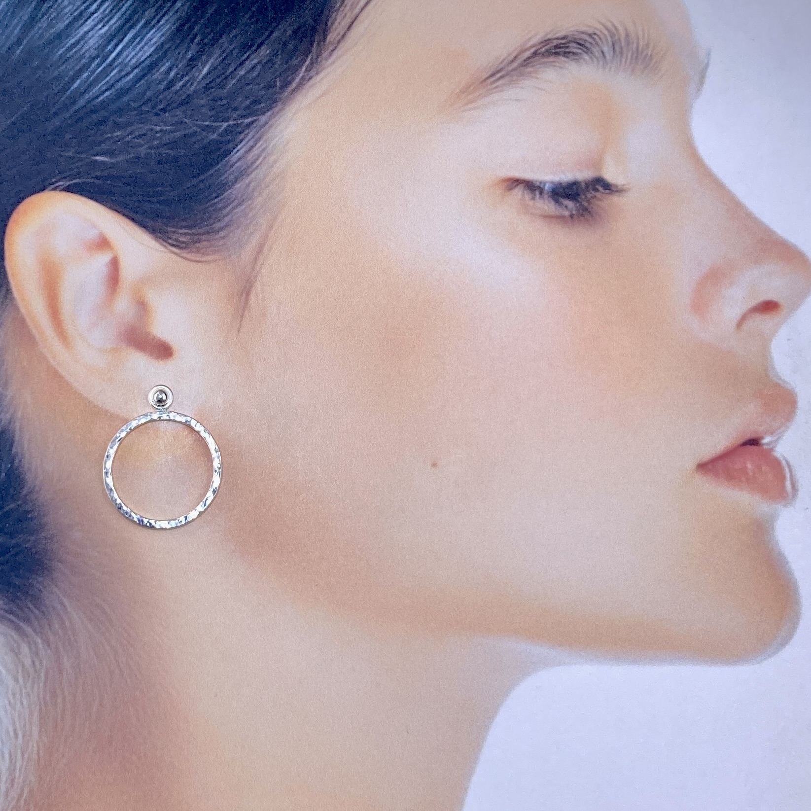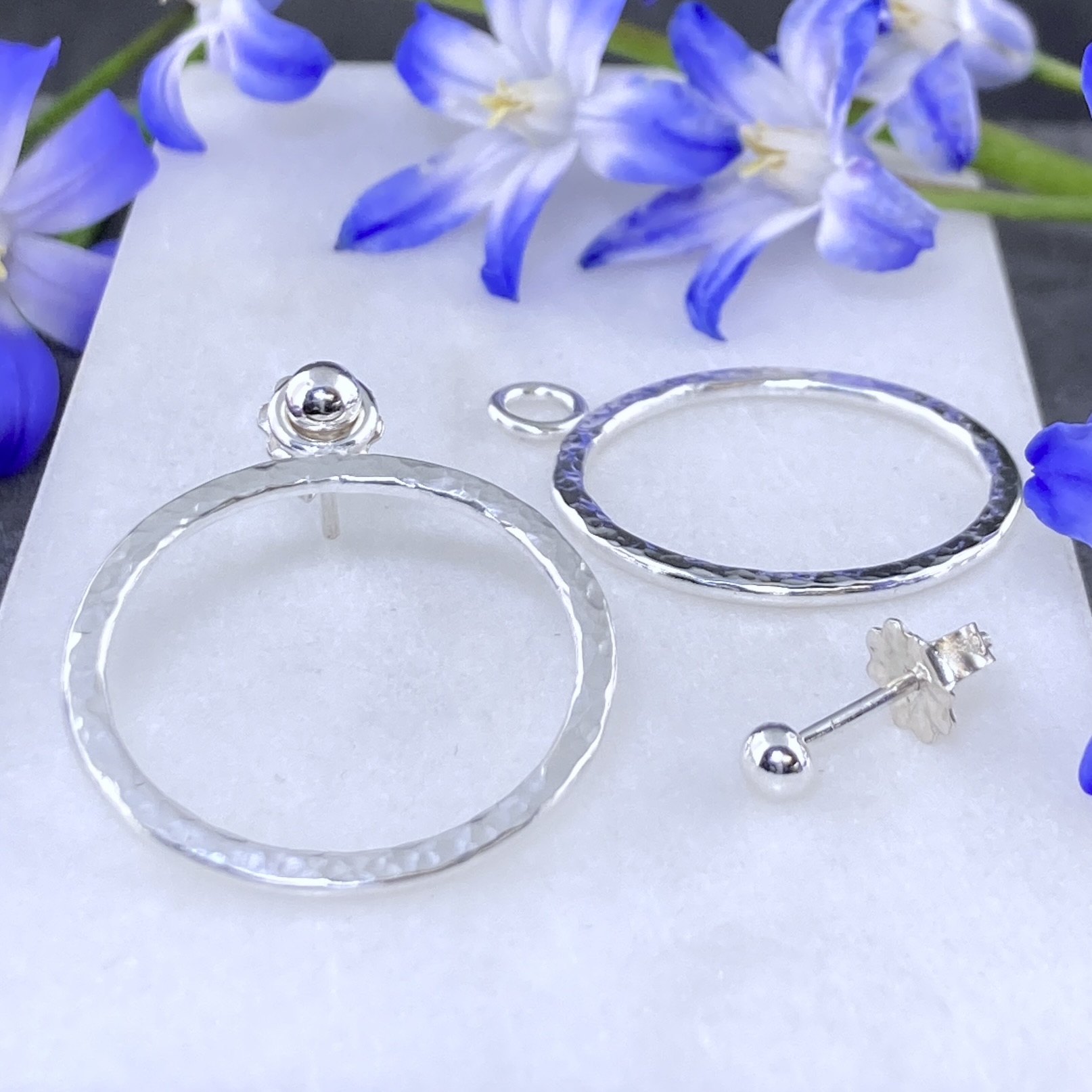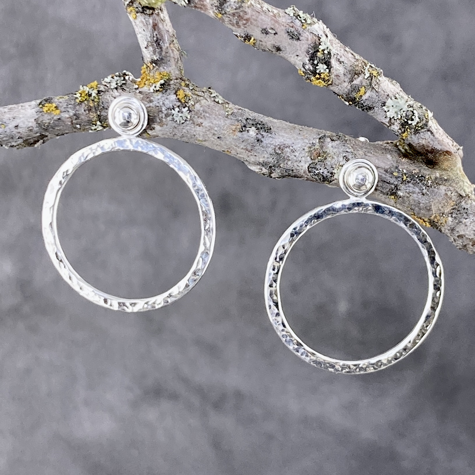 Argentium silver hammered hoop earrings. With a shiny granule post – they can be worn together or the granule can be worn alone. And the hoop can be worn with any post – always changing the look!
