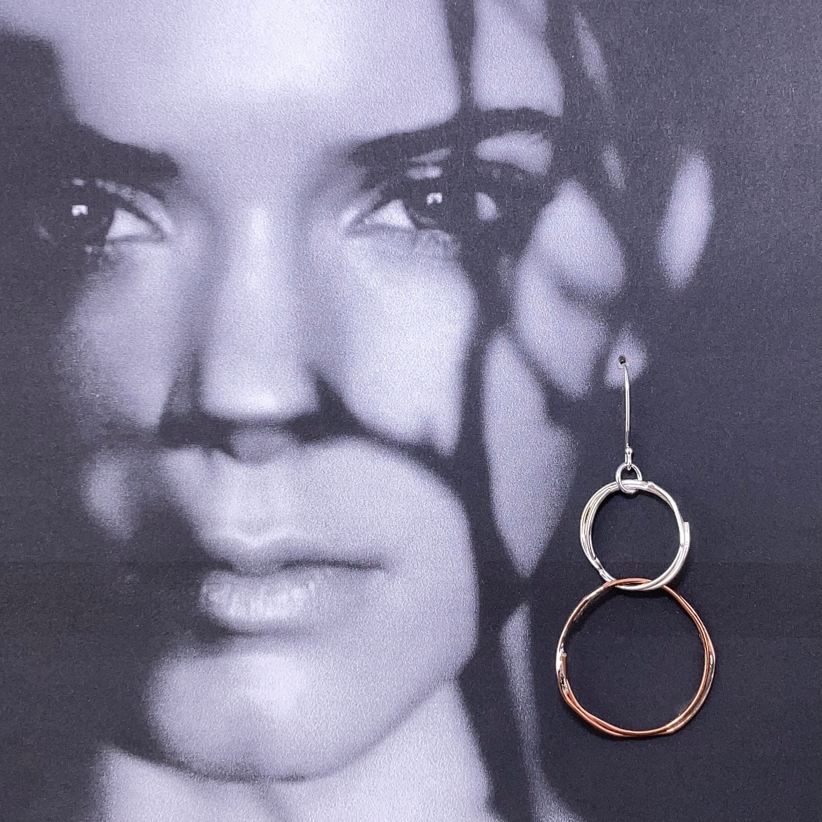 copper, Argentium silver - freeform circle earrings - small - Image 3
