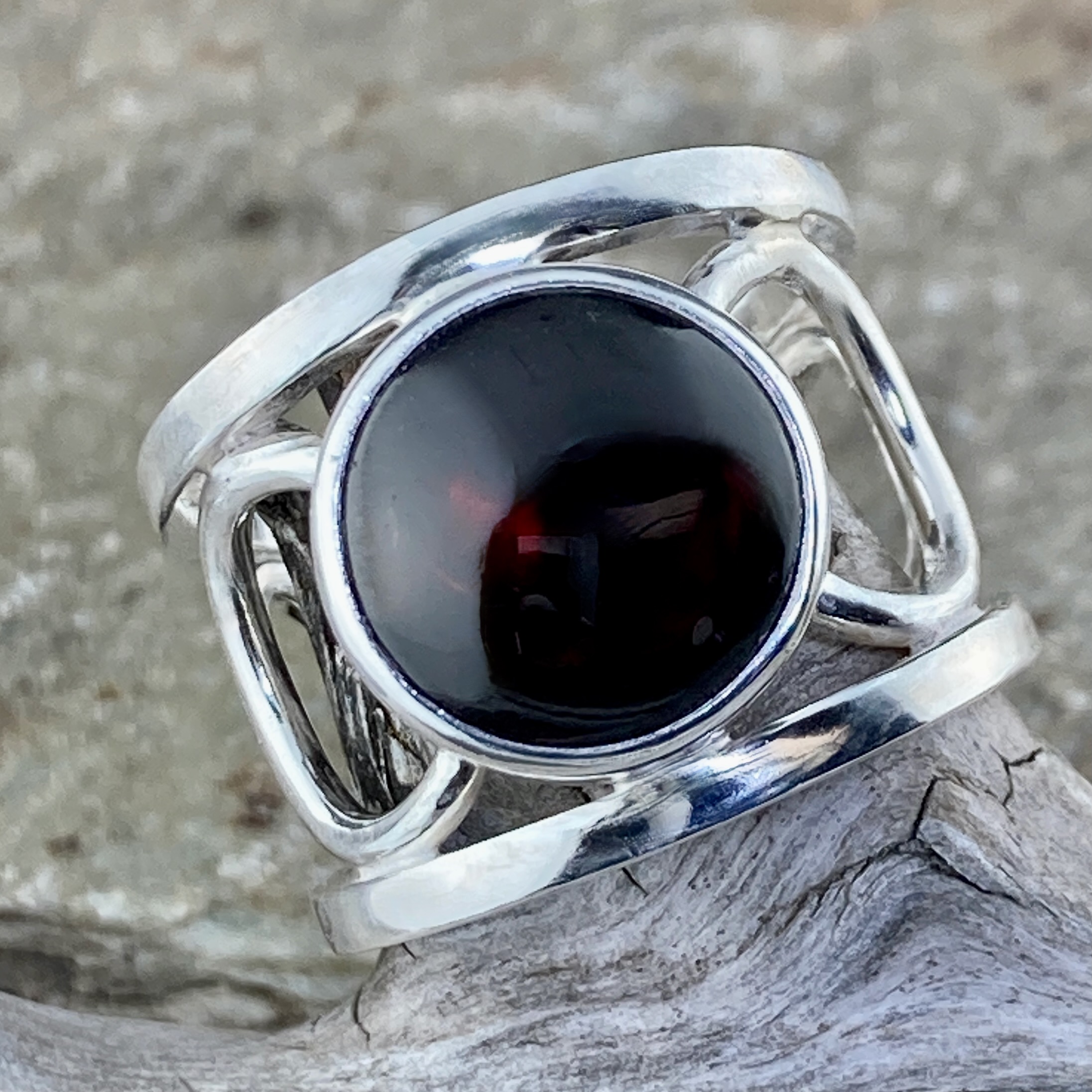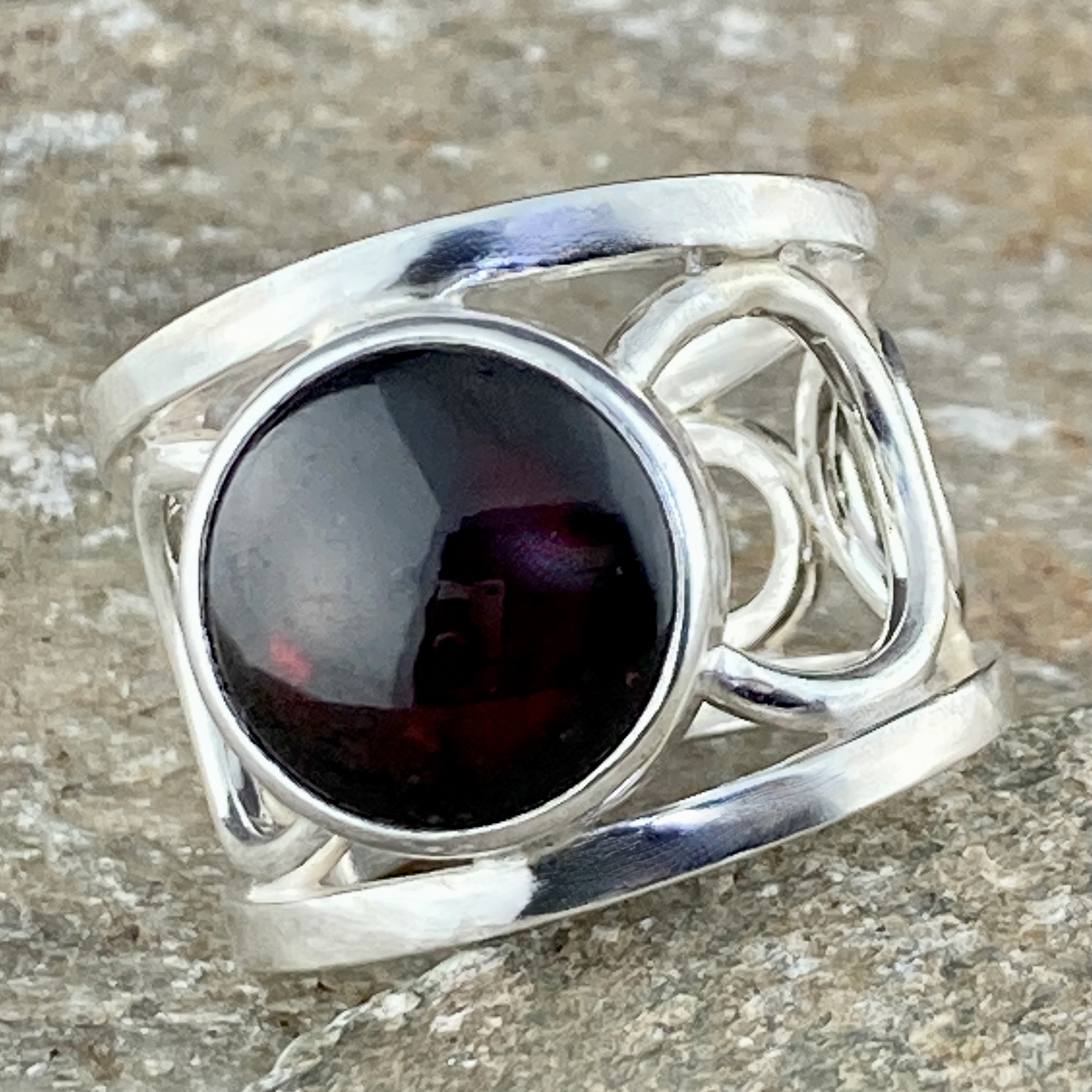 Garnet Ring – Size 7.75 – Argentium Silver Boulder Design