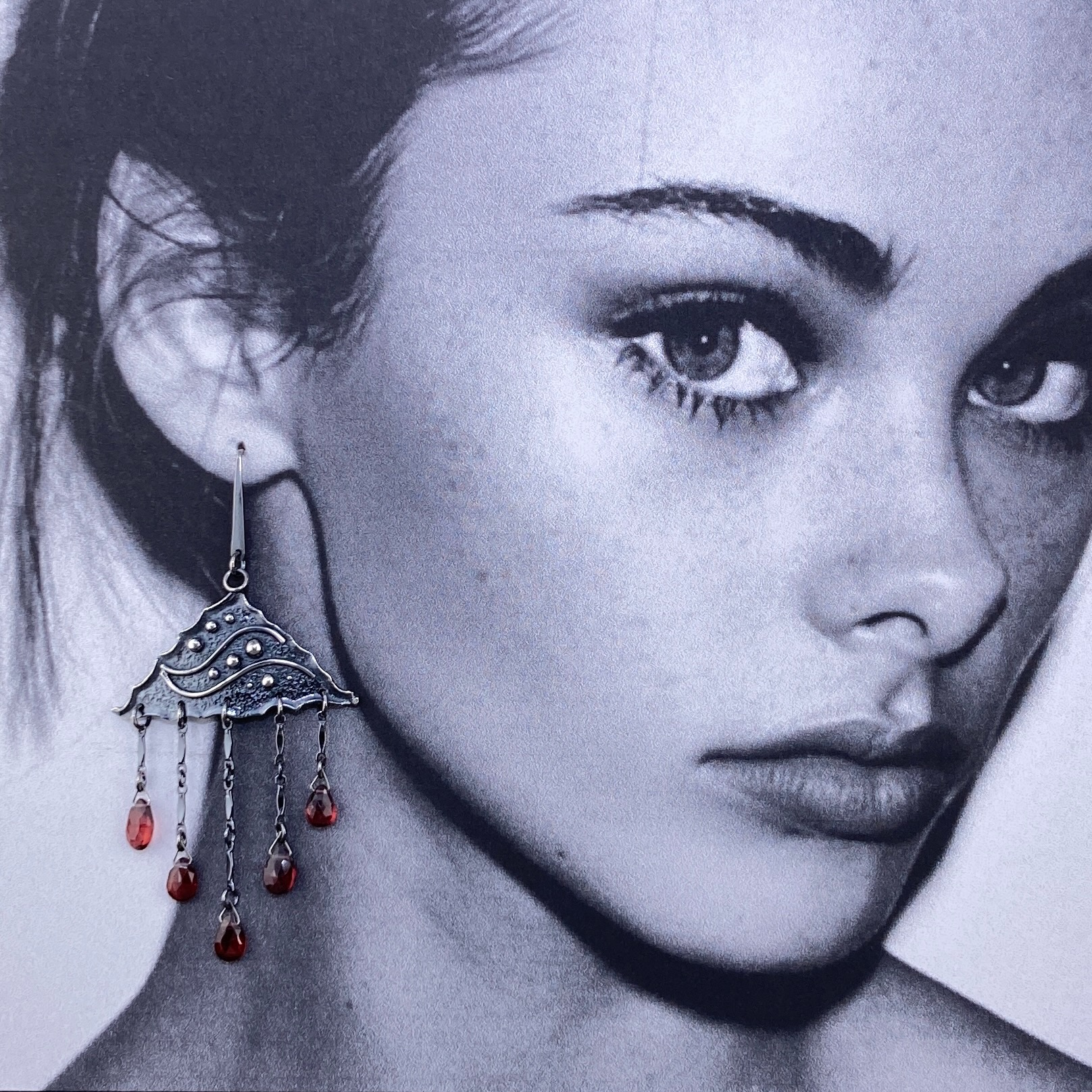 Earrings are 7.8 cm long by 3.8 cm wide.
