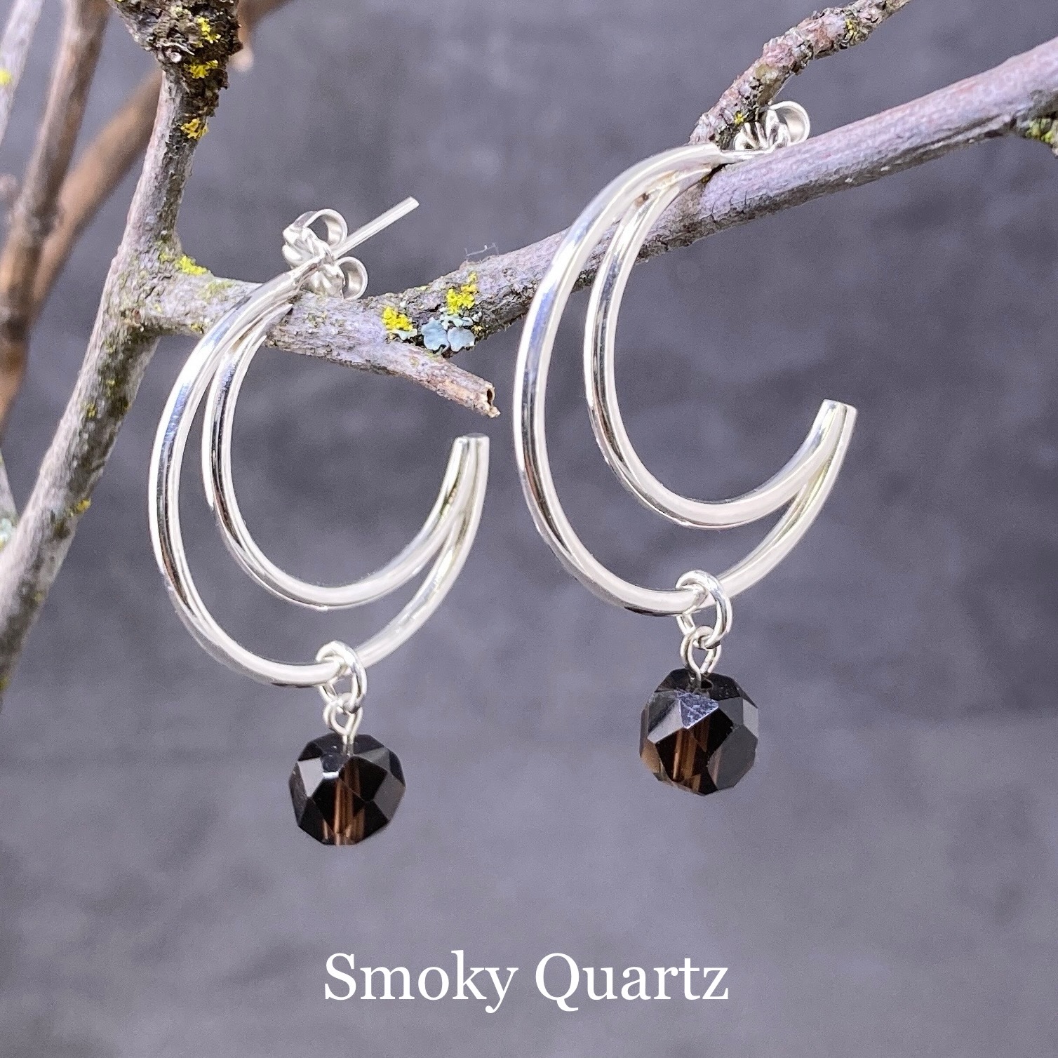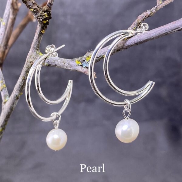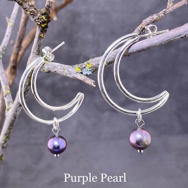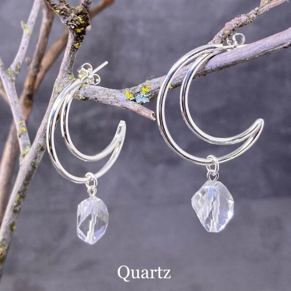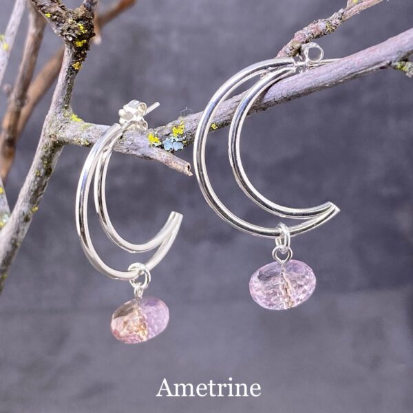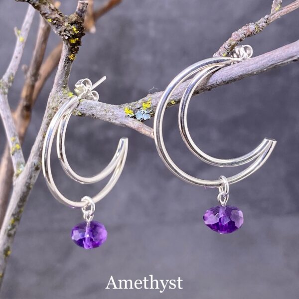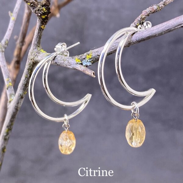 gemstone earrings – crescent moon post – Argentium silver