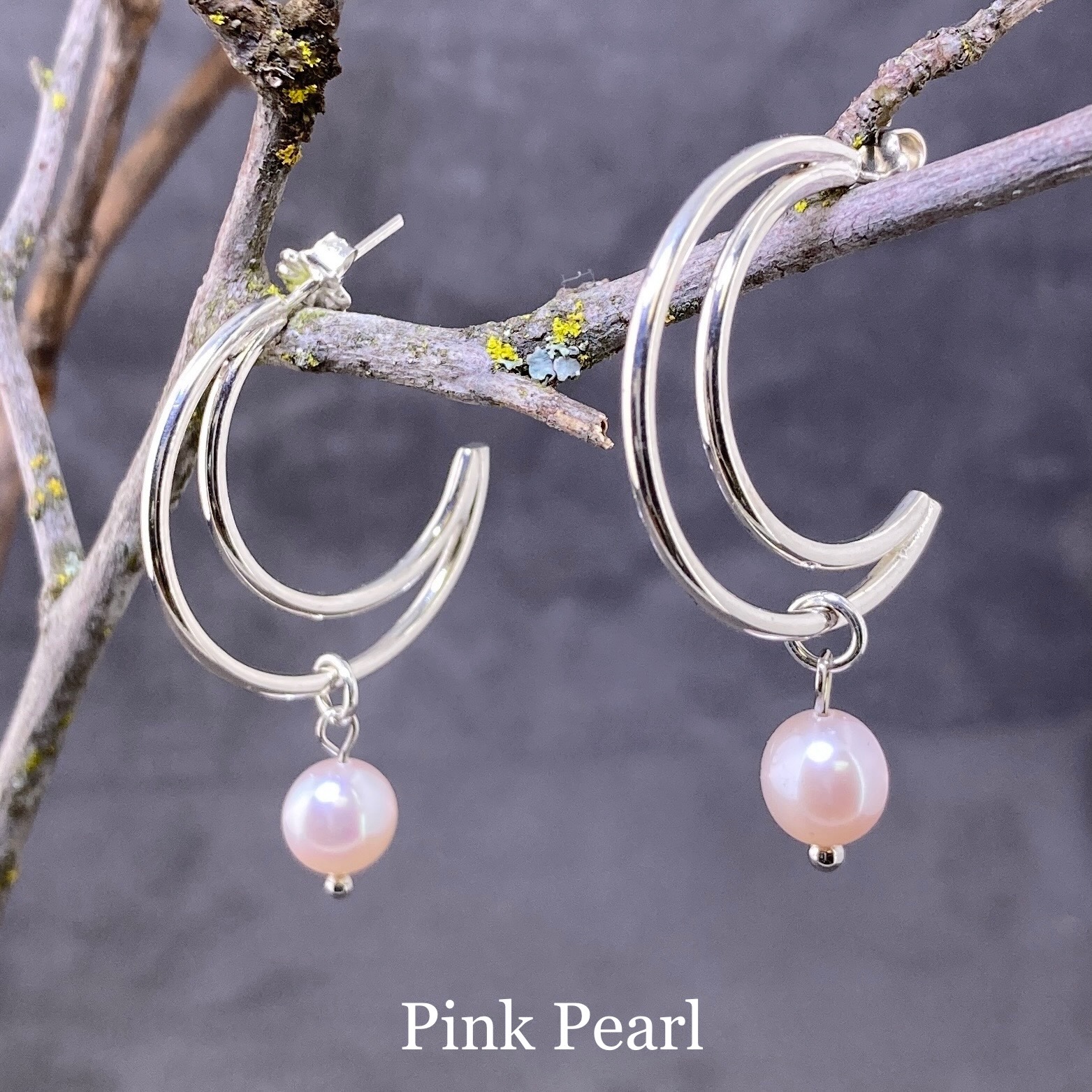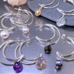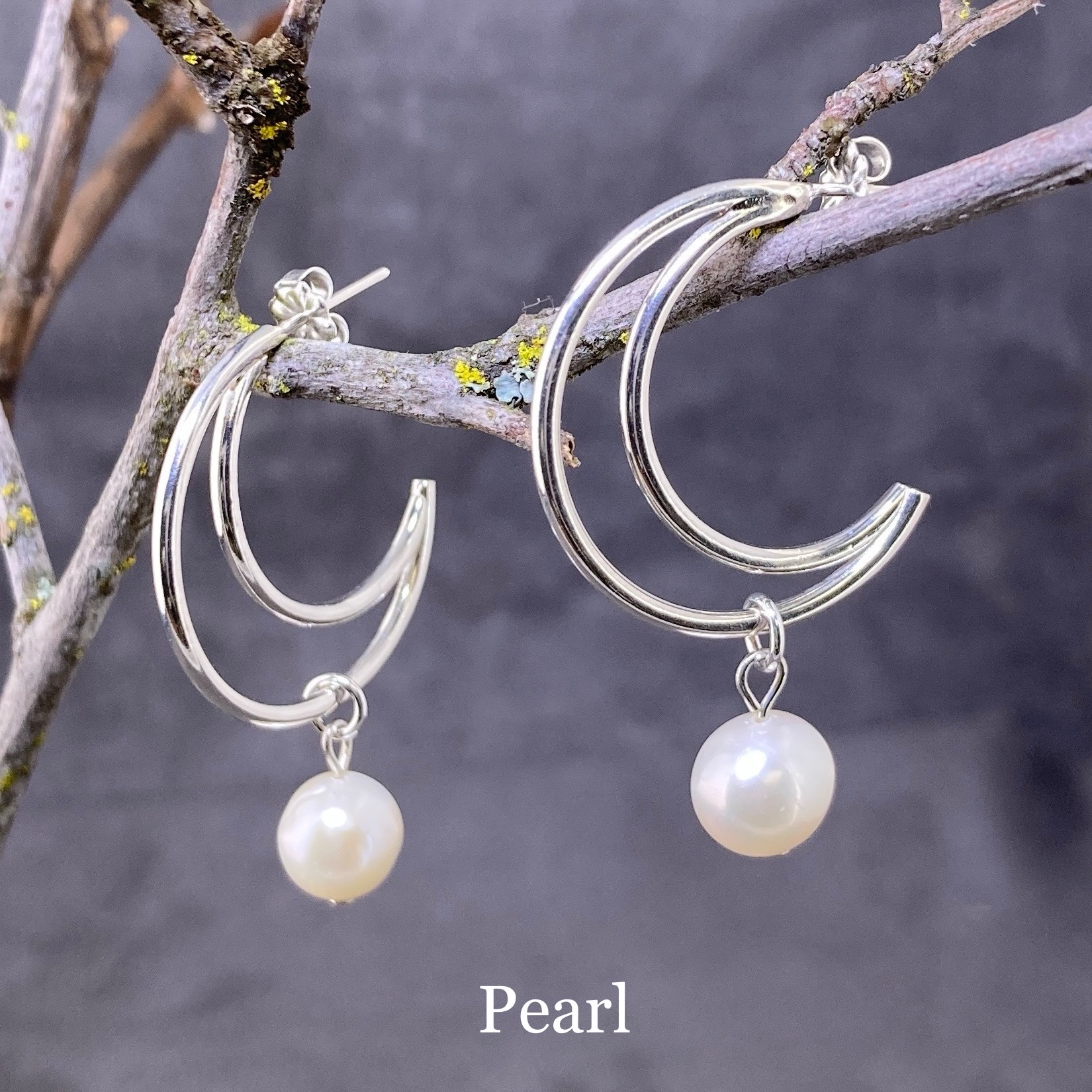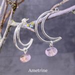 I start with Argentium silver wire and bend them into gentle curves. Then I shape the wire into crescent moons and fuse them together. I add a post, and then a little sparkle with a natural gemstone drop.