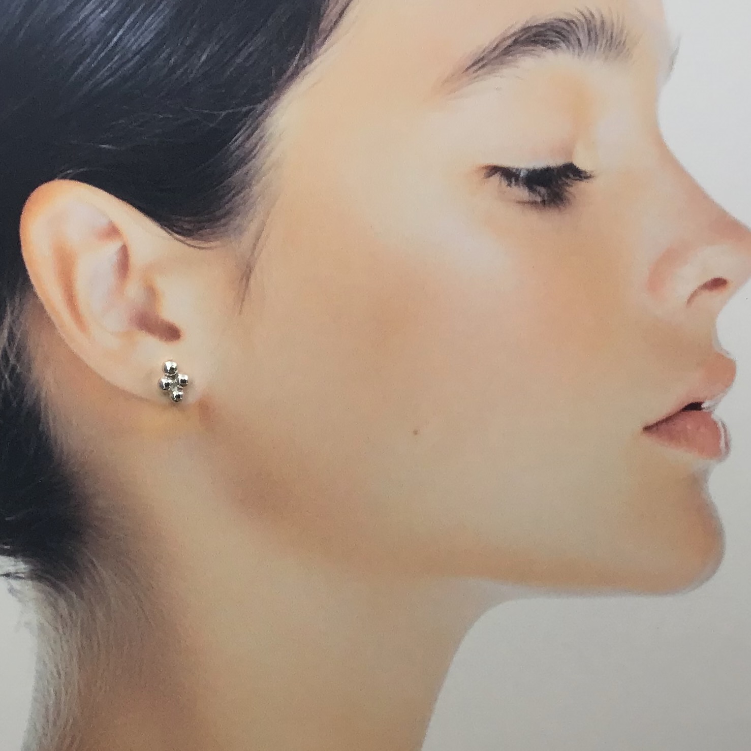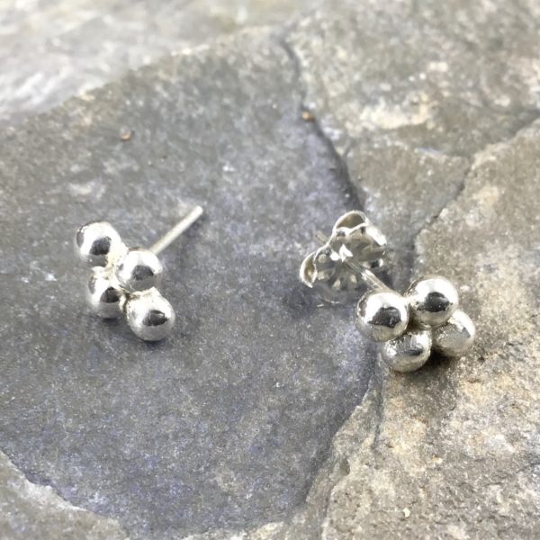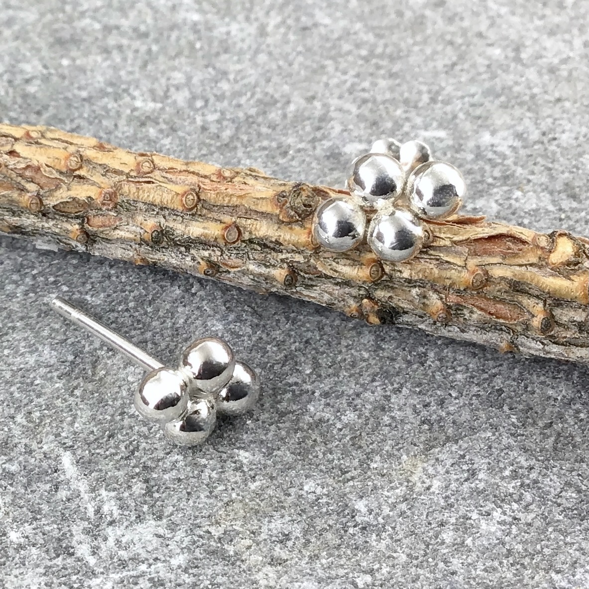 Quadruple granule post earrings handmade in Argentium silver. Bright, grounded, and balanced.