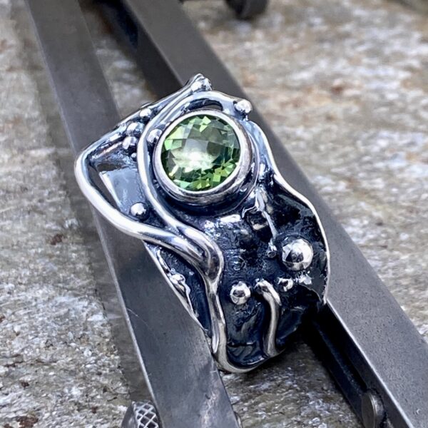 green amethyst ring – size 13.5 – antique Argentium silver – 2 carat