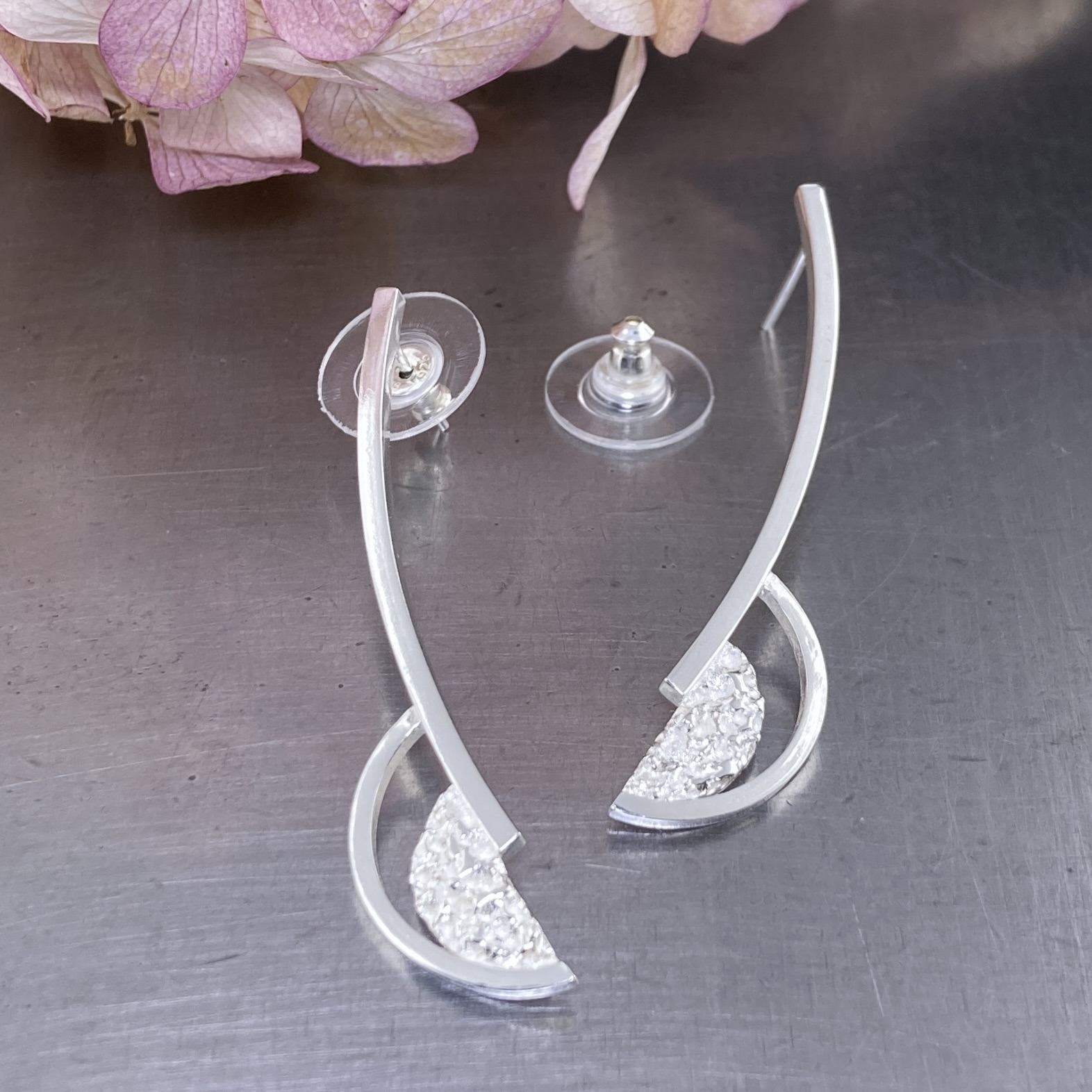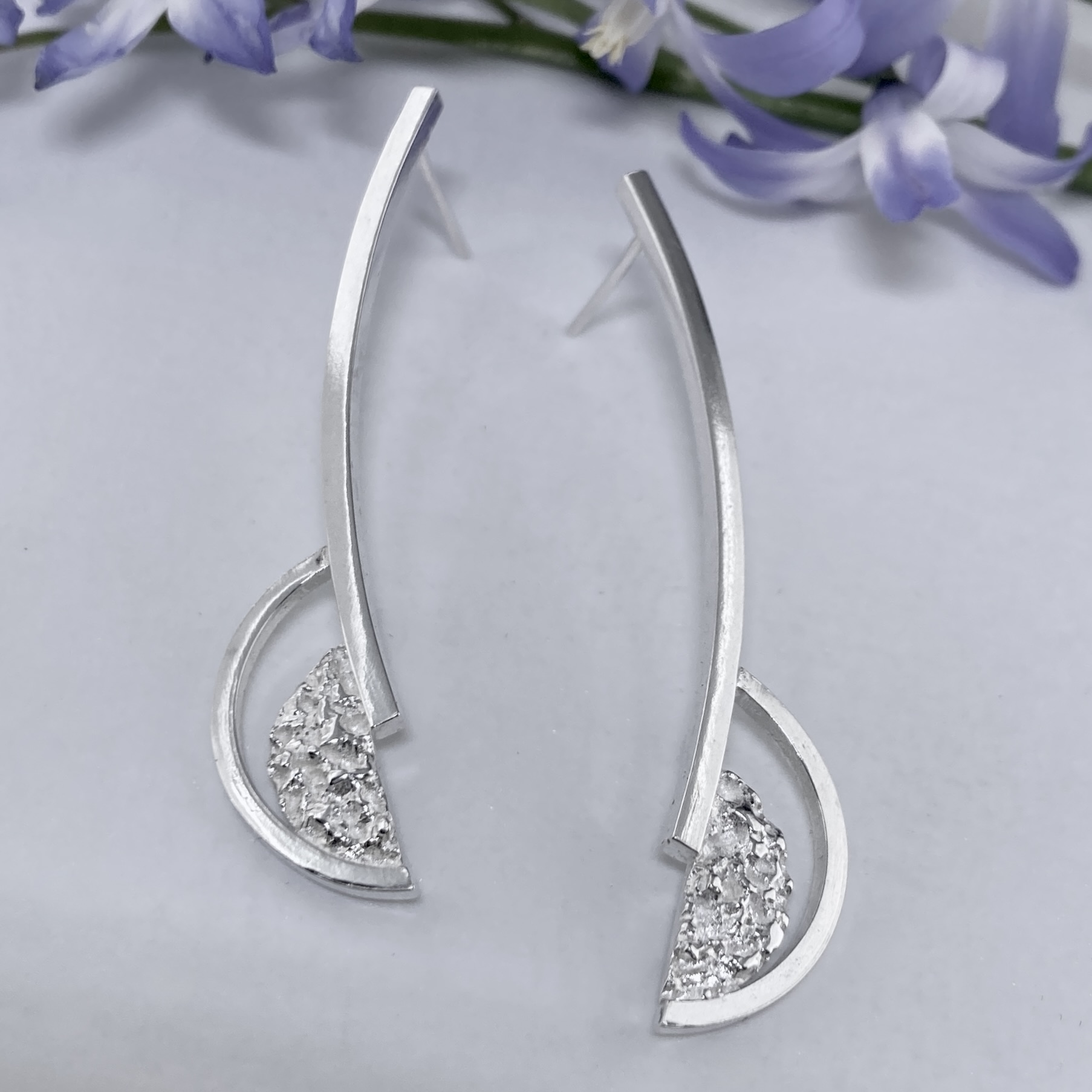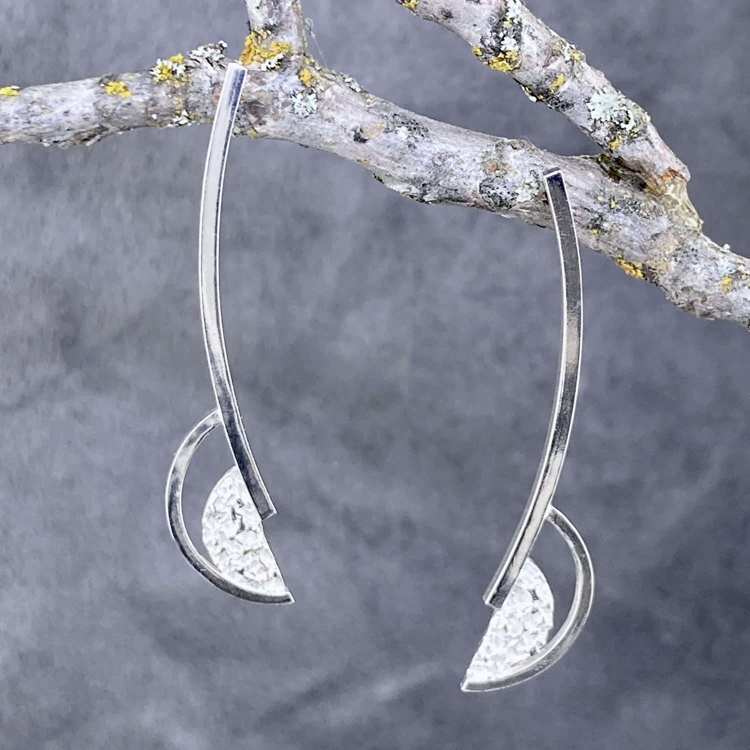 Half sun and moon – post earrings.  Argentium silver half a moon surrounded by half a Sun – an elegant earring.