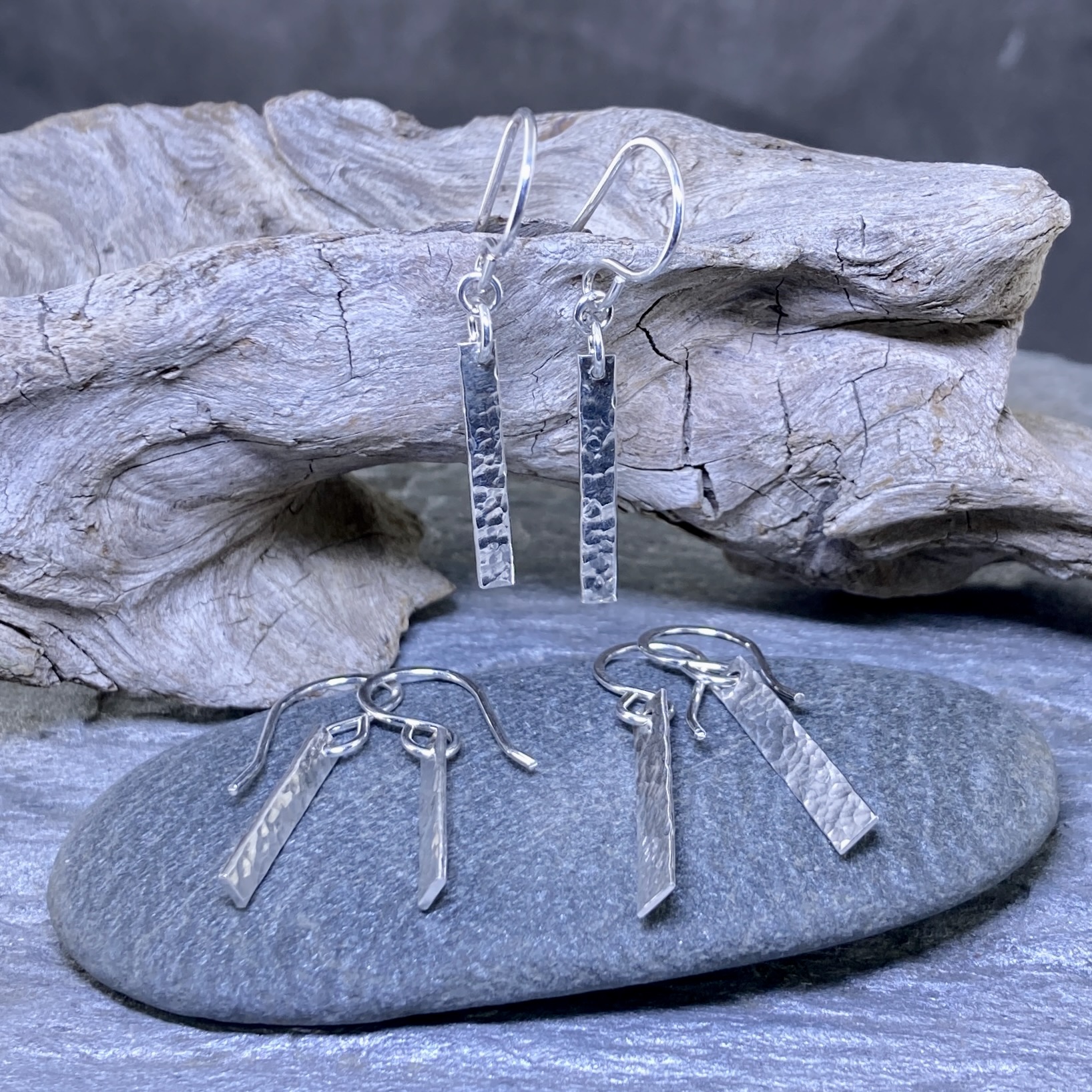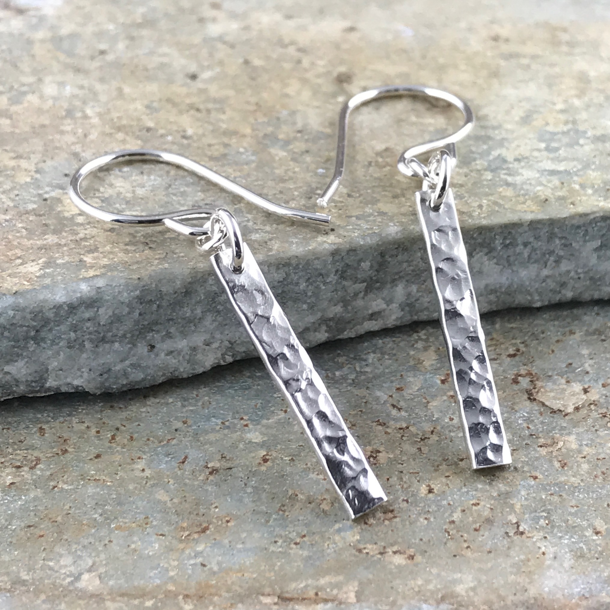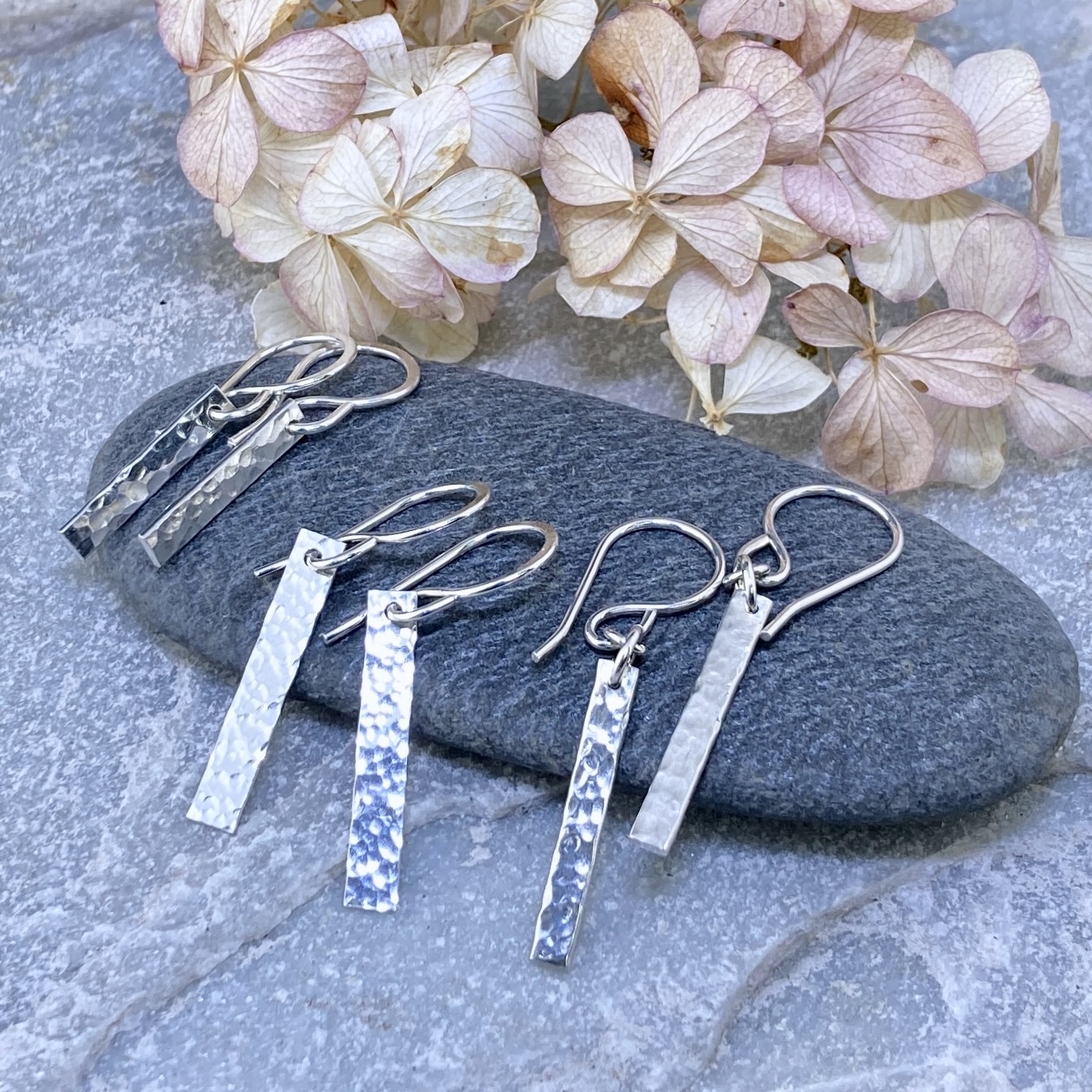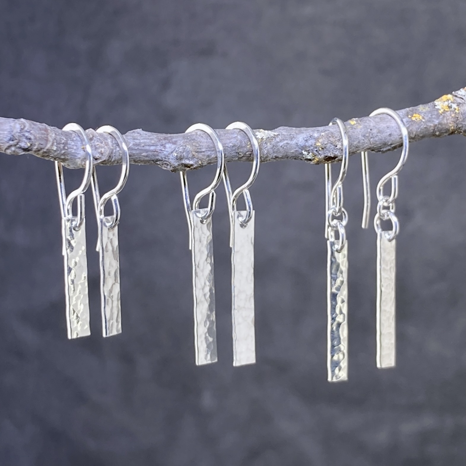 Hammered Bar Earrings – Three Sizes – Argentium Silver