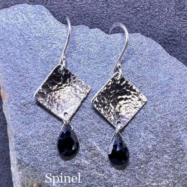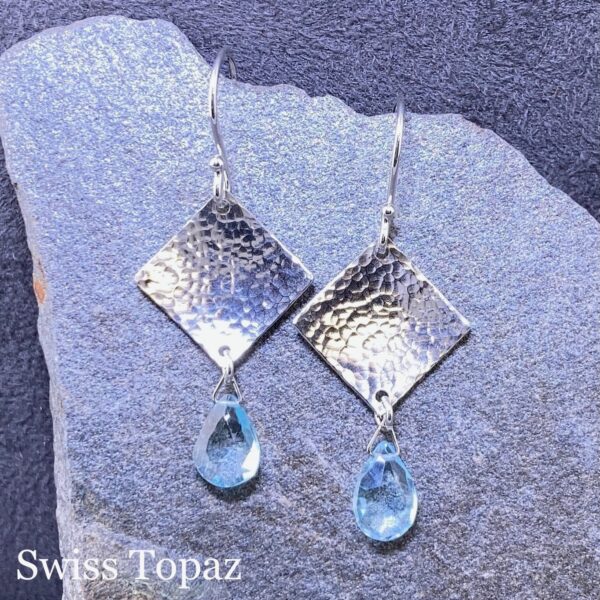 gemstone earrings - hammered diamond - Argentium silver - small - Image 6