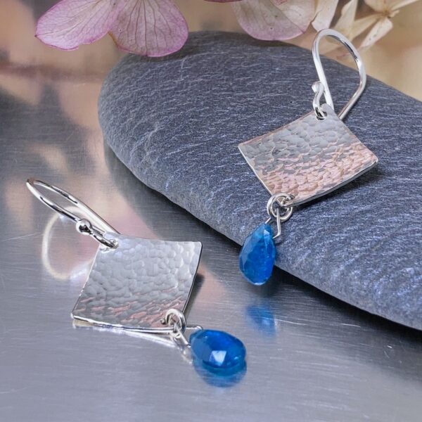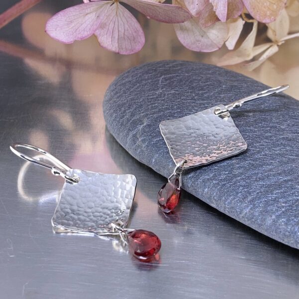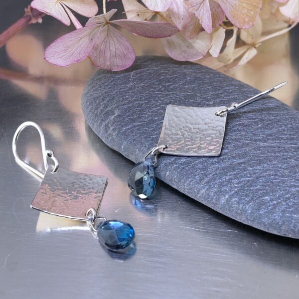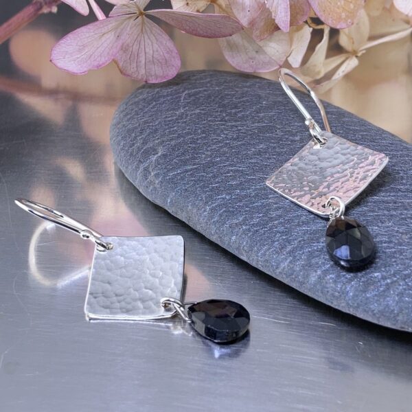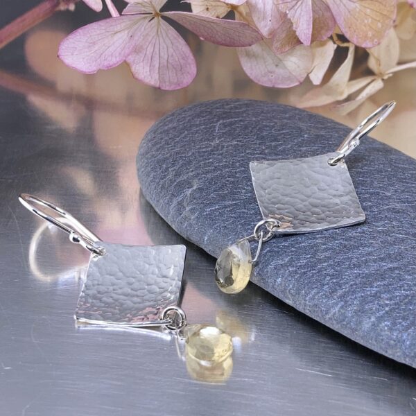 gemstone earrings - hammered diamond - Argentium silver - small - Image 9