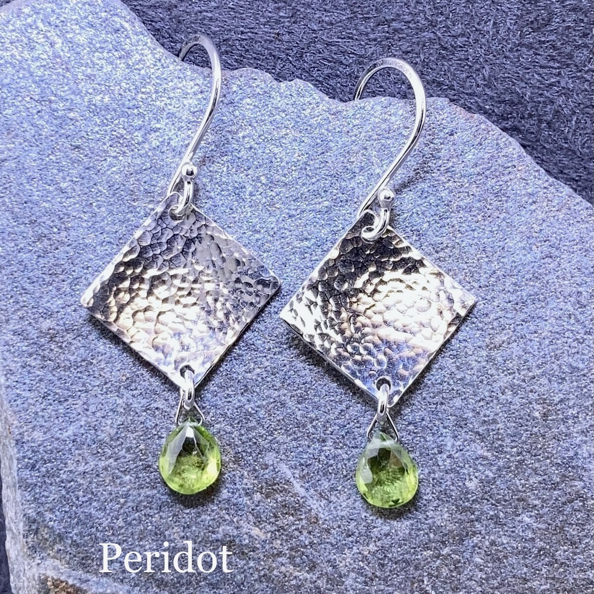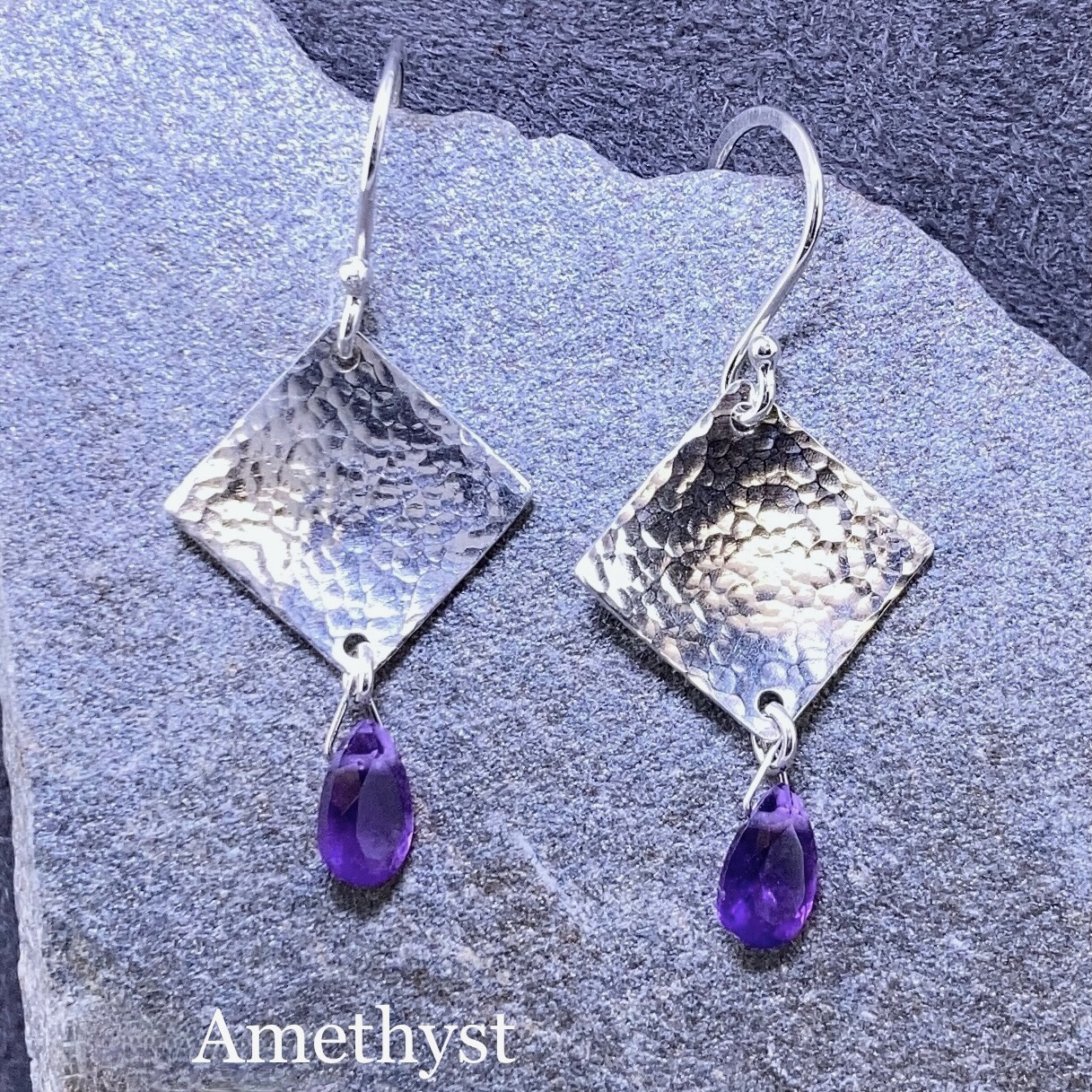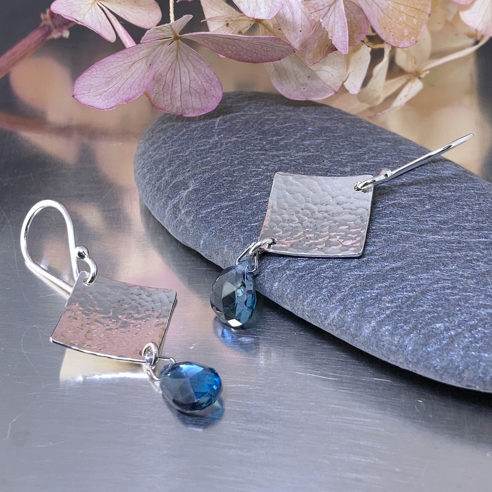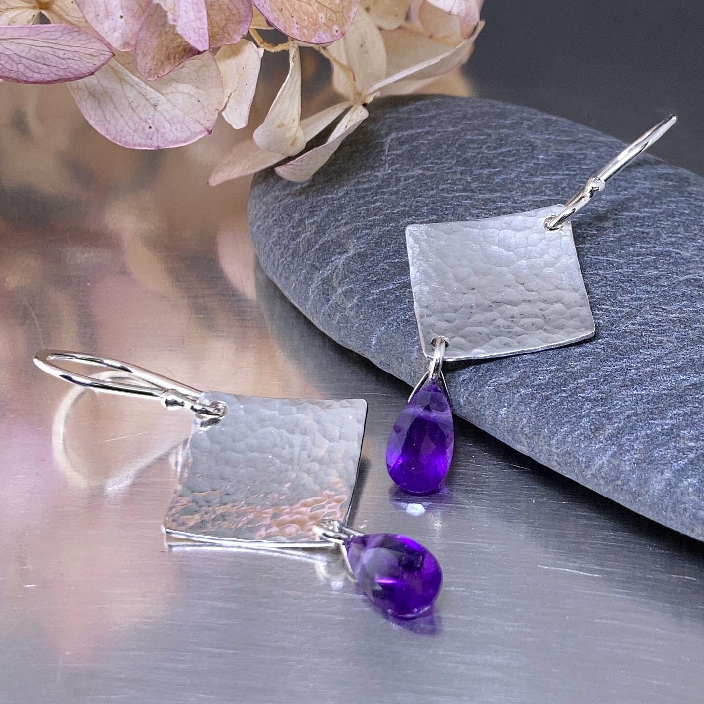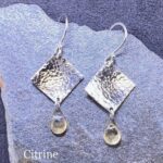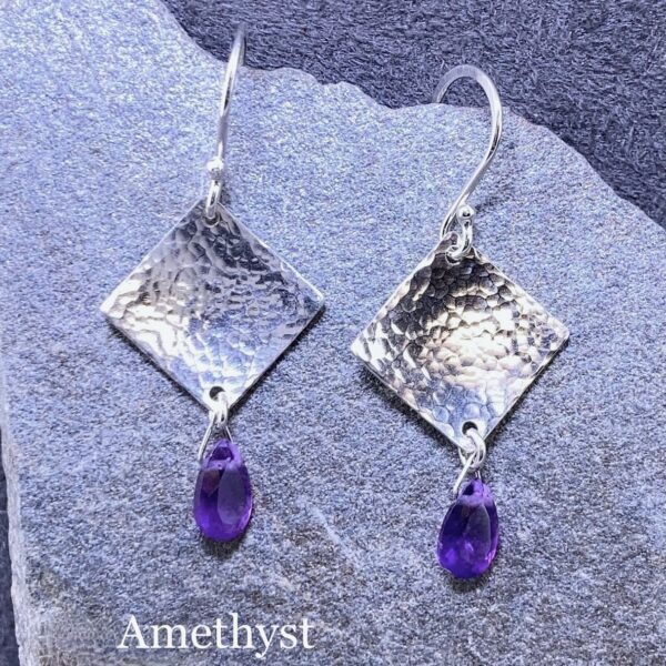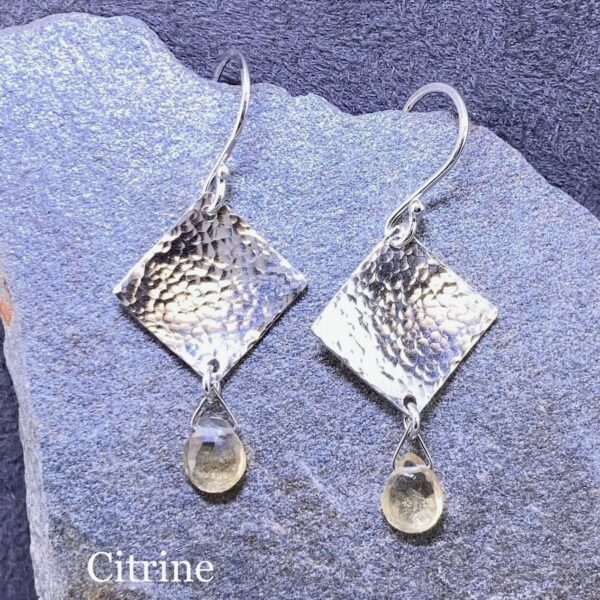 gemstone earrings – hammered diamond – Argentium silver – small