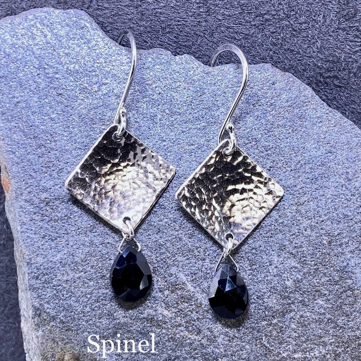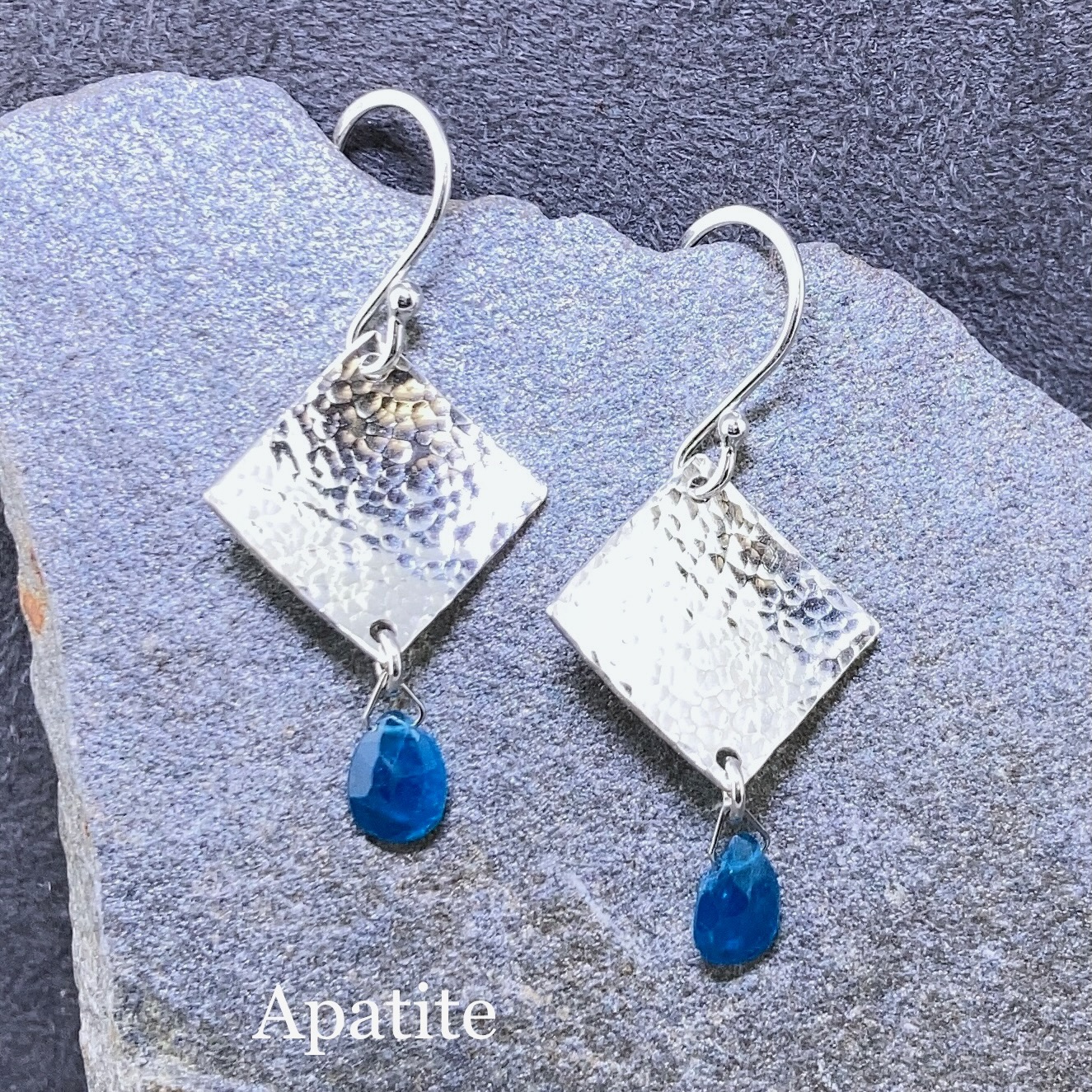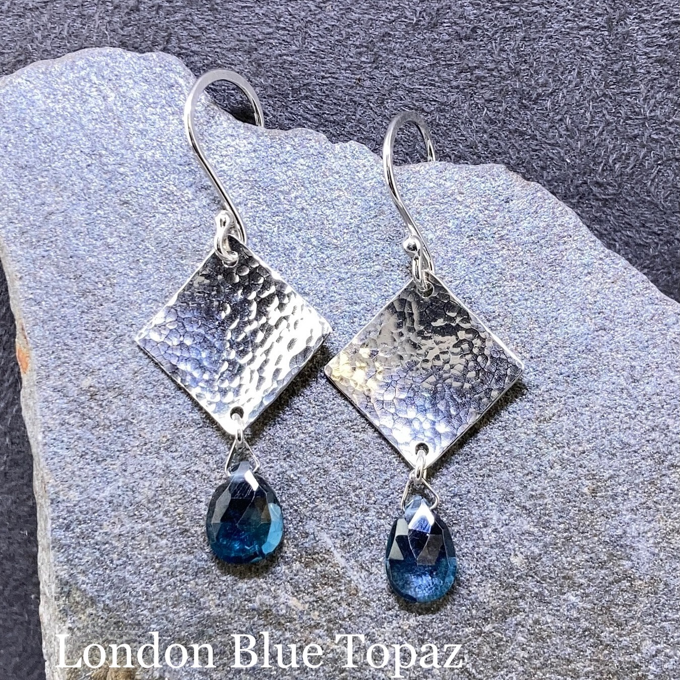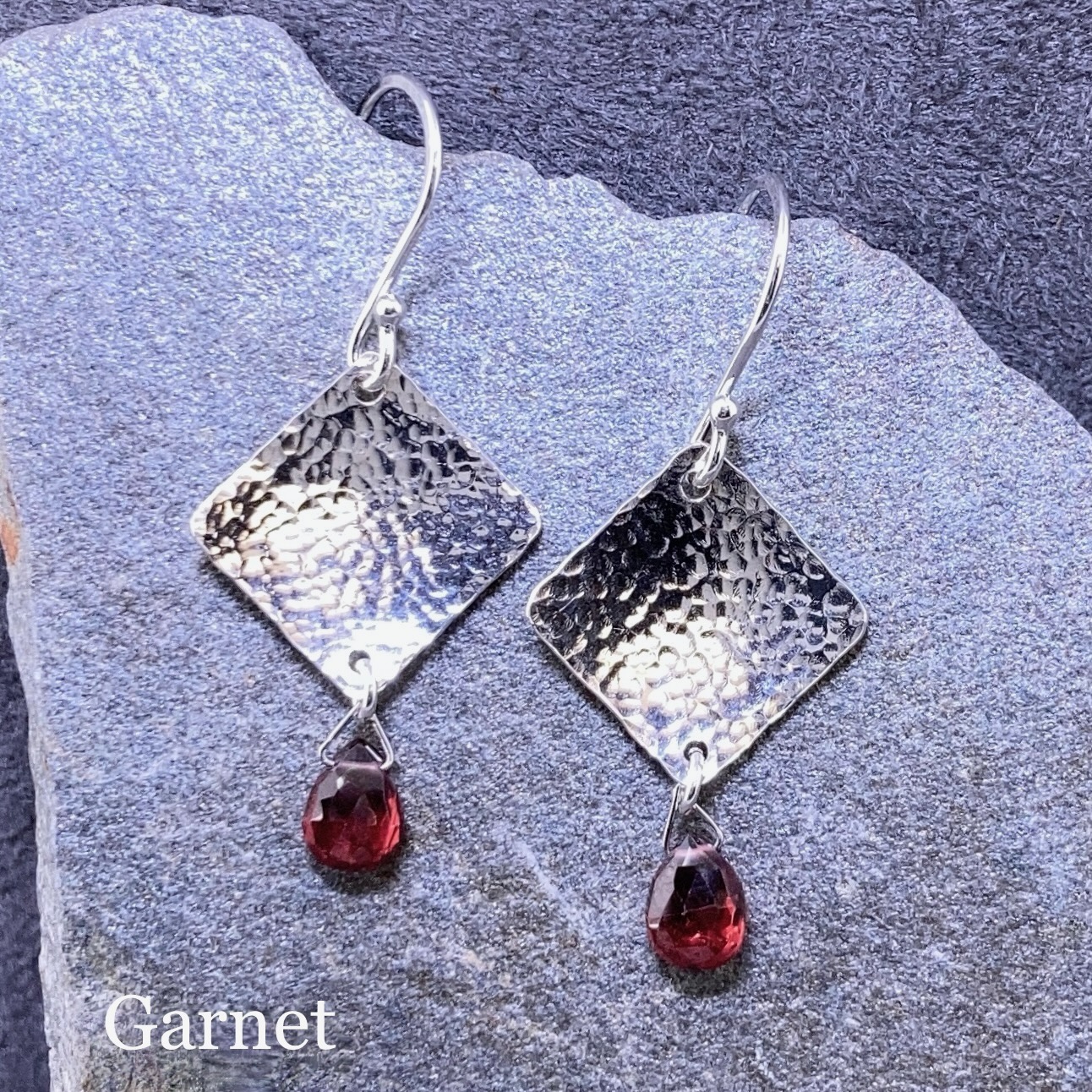 gemstone earrings – hammered diamond – Argentium silver – small