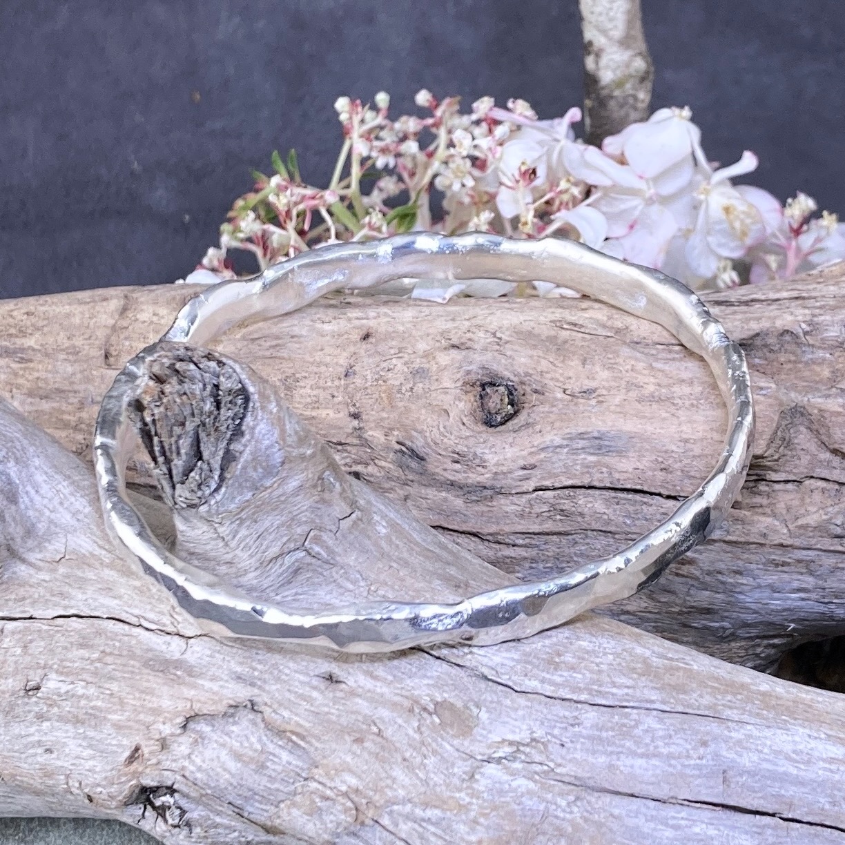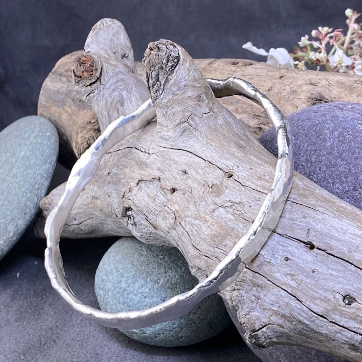 Argentium Silver Hammered Tidal Waves Bangle – Small