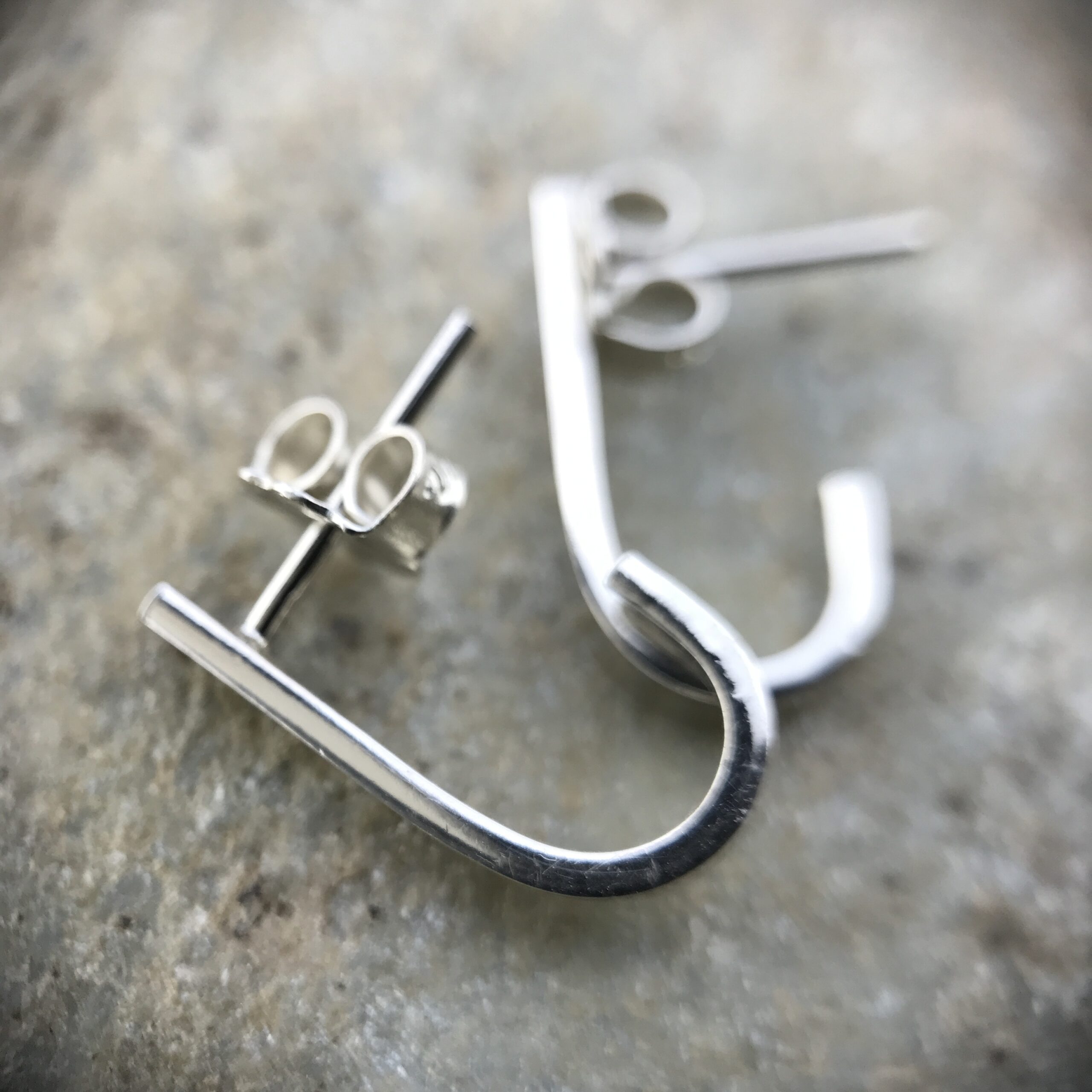 Large J-Hoop post earrings handmade in Argentium silver. Clean, strong, and balanced.