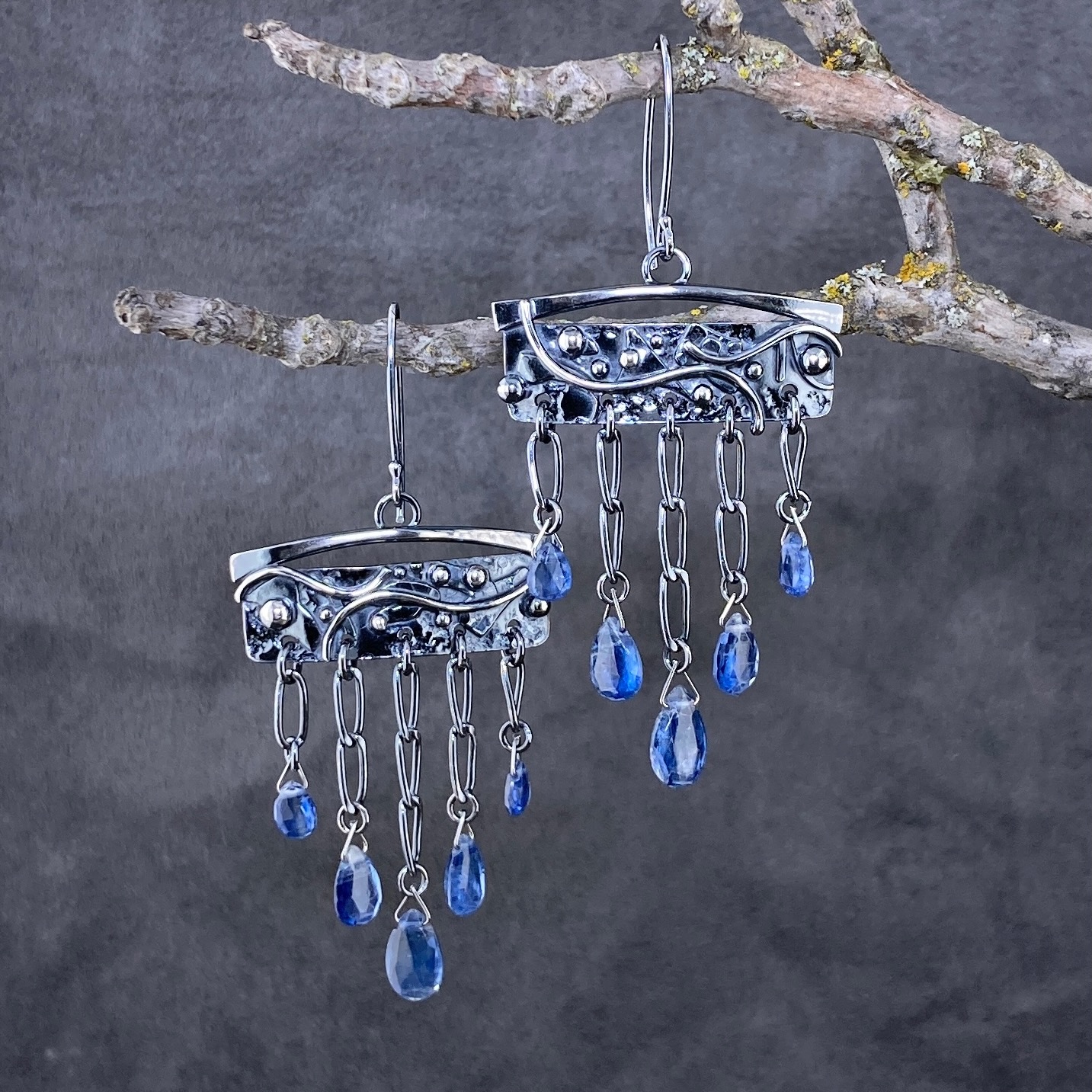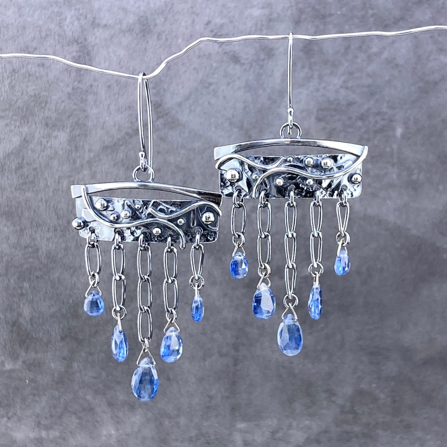kyanite earrings - chandelier - Argentium silver - Image 3