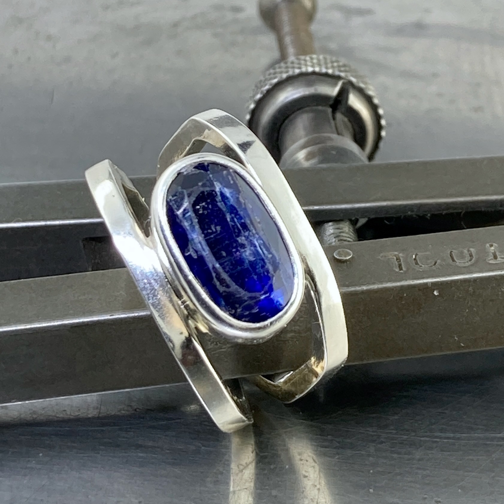 The Kyanite ring blends geometry and grace. The Octagon double band frames a vivid blue gemstone, giving the design strength, balance, and clear structure. Each ring is handmade, and no two are ever the same.