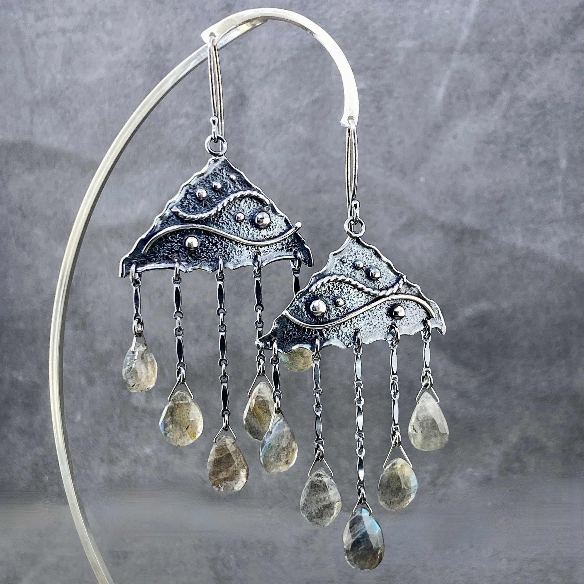 These Argentium silver pieces have been textured, edges rolled, waves and granules soldered on, dapped, polished, work hardened and baked.