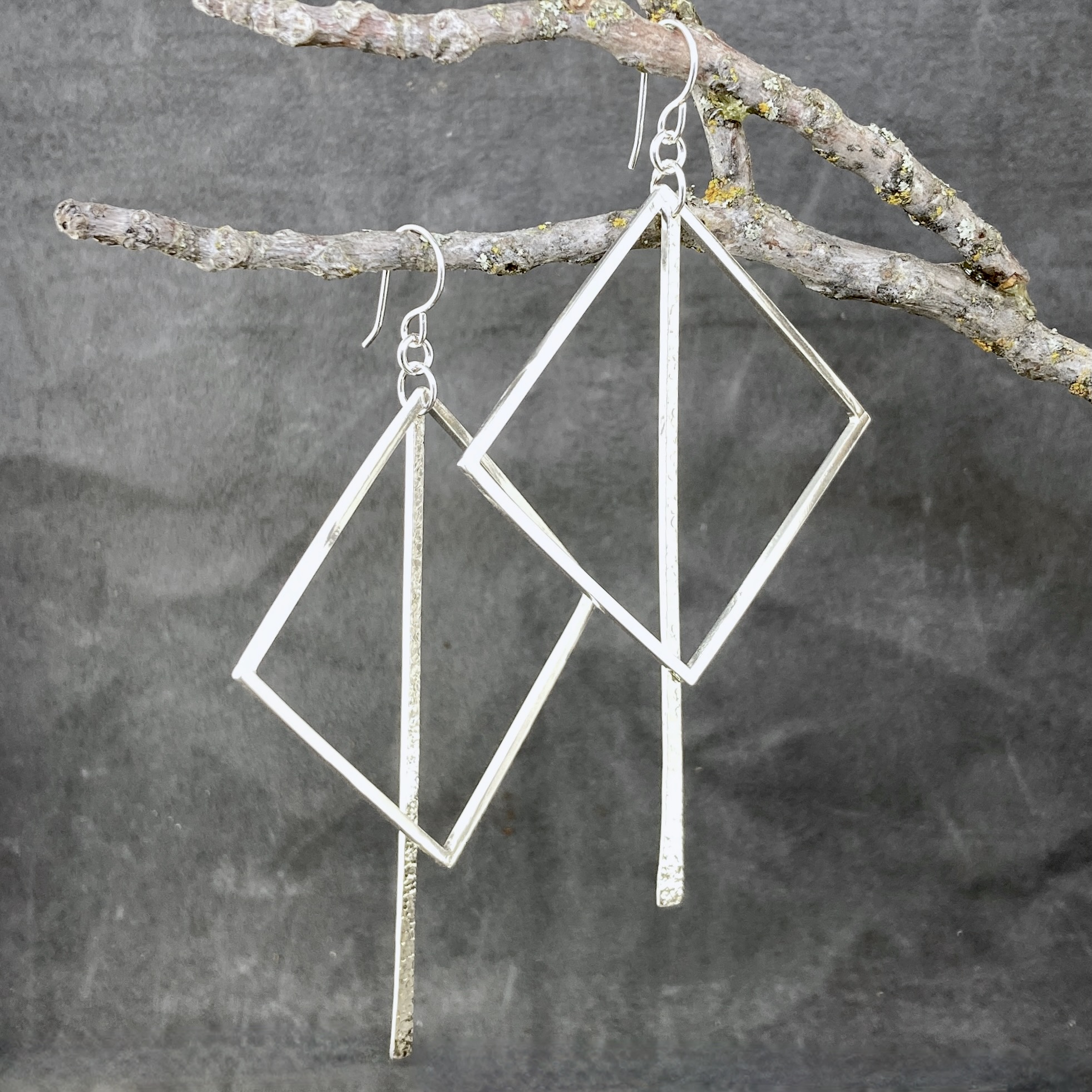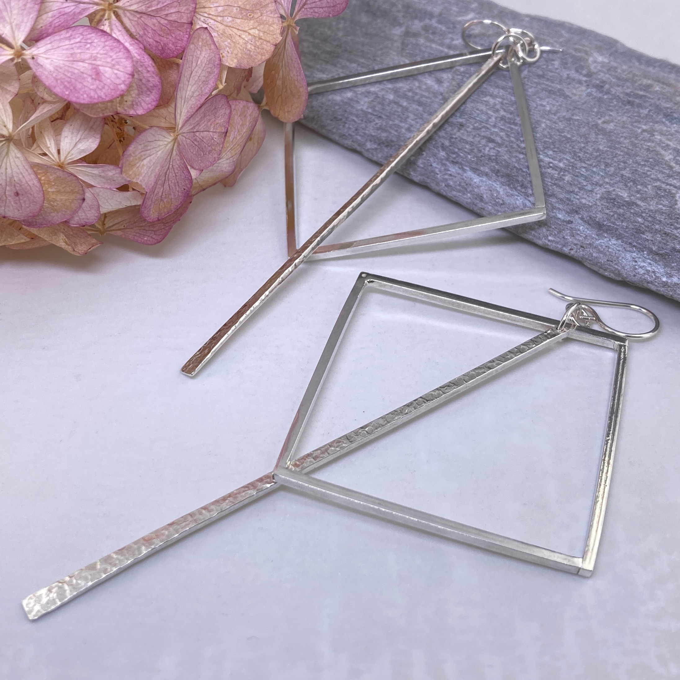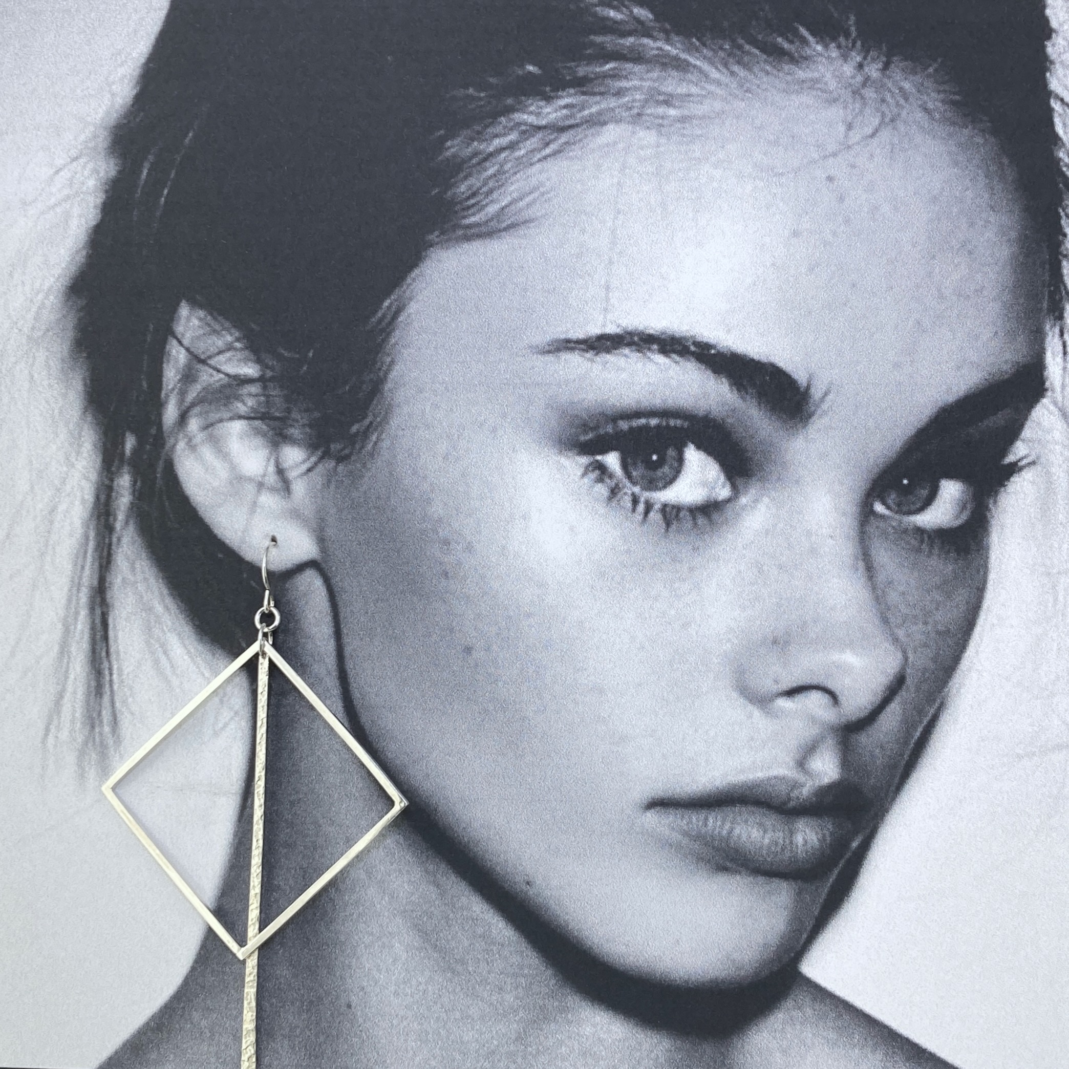 A very long earring at 10.4 cm long by 5.9 cm wide. The weight is 13.5 grams.
