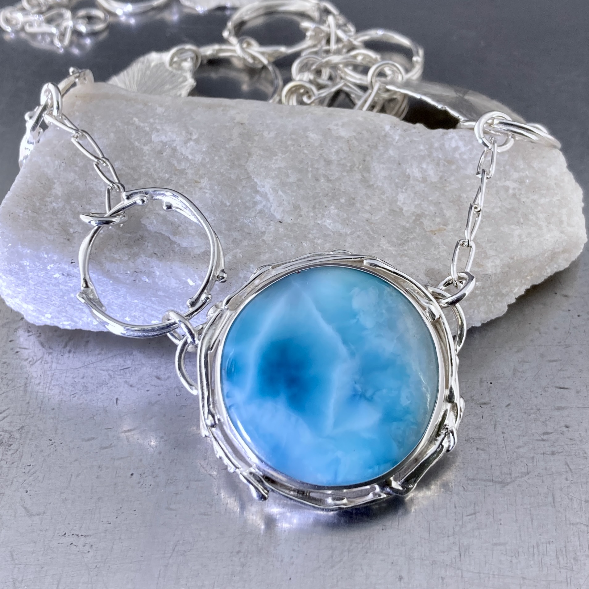 Larimar Necklace – Freeform Circle and Suns – Argentium Silver - Image 6
