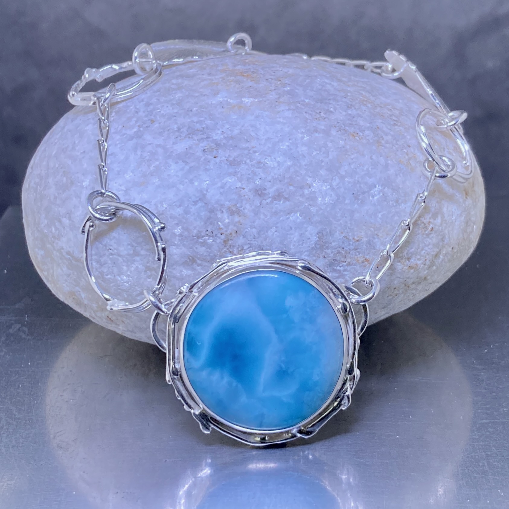 Larimar Necklace – Freeform Circle and Suns – Argentium Silver - Image 7