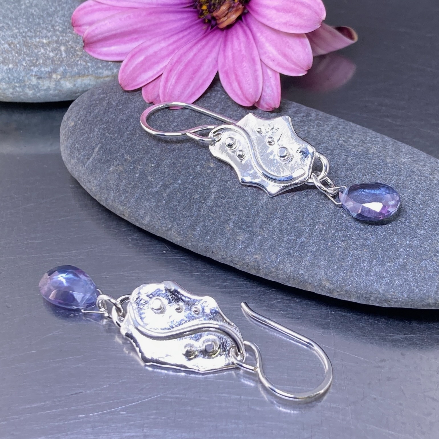 lavender topaz earrings - small oval waves - Argentium silver - Image 2