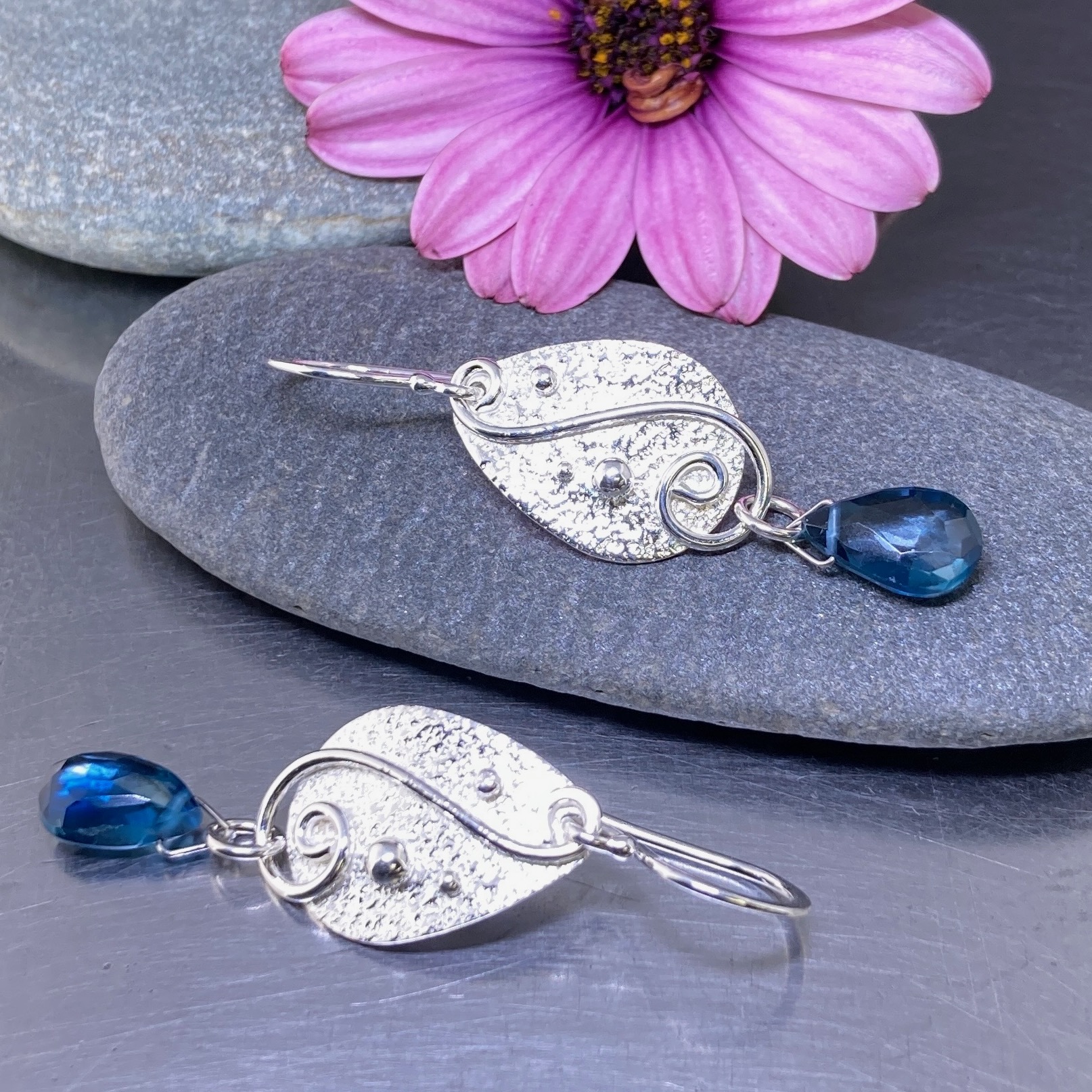 London blue topaz earrings - teardrop waves - Argentium silver - Image 2