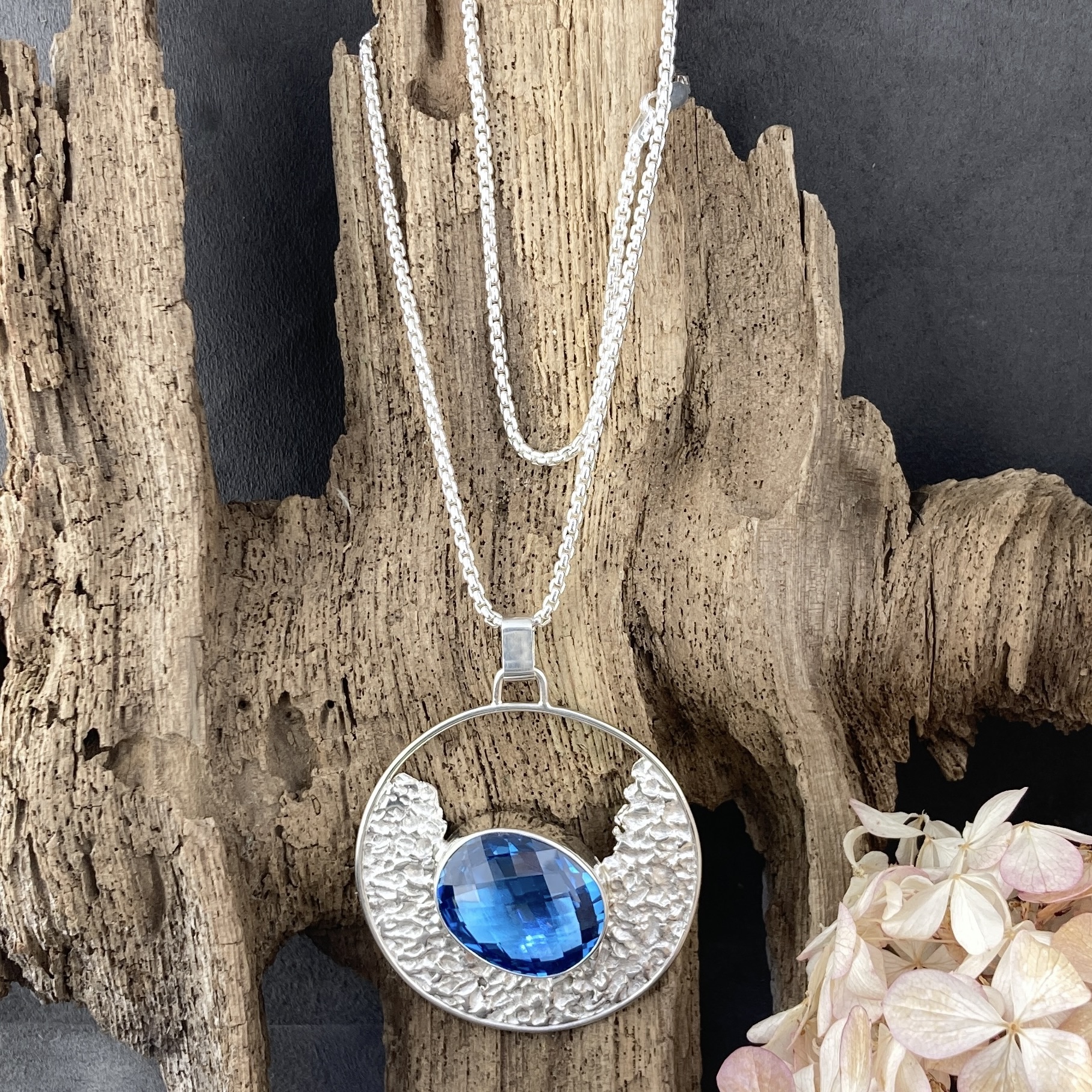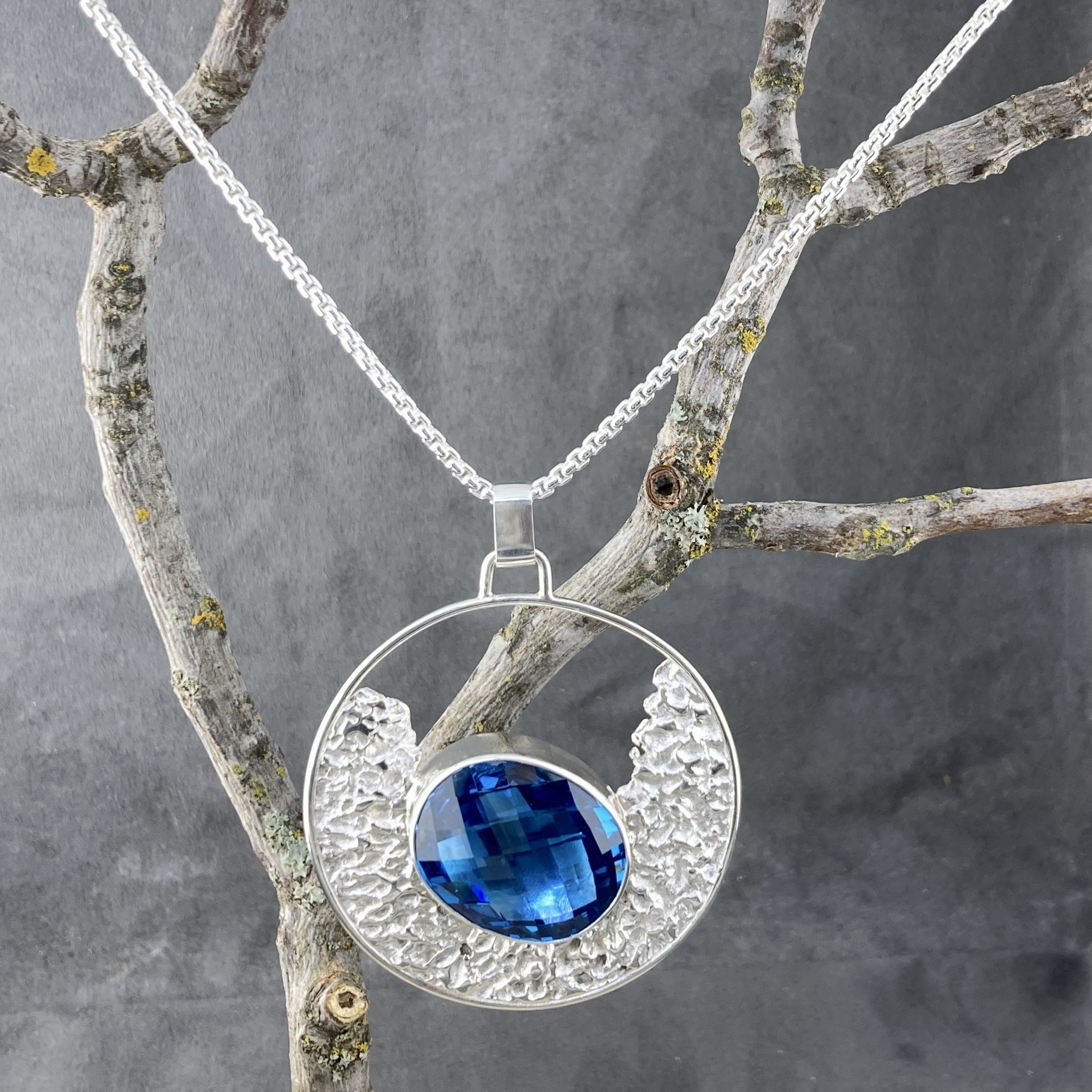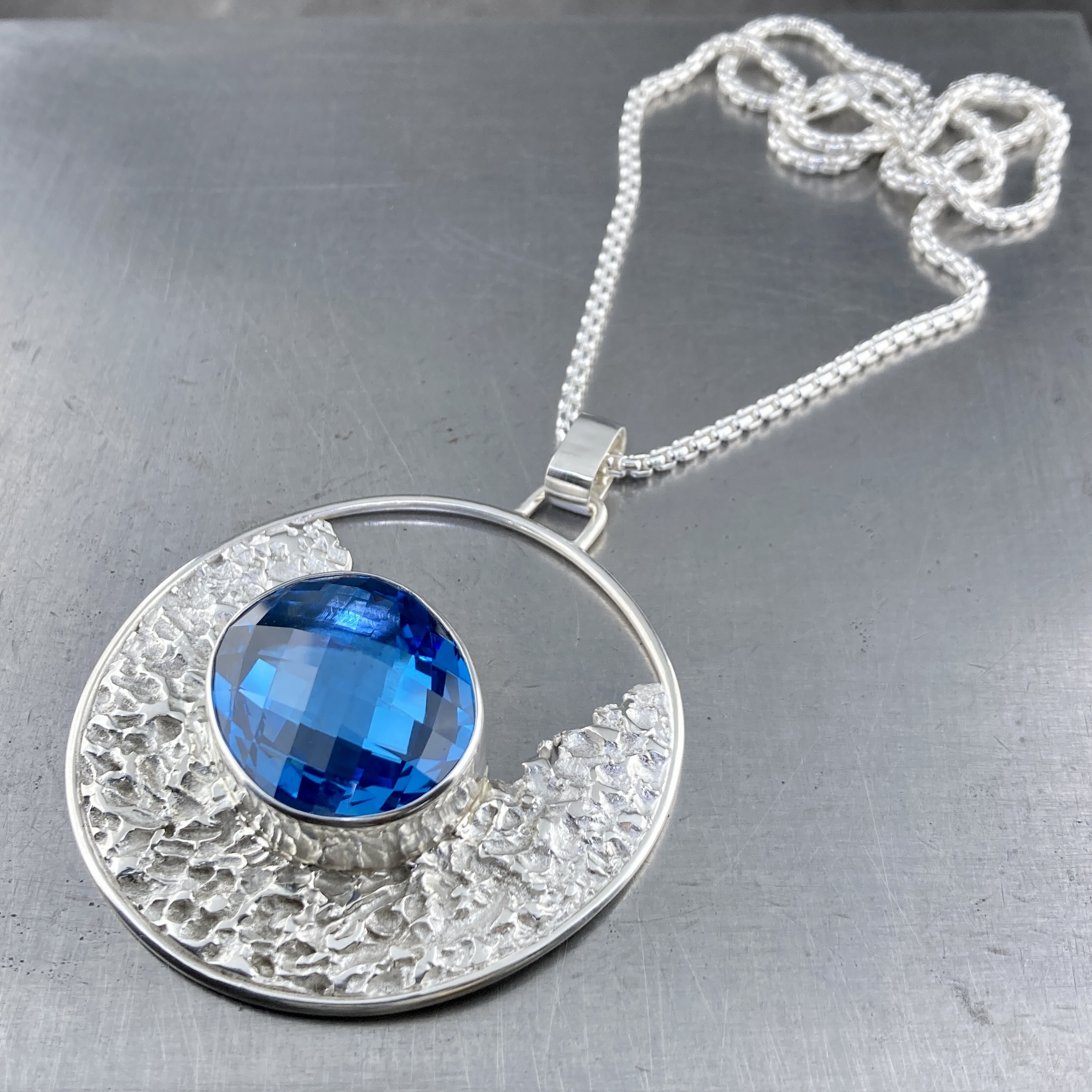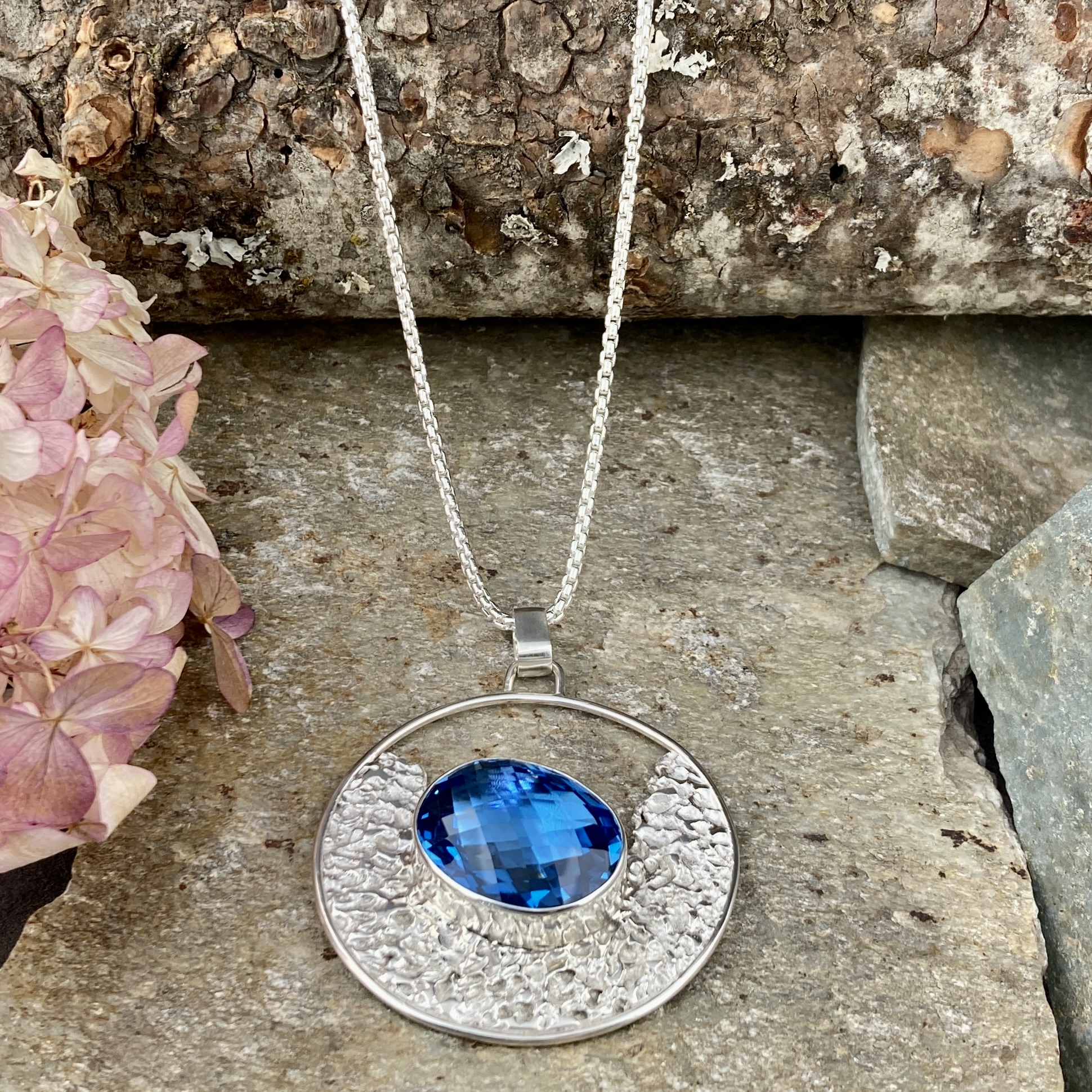 London blue topaz pendant – Argentium silver lunar moon – 32 carat