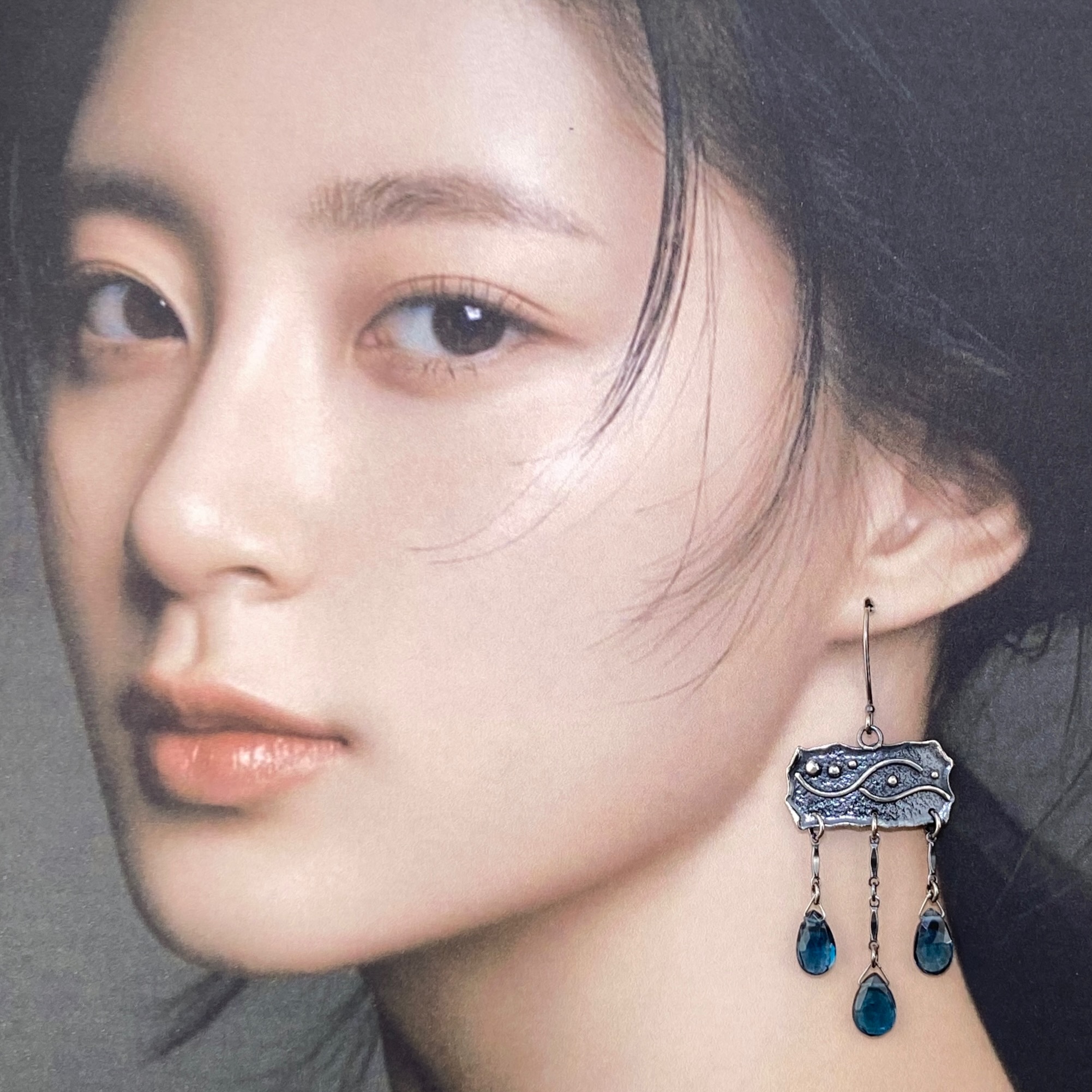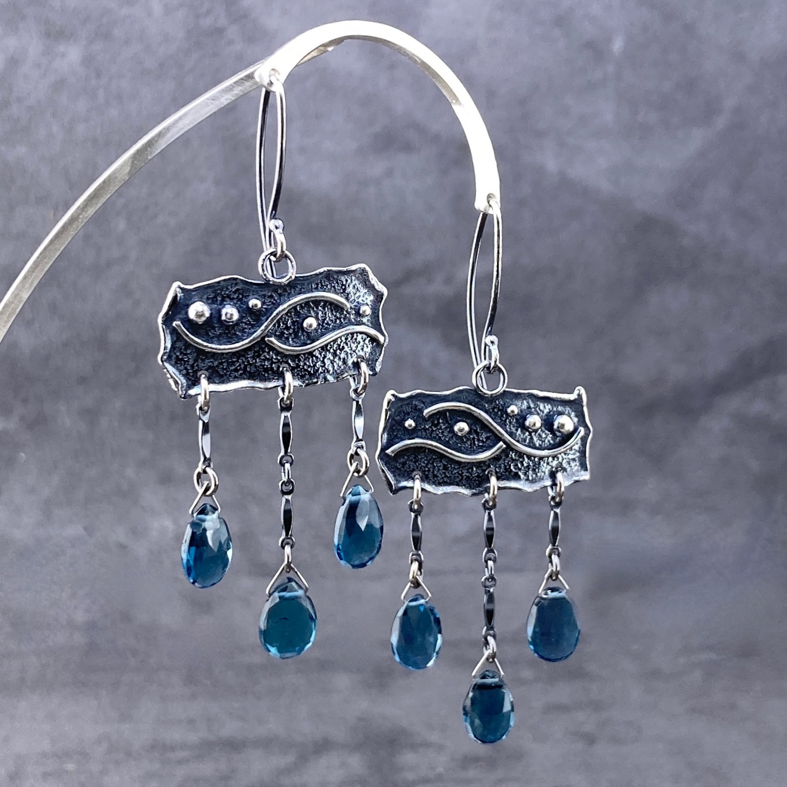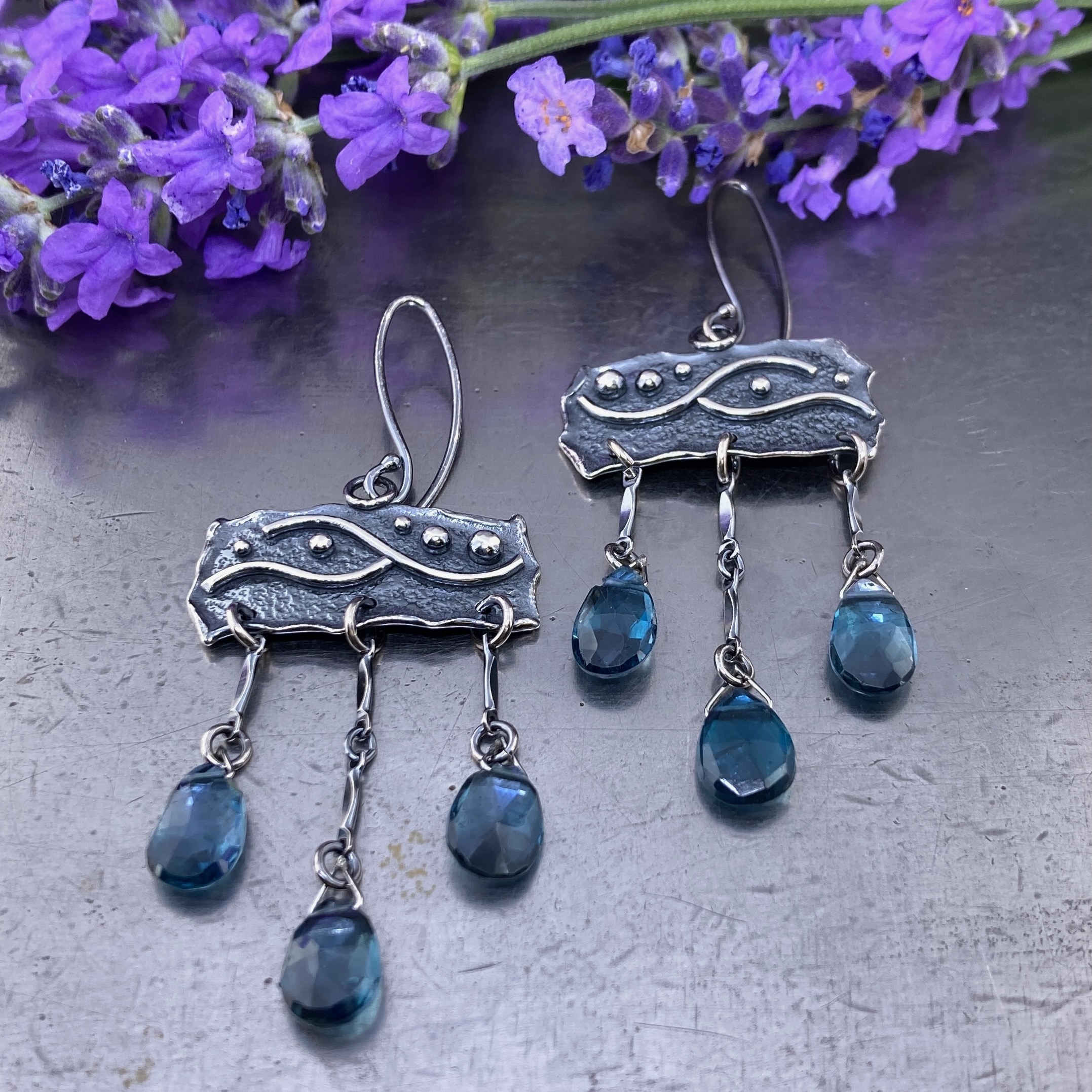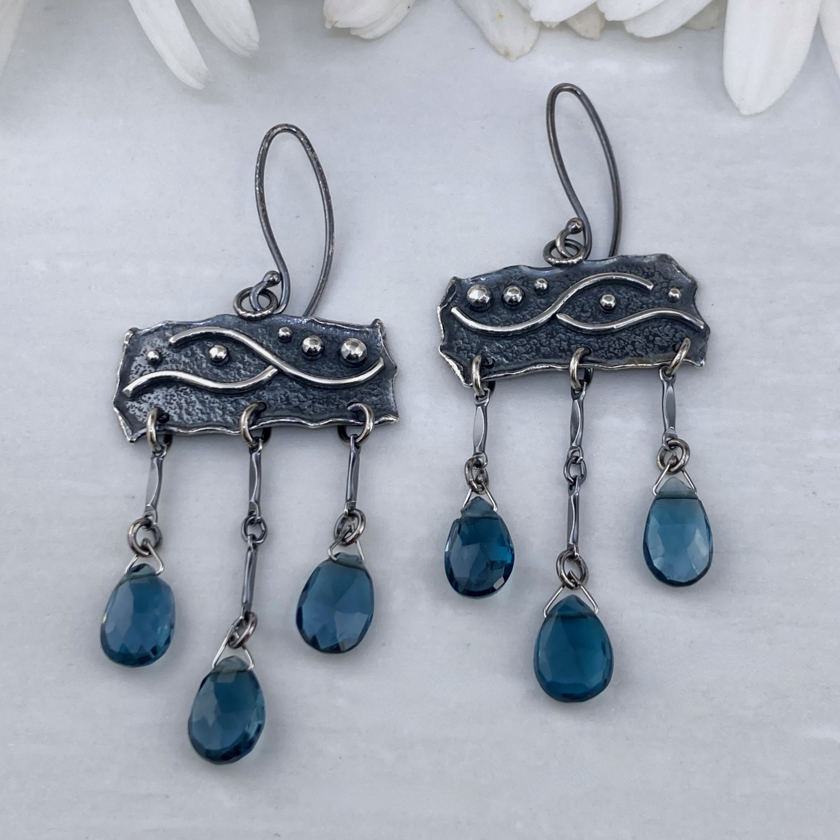 London blue topaz earrings – chandelier – Argentium silver