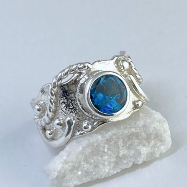 • London Blue Topaz Ring – Size 7 – Argentium Silver Water Design – 2 Carat
