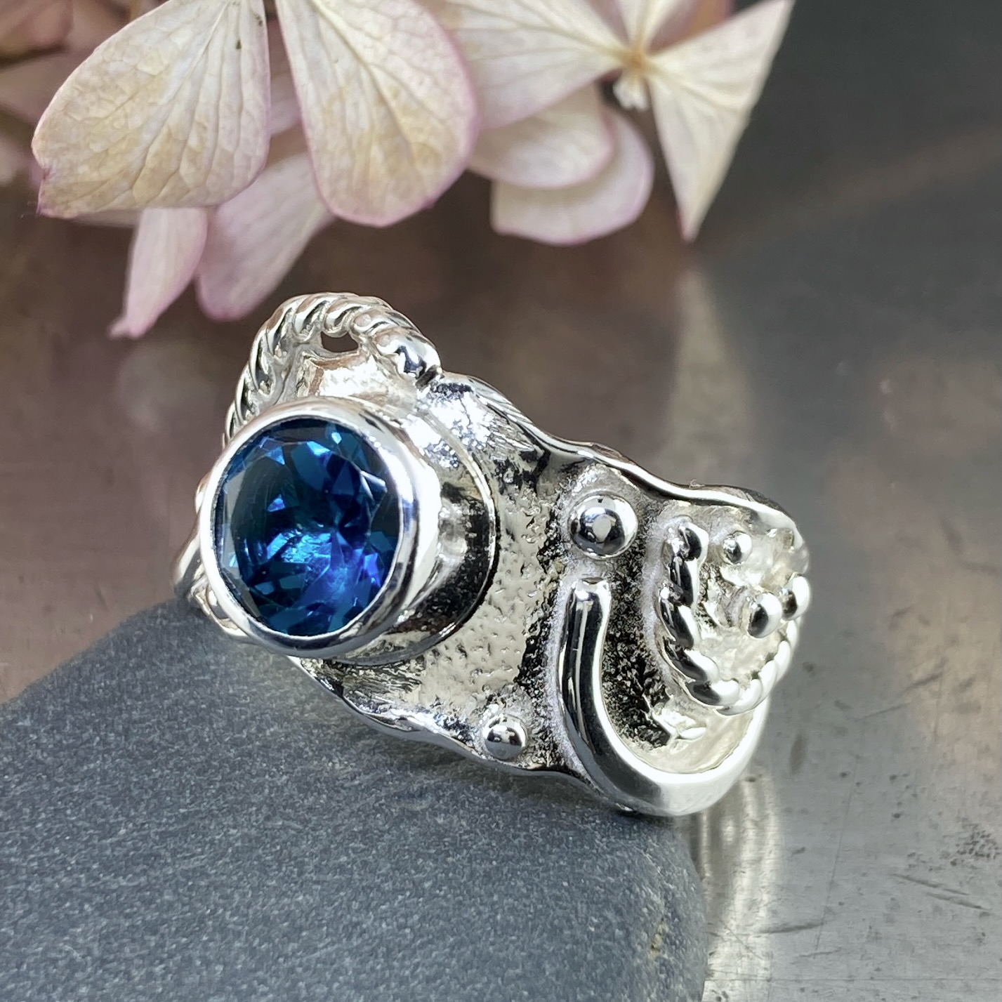 London Blue Topaz Argentium Silver Ring glows with the deep tones of the ocean