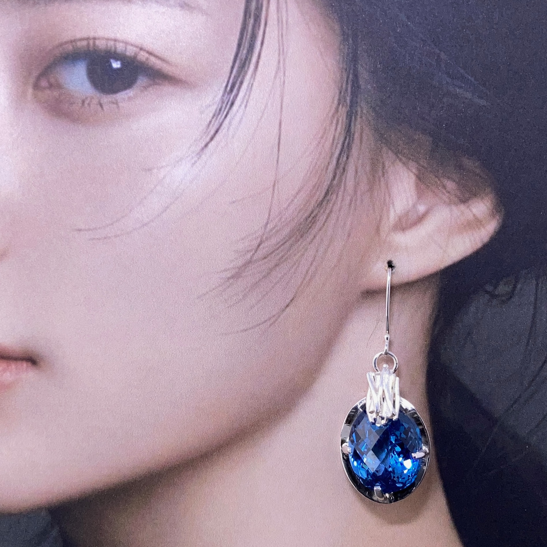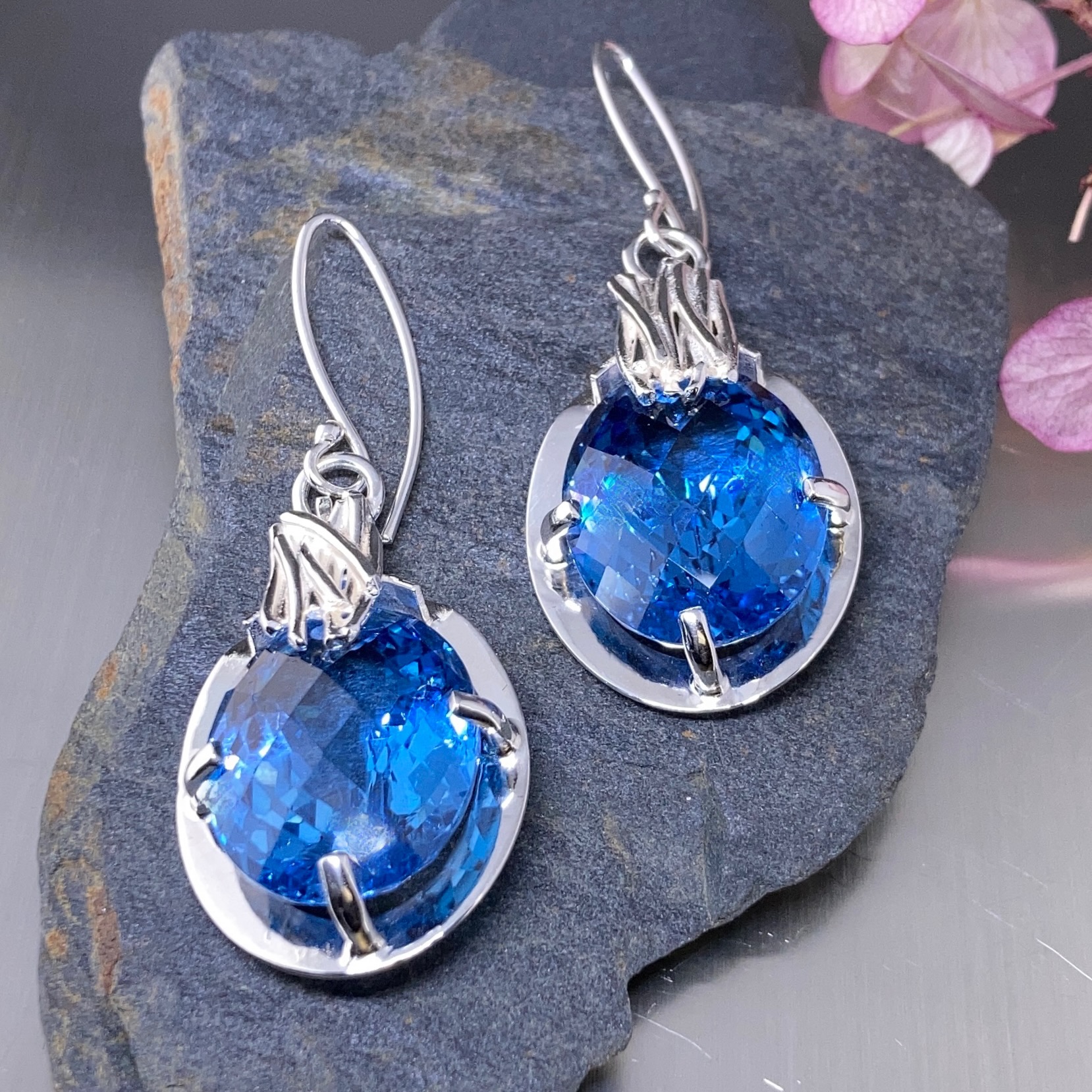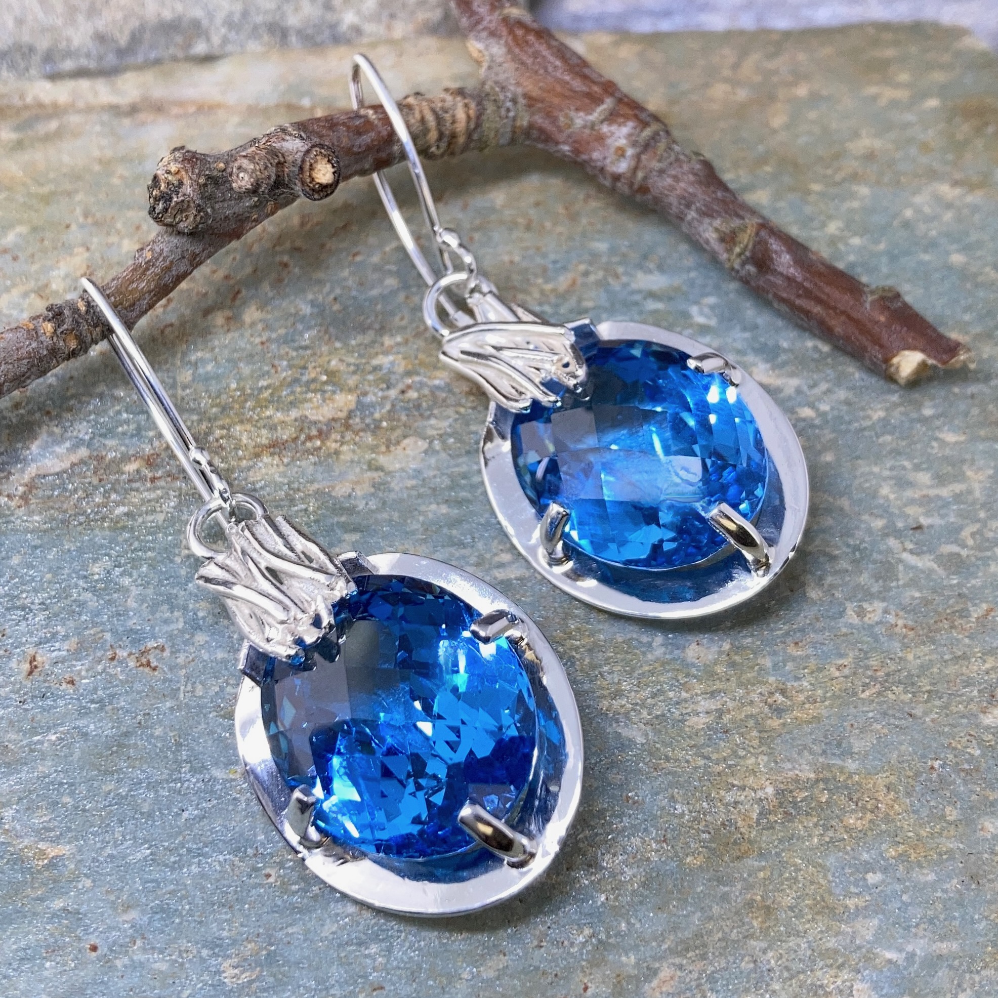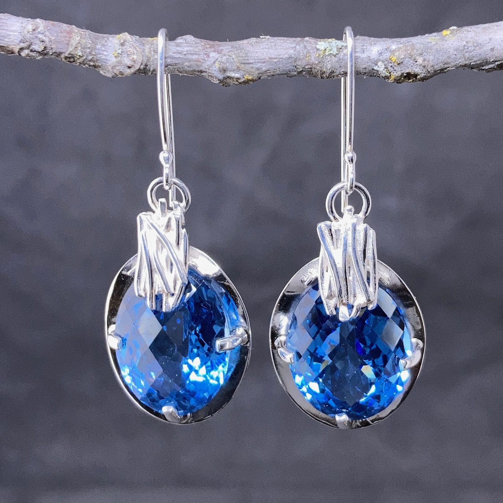 London blue topaz earrings – twigs – Argentium silver – 43 carat
