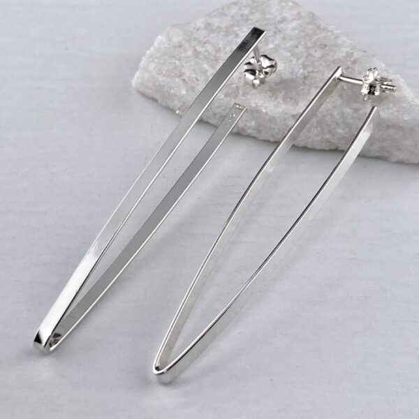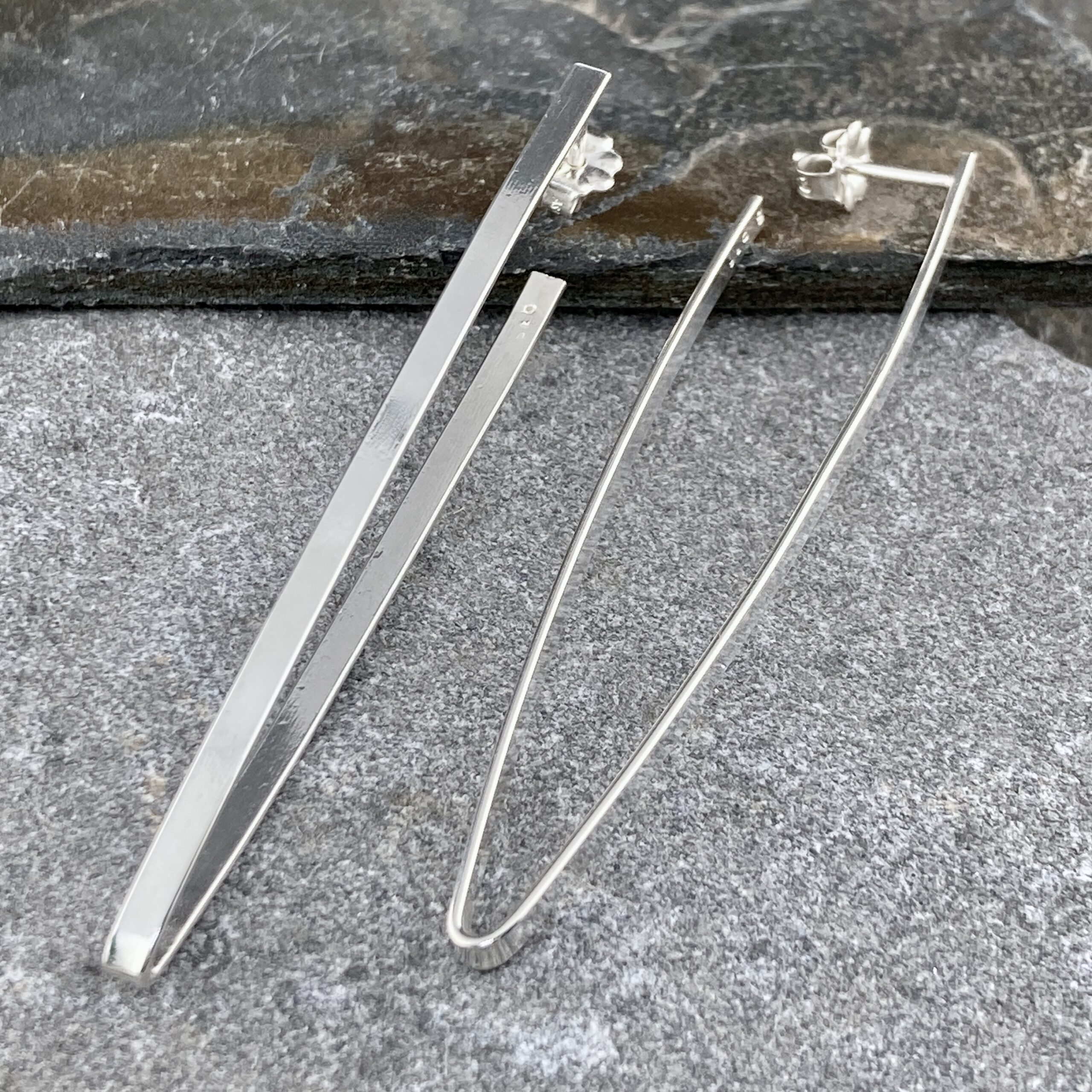 long v hoop – post – large. Â Argentium silver V shape hoop earring. Â Handmade with traditional silversmithing techniques.