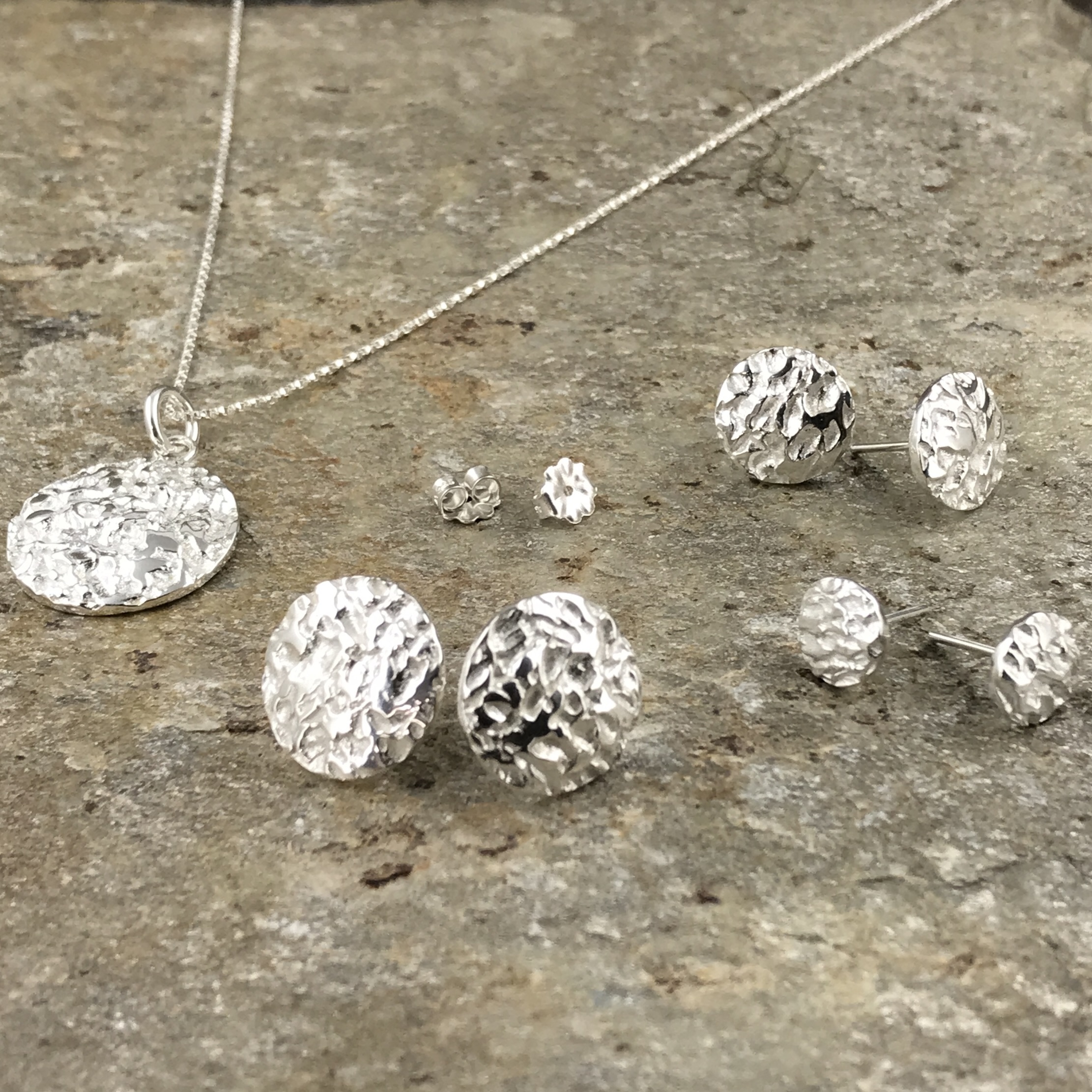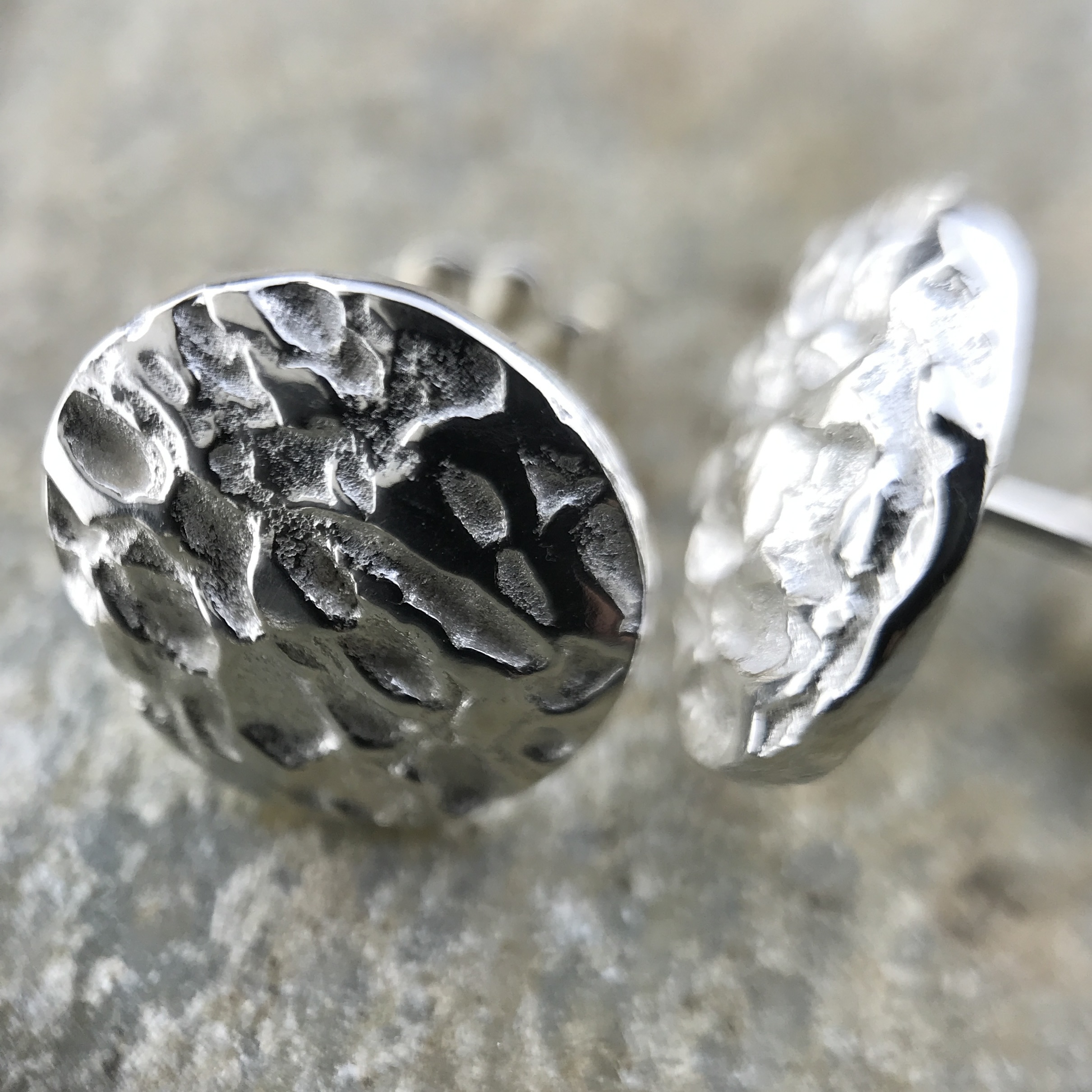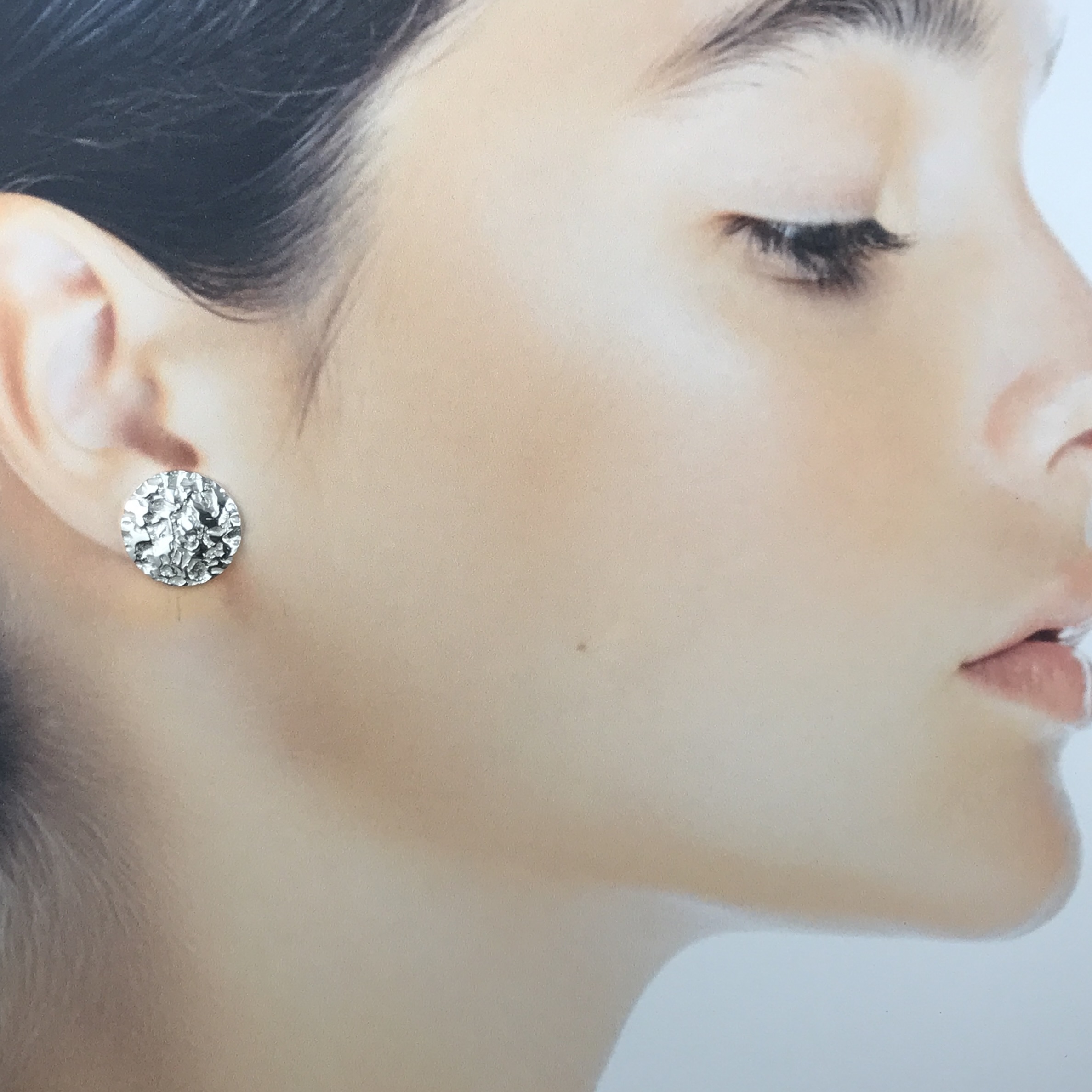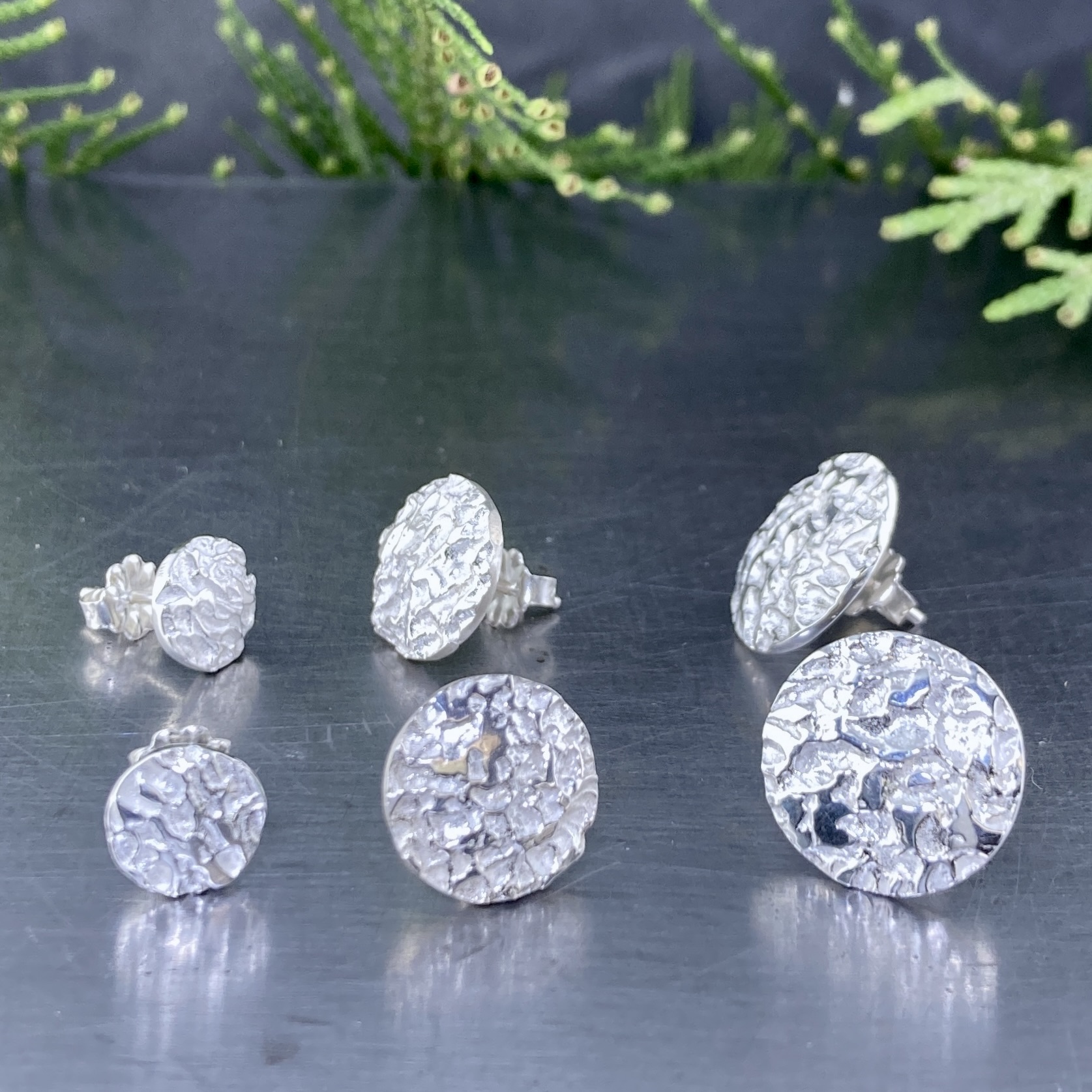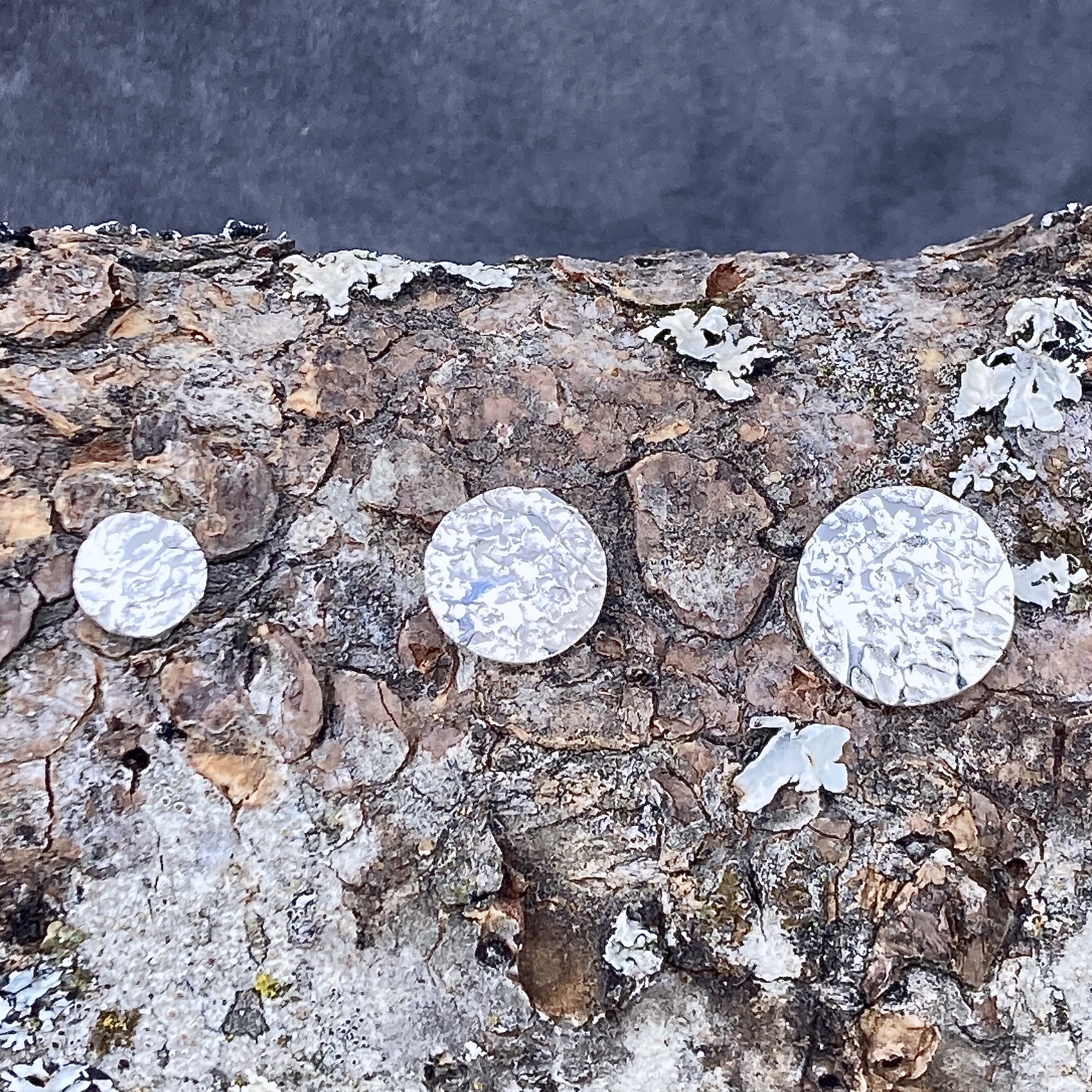 Argentium silver melted and manipulated to look like the surface of the Moon. Three sizes available – all post earrings.