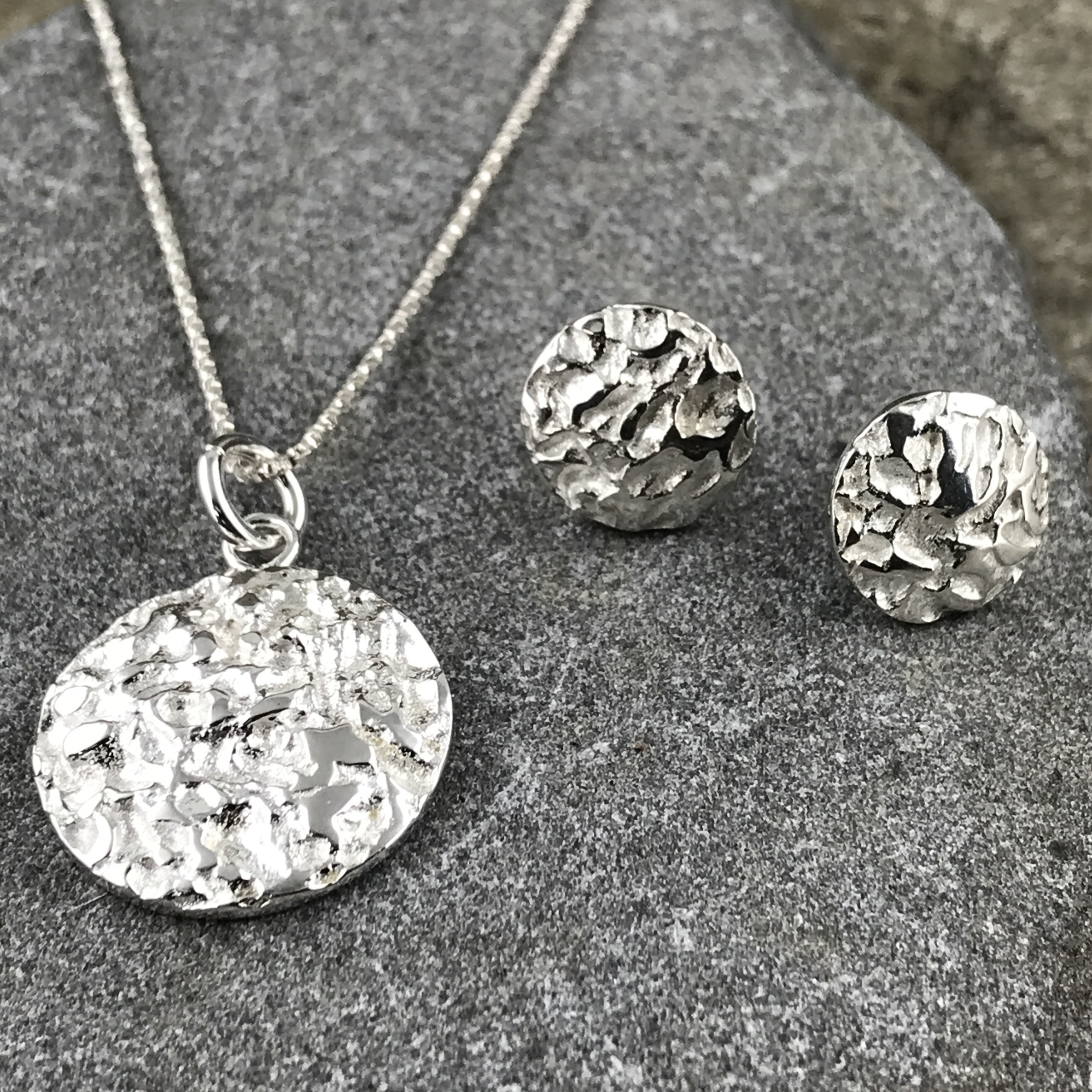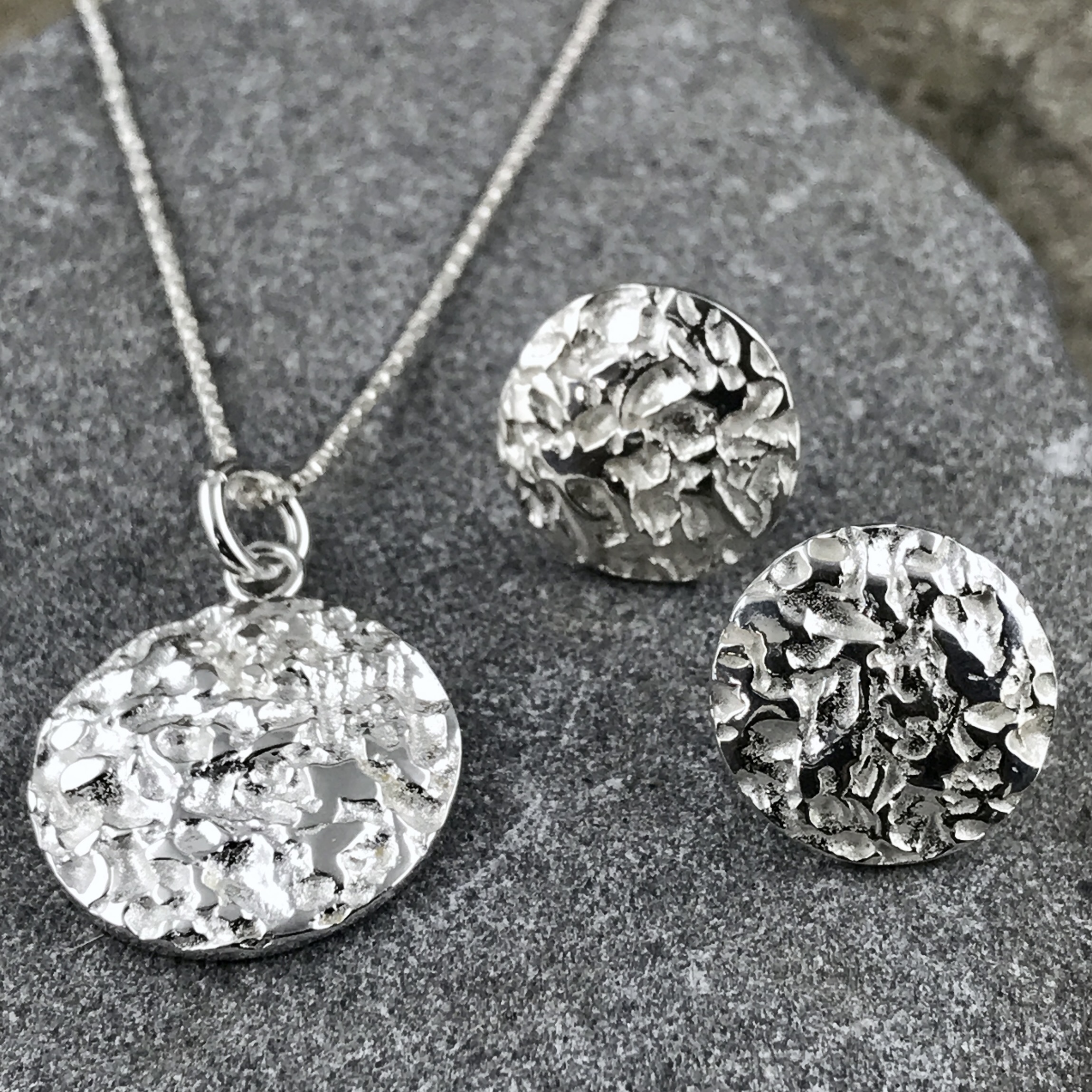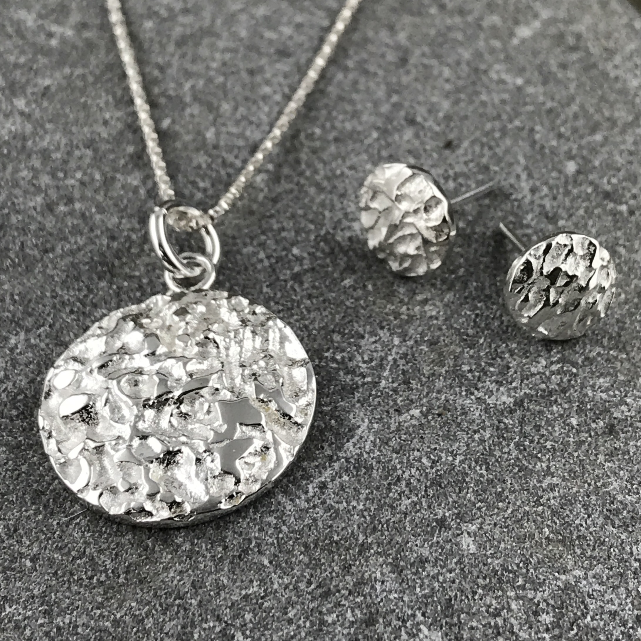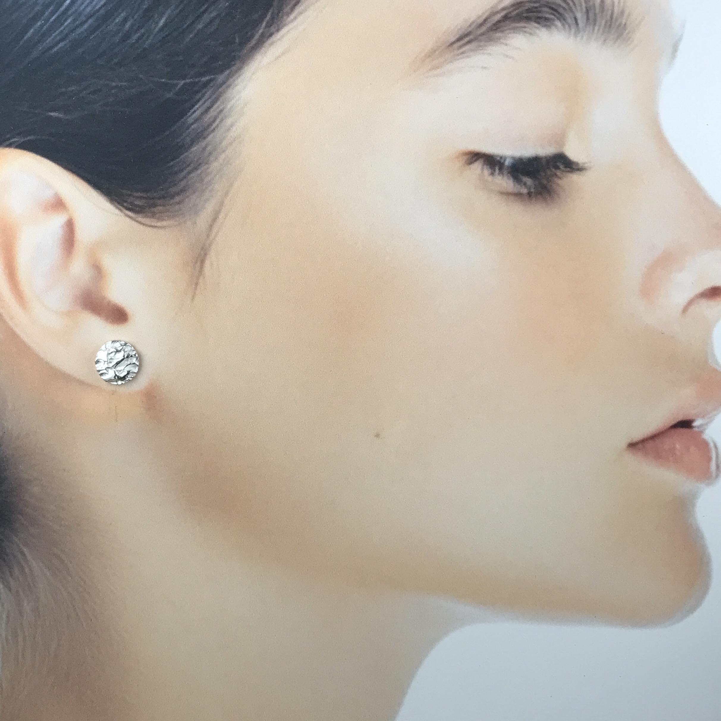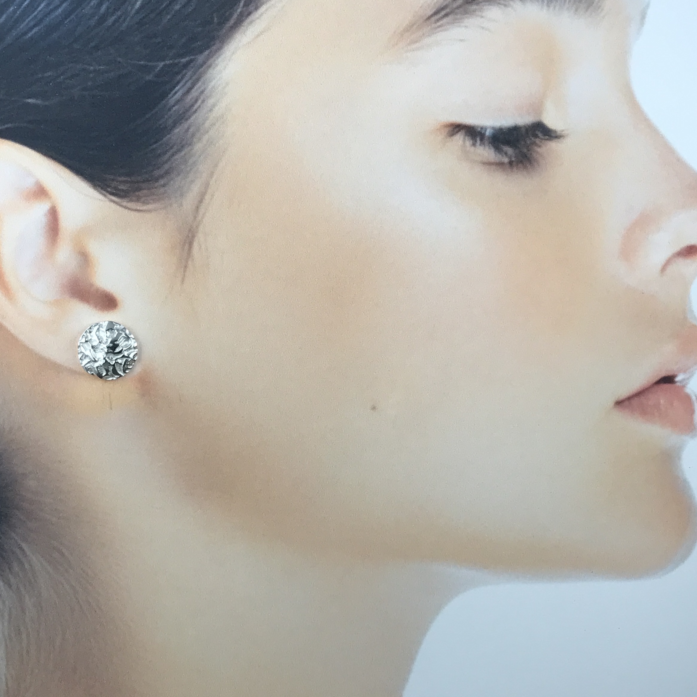 Argentium silver melted and manipulated to look like the surface of the Moon. Three sizes available – all post earrings.