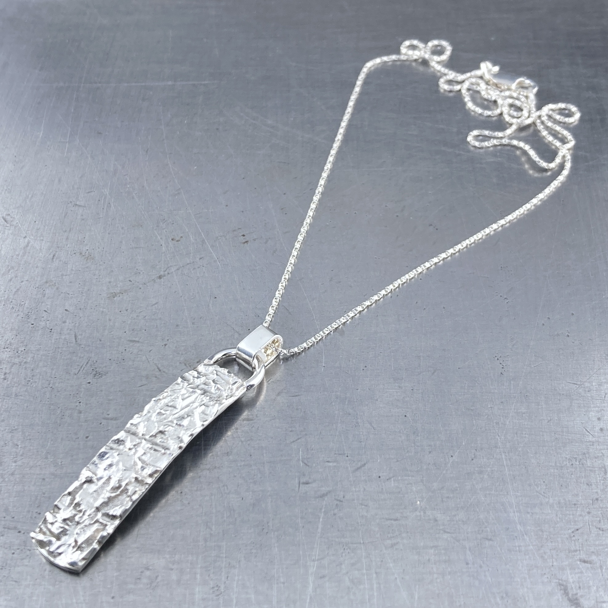 Included with the pendant is an 18″ Sterling Silver Twisted box chain