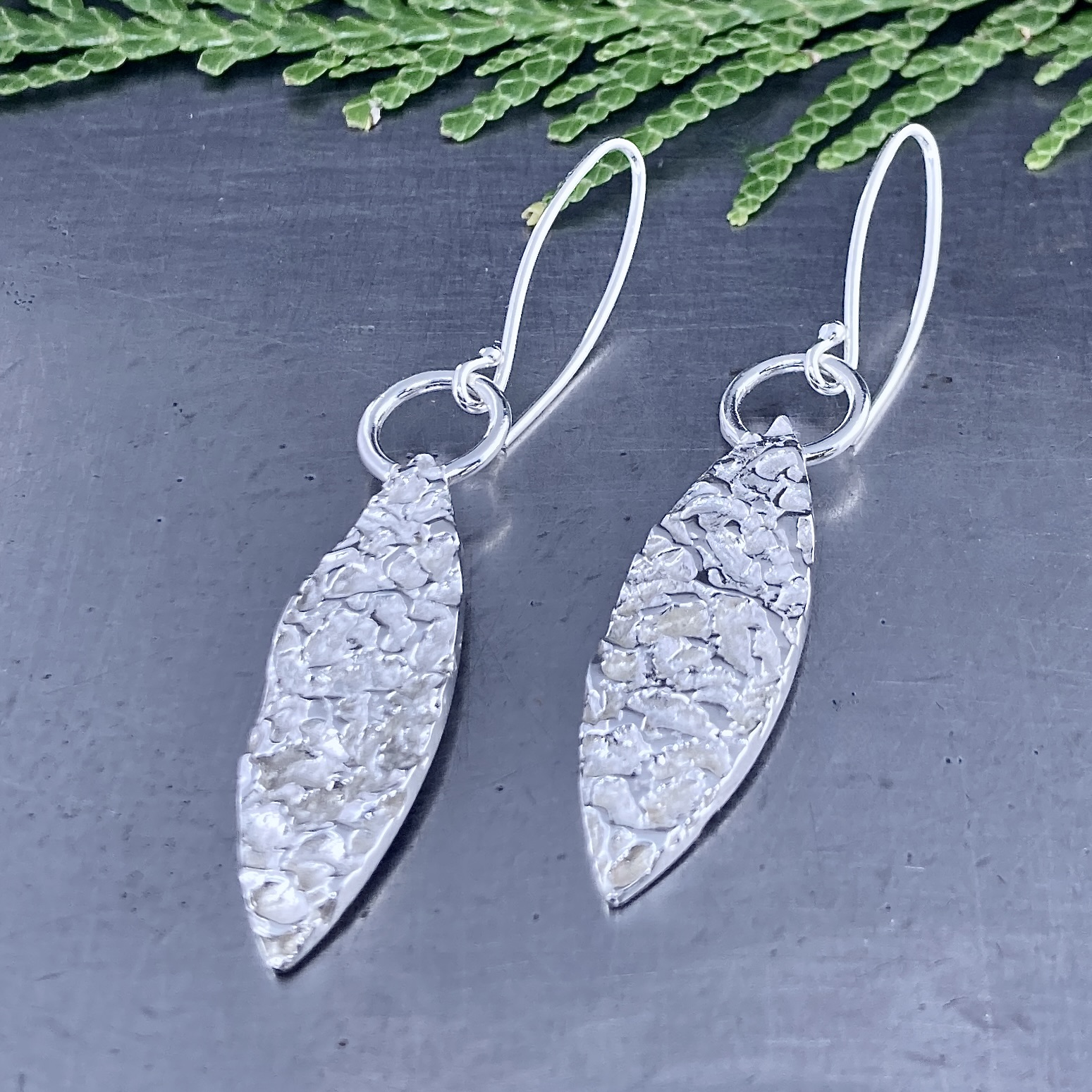 Earrings are 5.4 cm long by 1.1 cm wide. The weight is 6.9 grams.