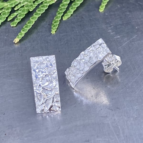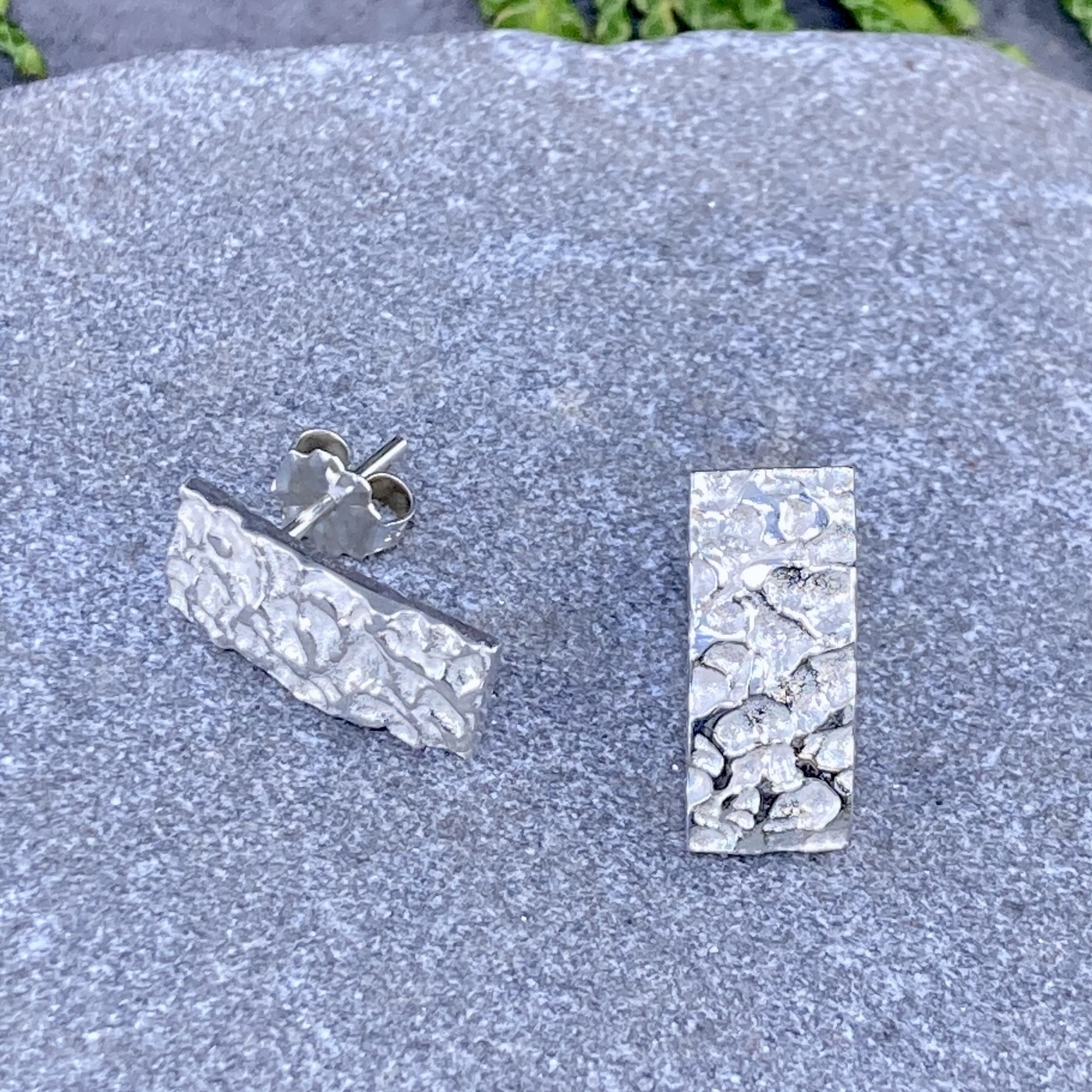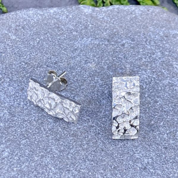 lunar rectangle – post.  Argentium silver made to look like the surface of the moon.  Entirely nickel free.
