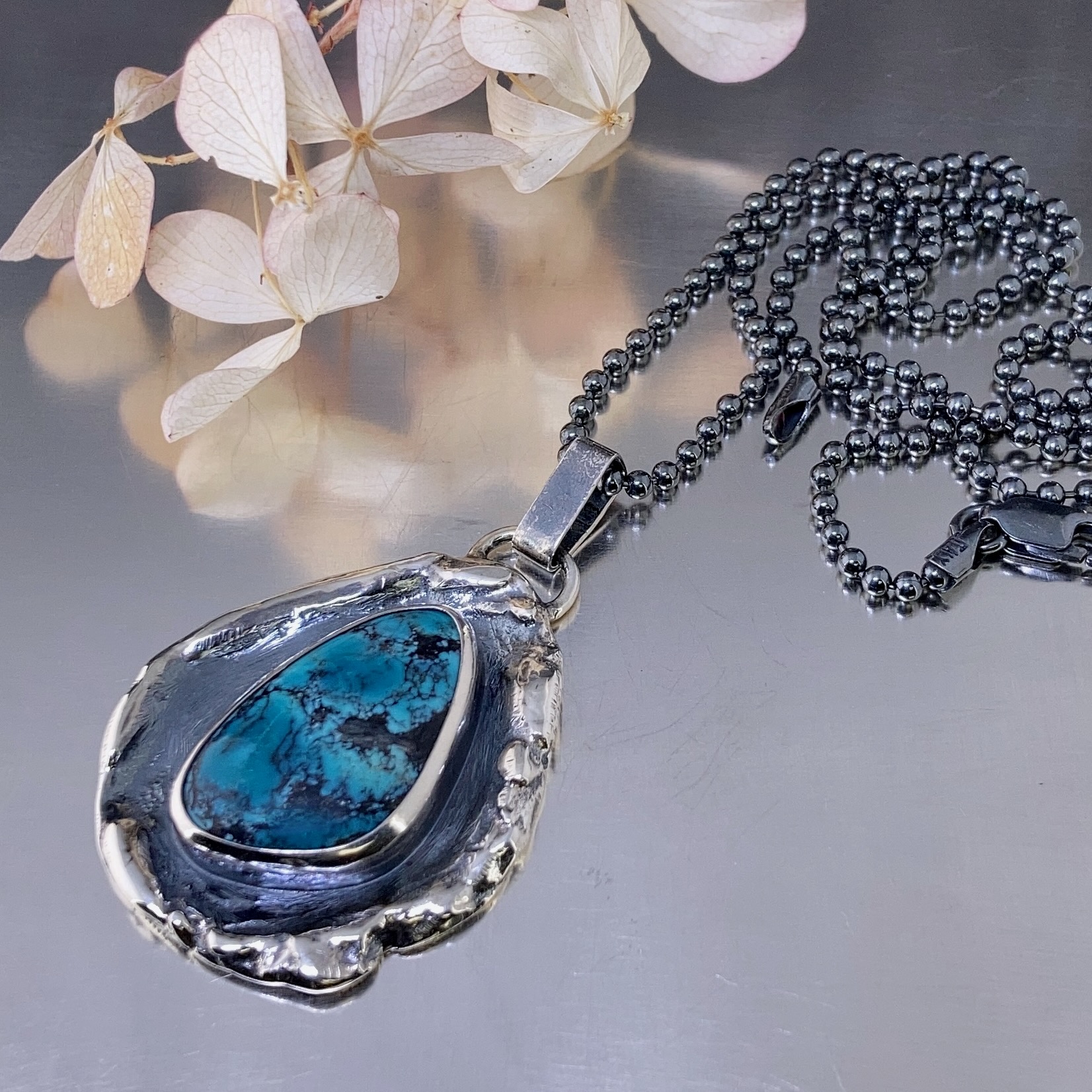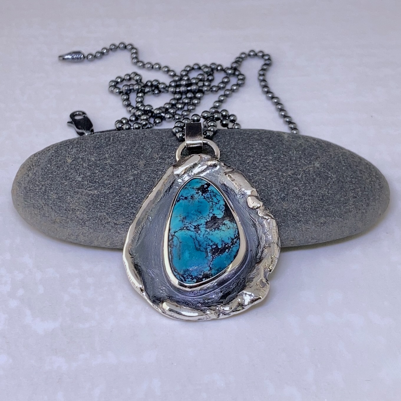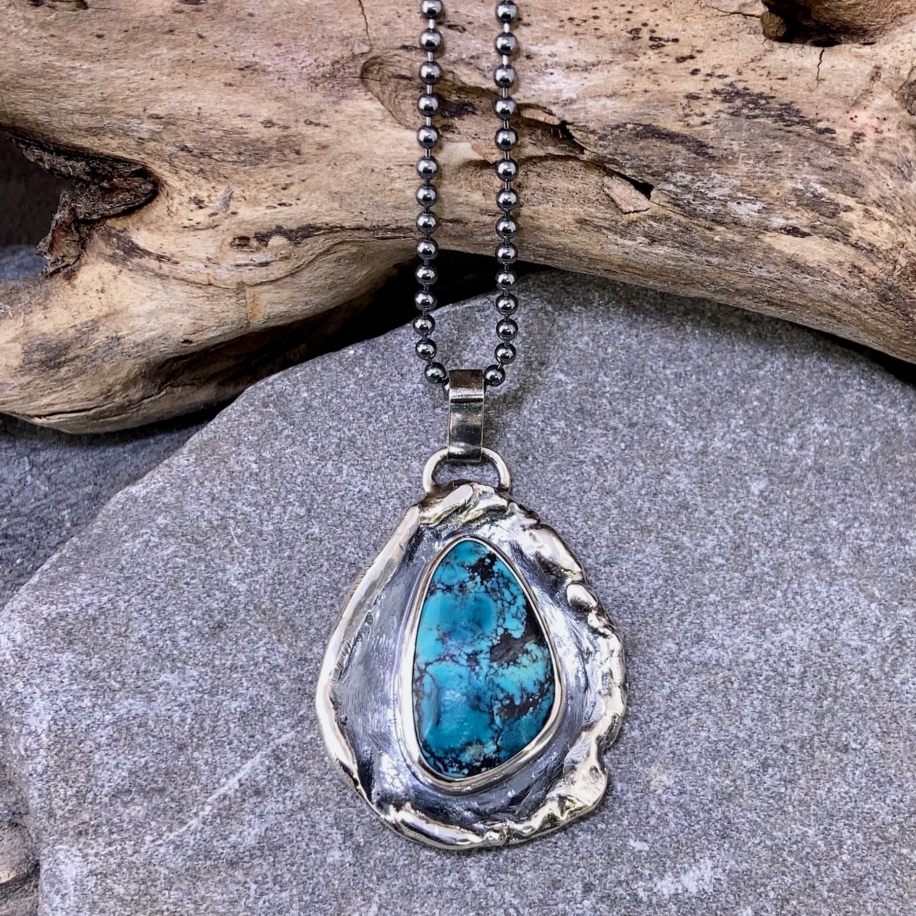 melted boulder with turquoise pendant