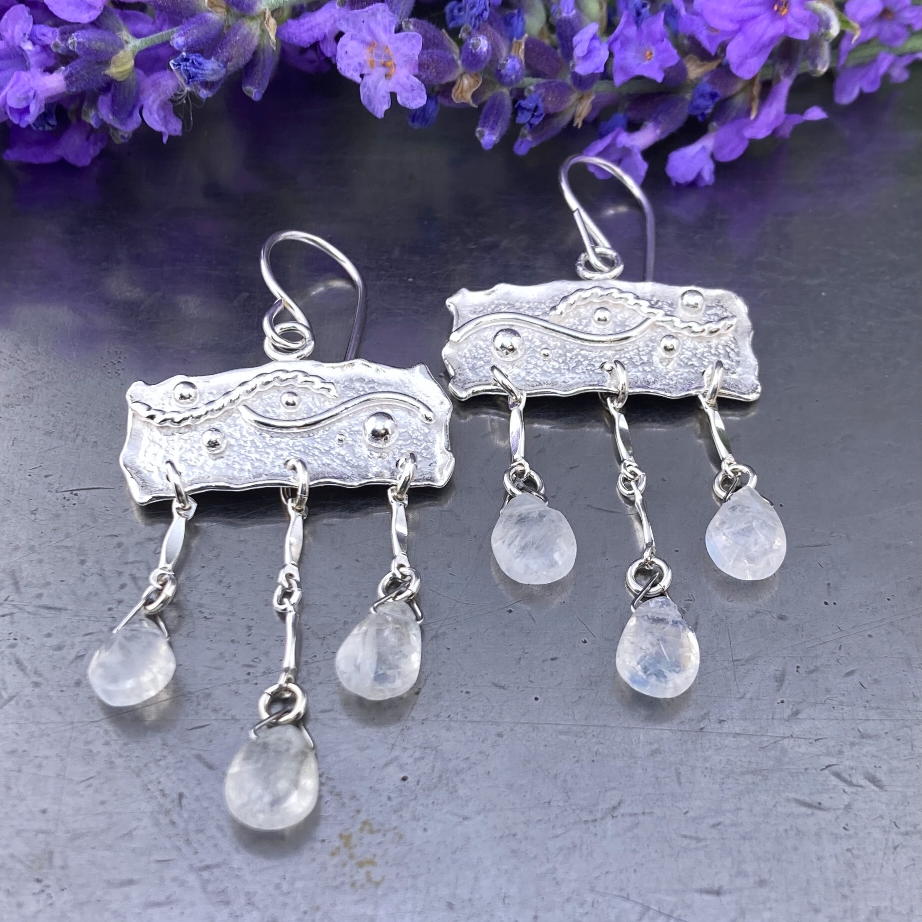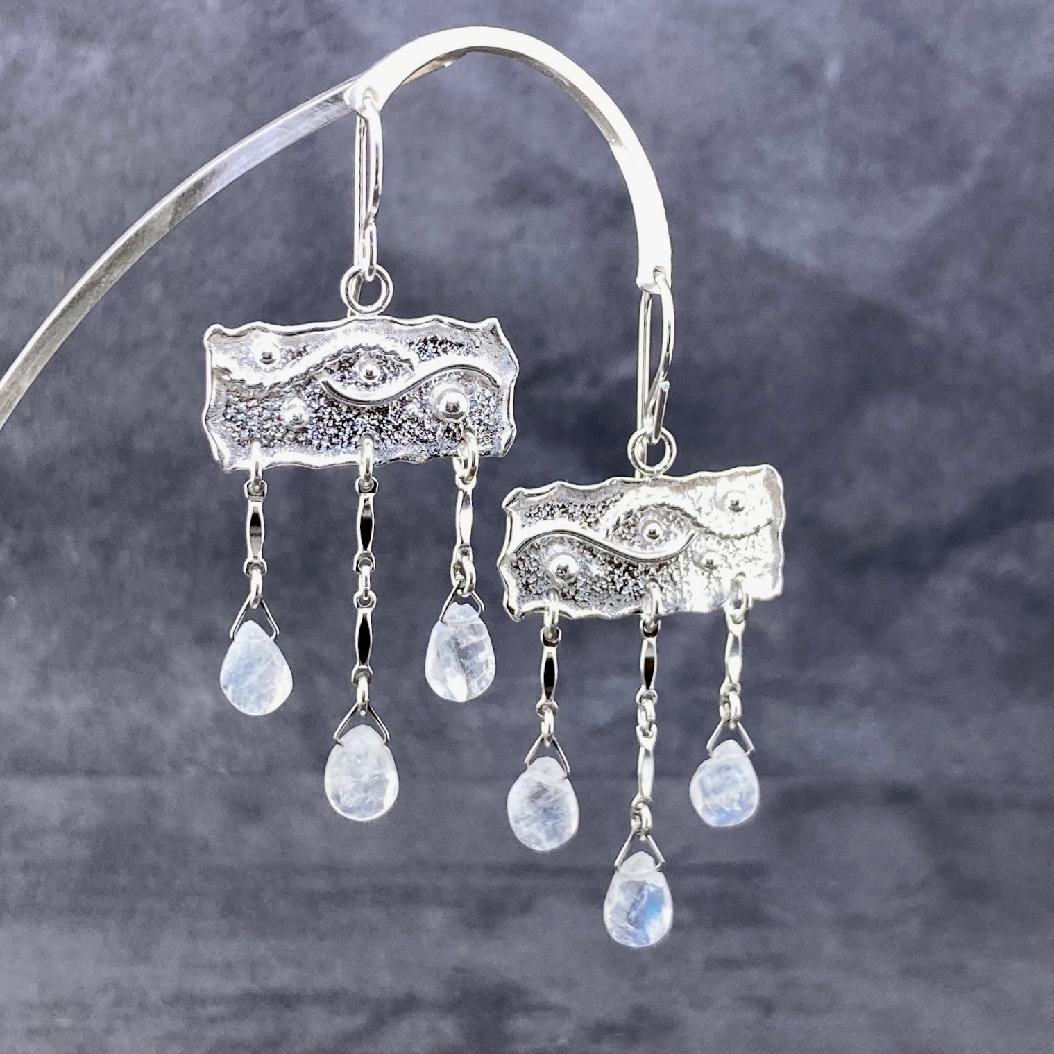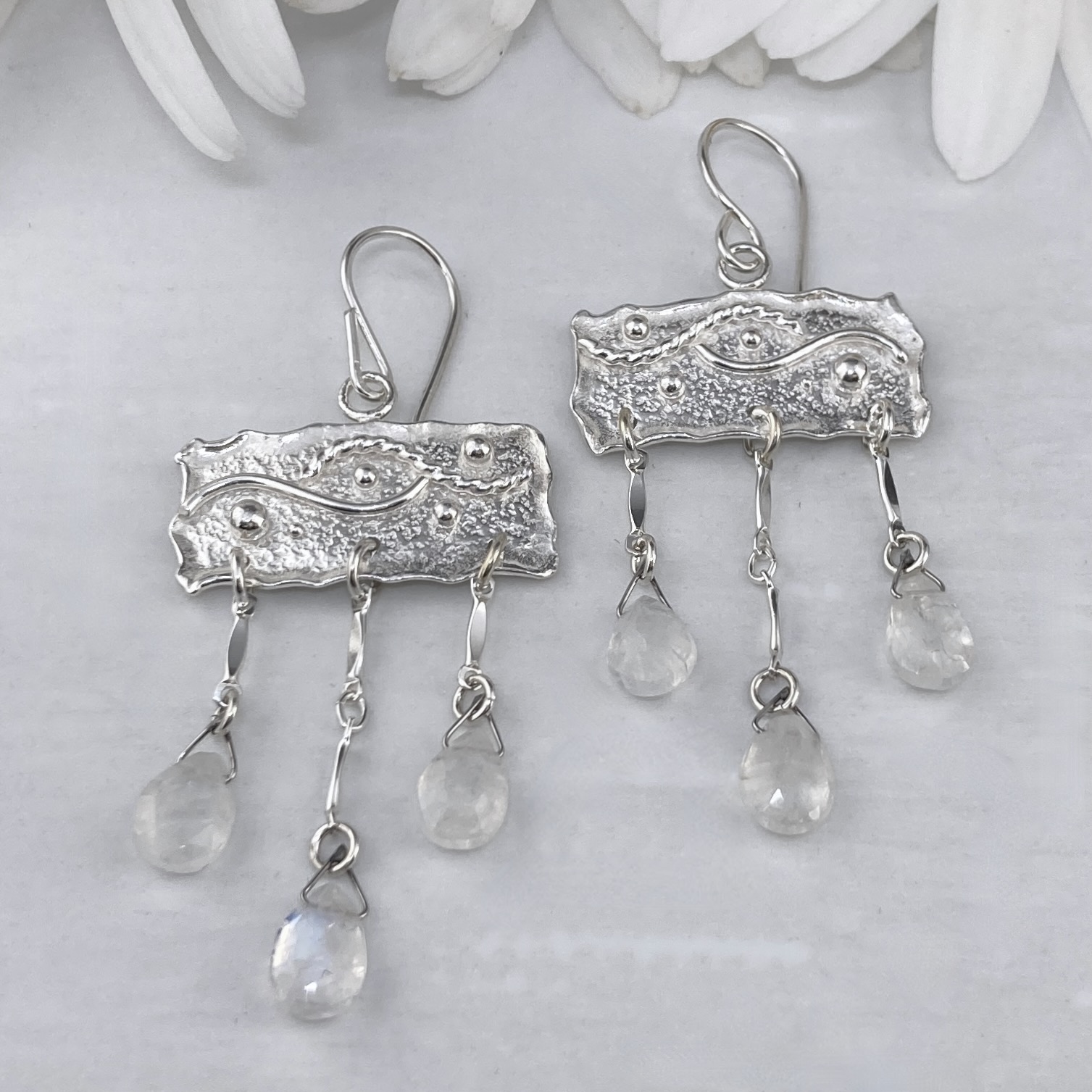 moonstone earrings – chandelier – Argentium silver