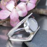 I construct the band from solid Argentium, forming the Double-D shape to ensure equal strength on both sides. After refining and polishing the surface, I bezel set the Moonstone to highlight its inner light. The result is a refined, modern piece that feels both strong and serene.