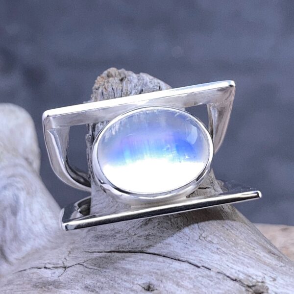 Moonstone Ring – Size 8 – Argentium Silver Double-D Band – 6 Carat - Image 2