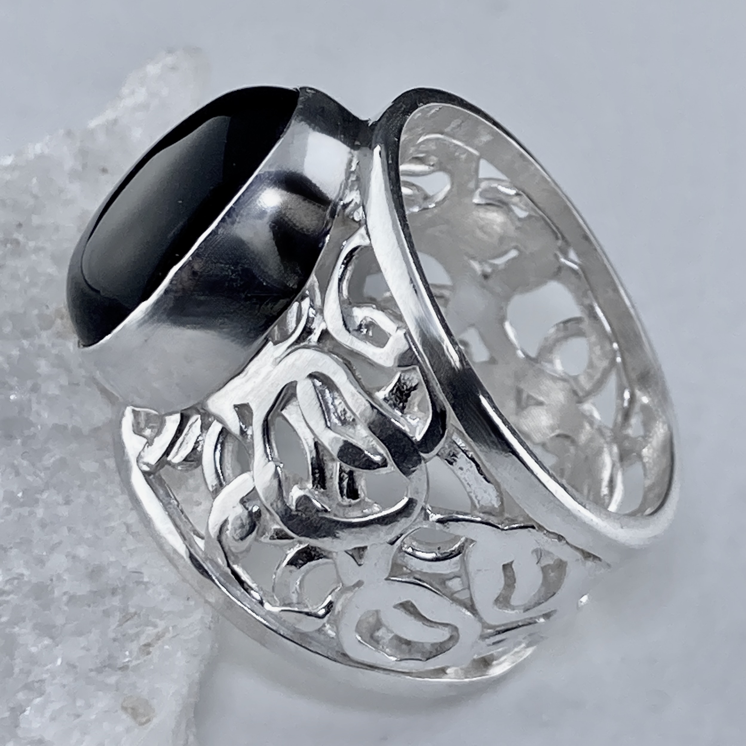 Onyx Ring – Size 9.5 – Argentium Silver Pebbles Band – 9 Carat